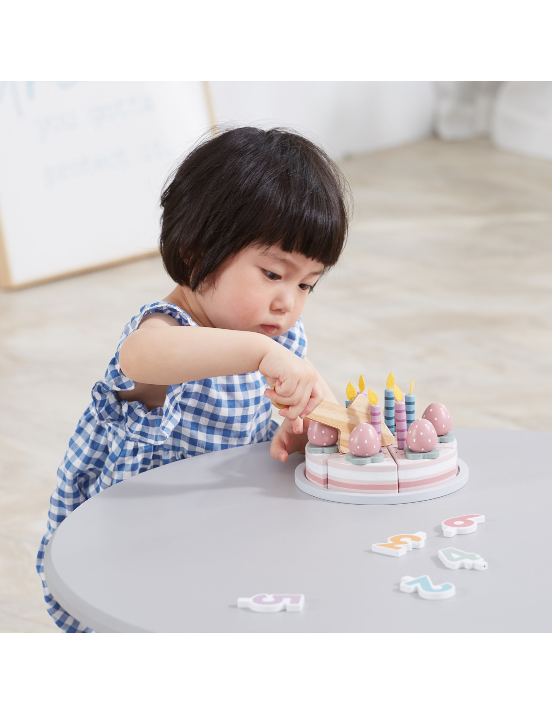 - - zestaw zawiera: kawałki ciasta, świeczki, truskawki, klocki numeryczne, talerz oraz łopatkę.