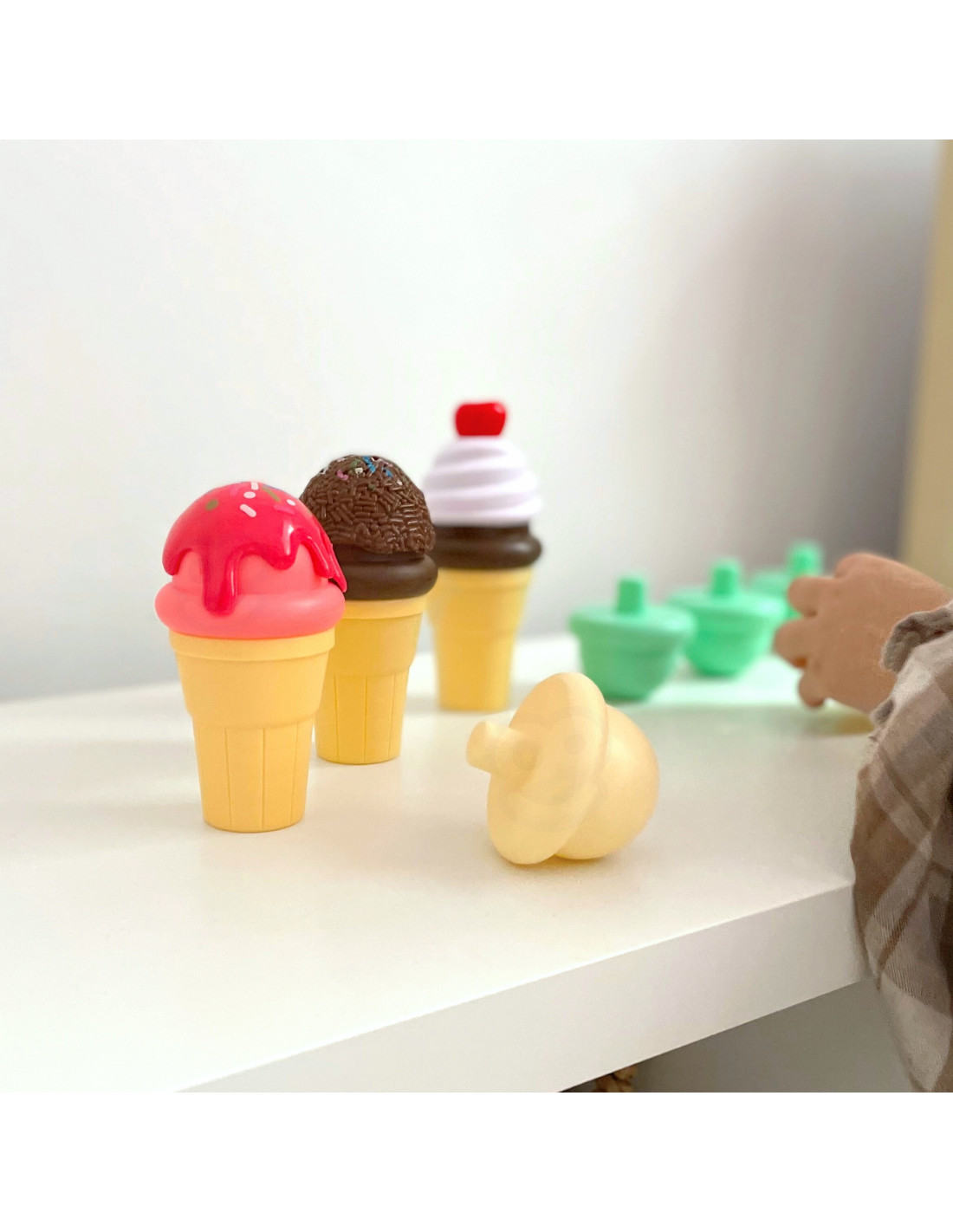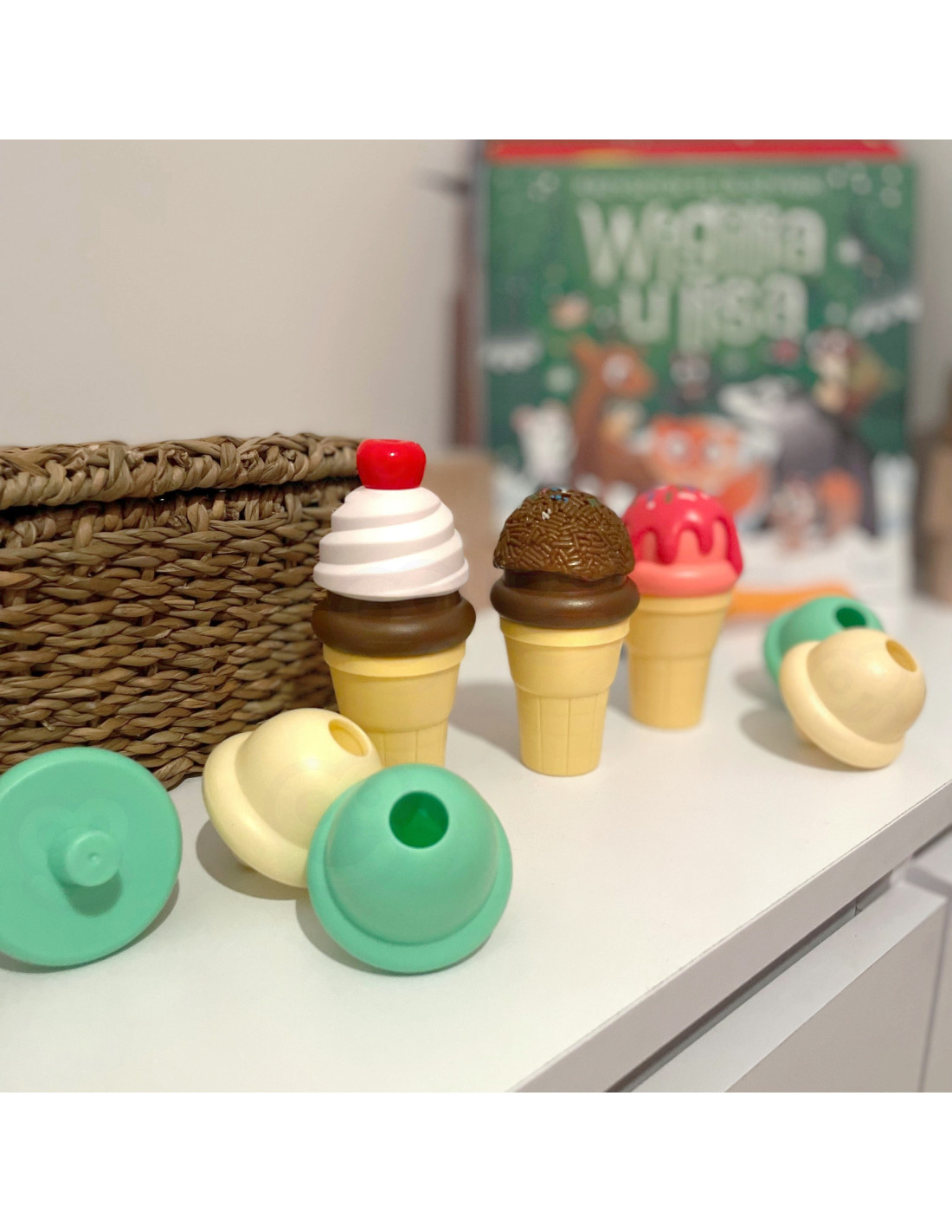 Zestaw do Robienia Lodów od marki WOOPIE pozwoli poczuć się twojemu dziecku jakby był prawdziwym cukiernikiem. W zestawie znajdują się wafelki, kulki, łyżkę do nakładania i extra dodatki. Dziecko bierze wafelek, nakłada na łyżkę dowolną gałkę i układa według swojego uznania. Prosta zabawa, a pozwoli rozwinąć wyobraźnie i kreatywność Twojego dziecka. Dziecko może wcielić się i odegrać role cukiernika i klienta z przyjaciółmi lub rodziną.