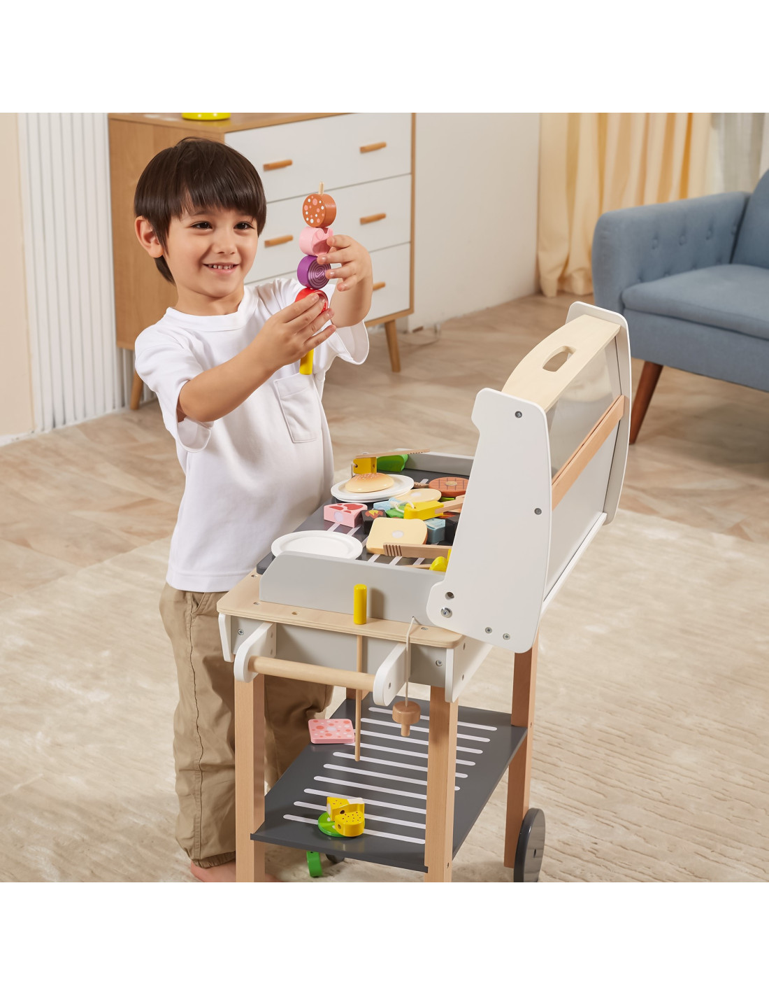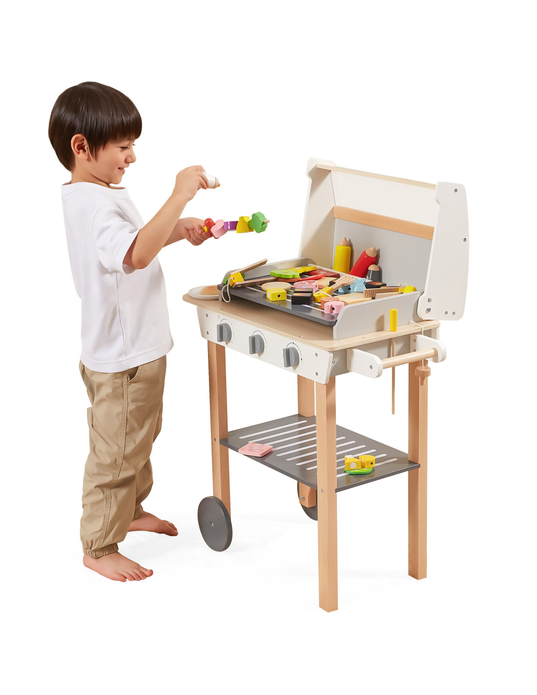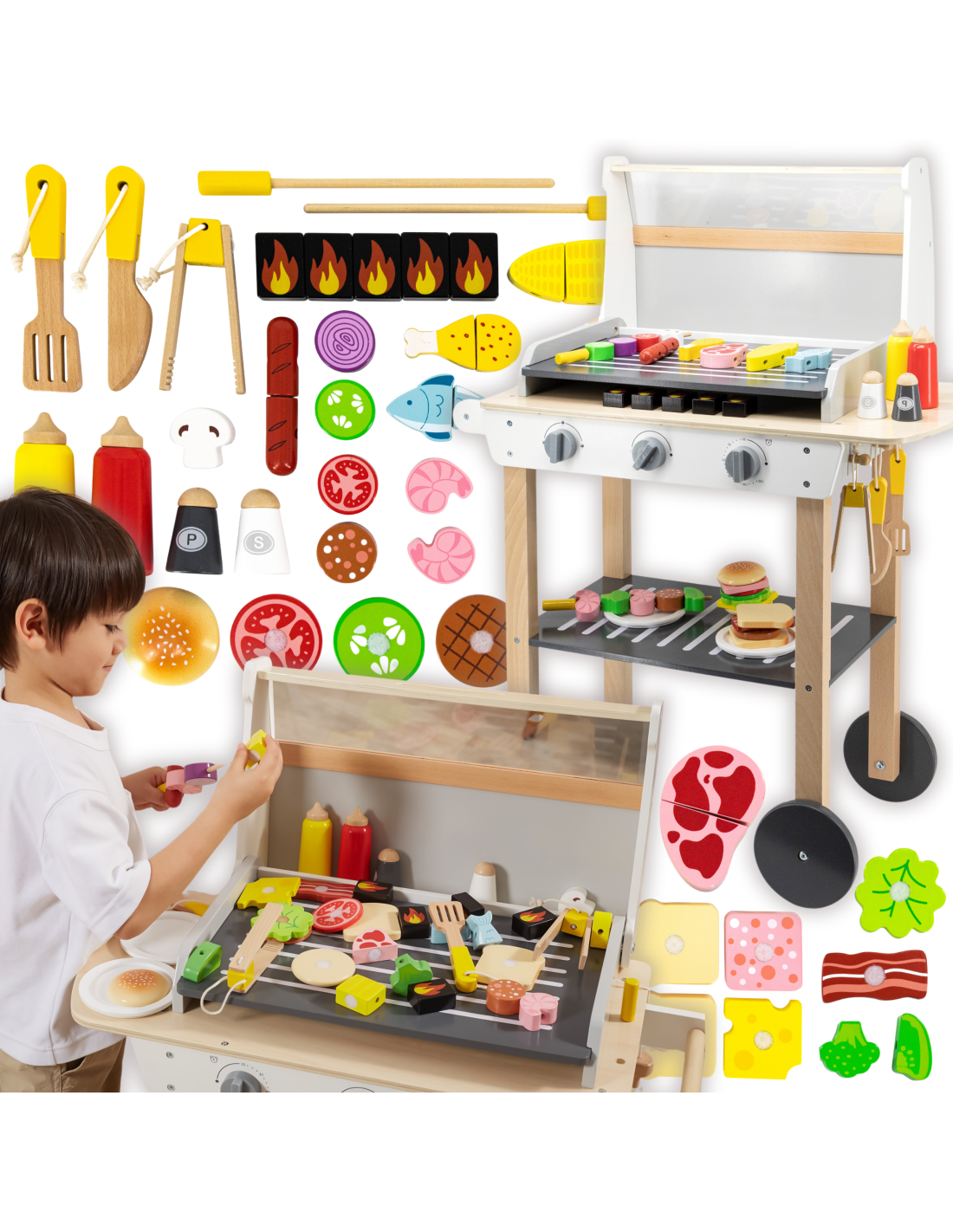 VIGA Duży Drewniany Grill dla Dzieci + 47 Akcesoriów