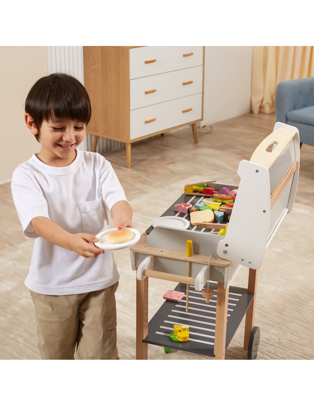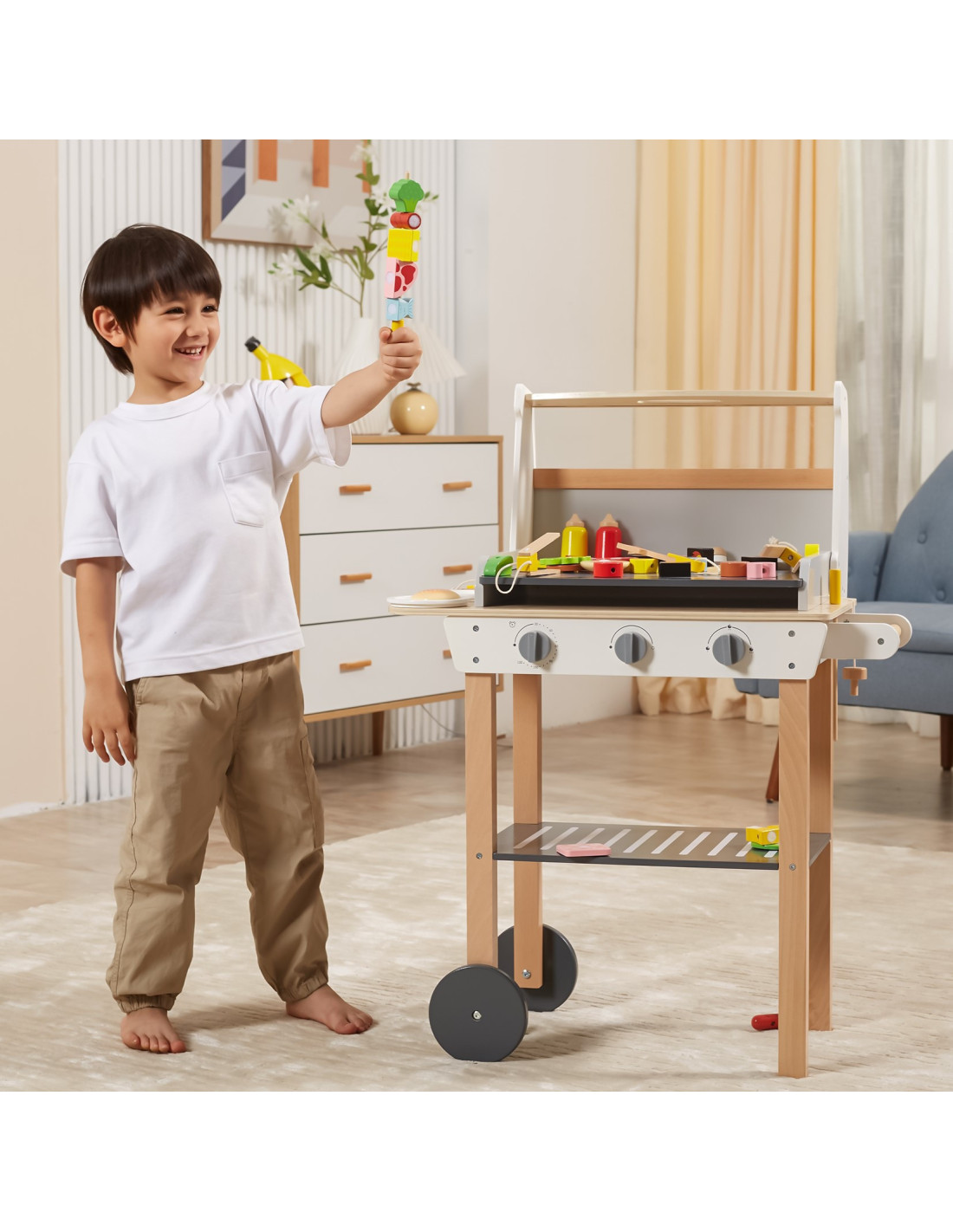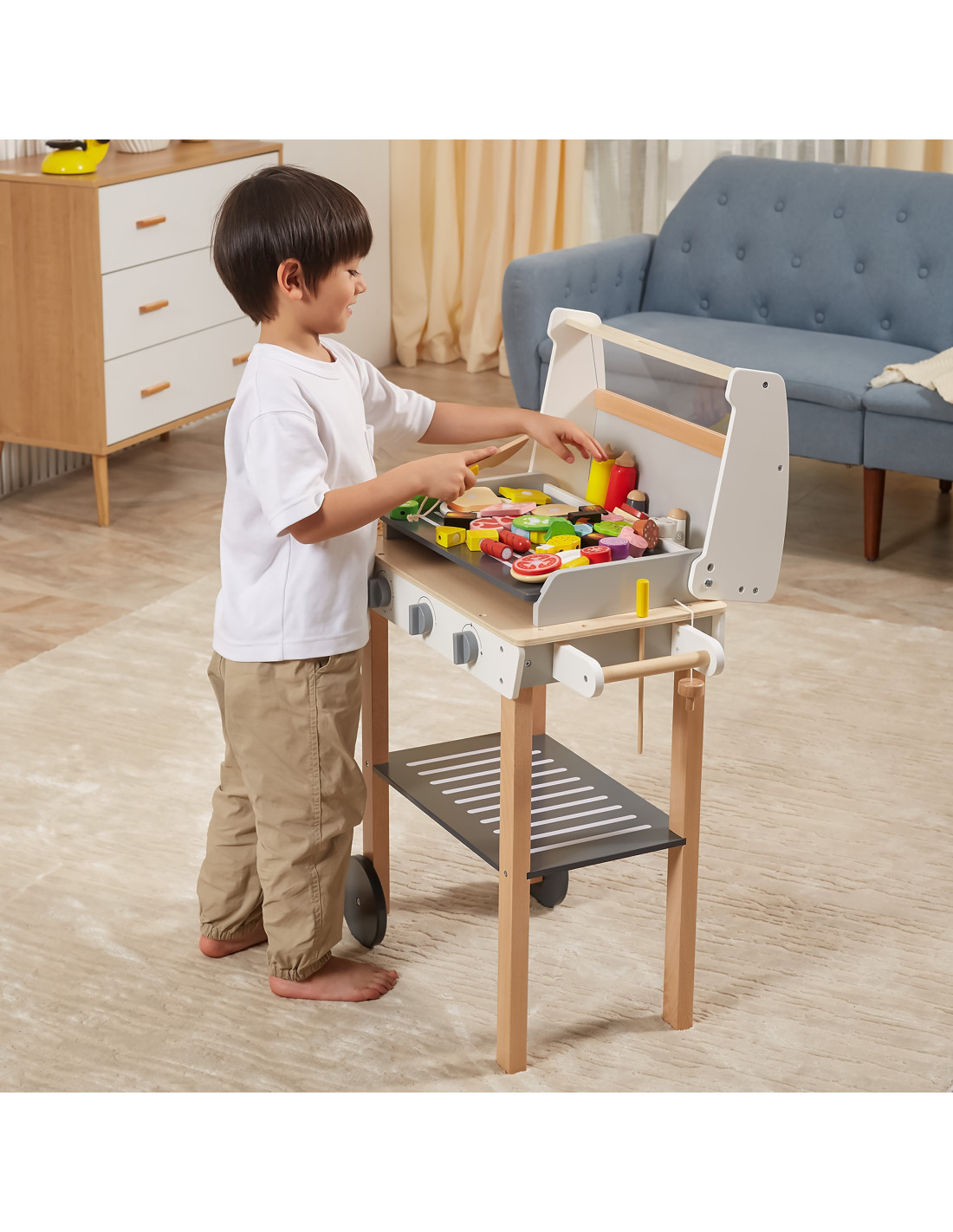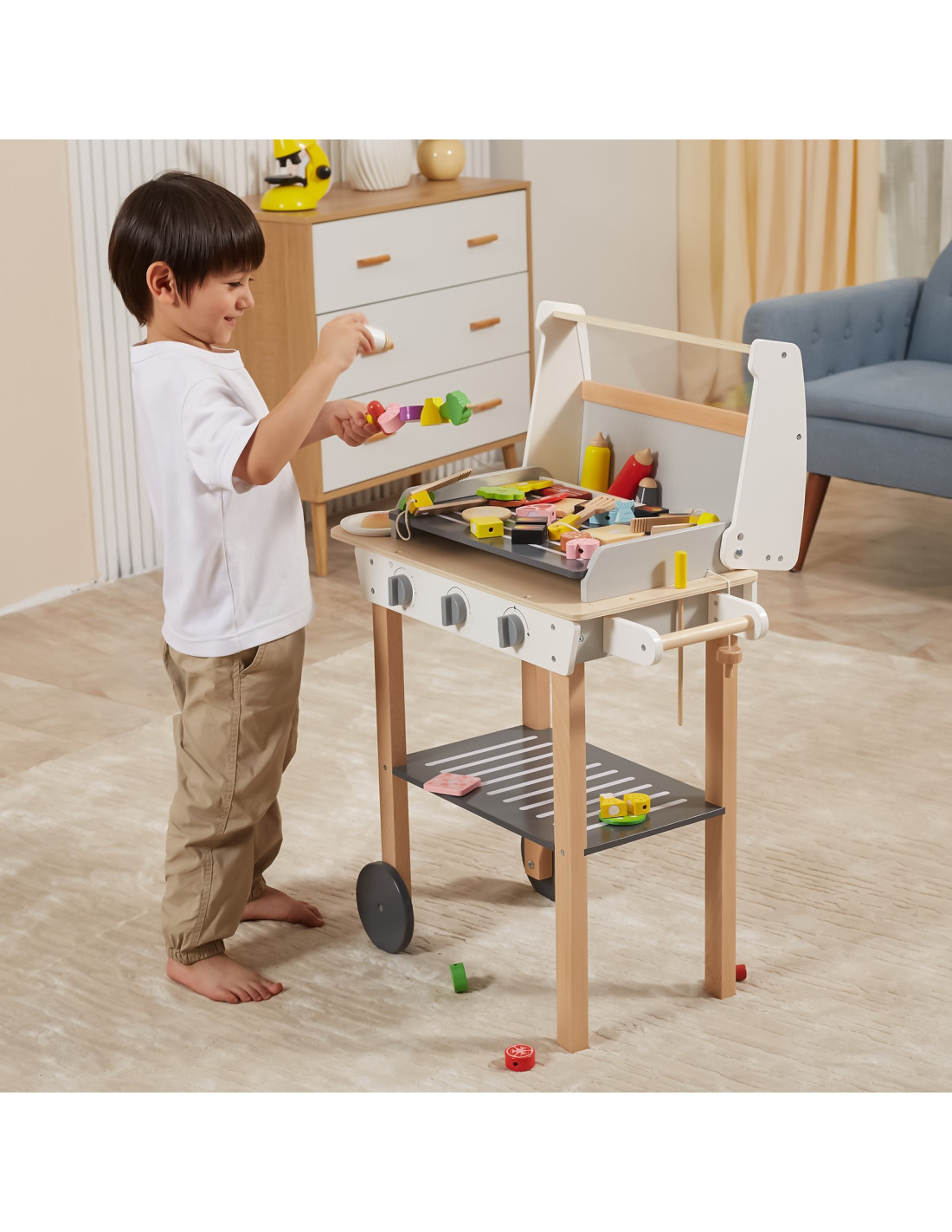 VIGA Duży Drewniany Grill dla Dzieci + 47 Akcesoriów