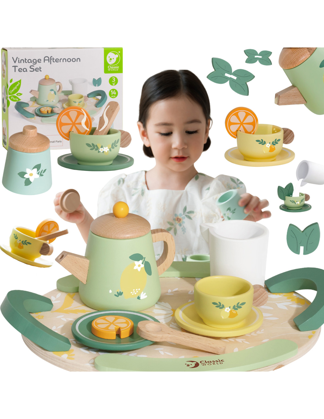 CLASSIC WORLD Drewniany Zestaw do Herbaty 14 el.