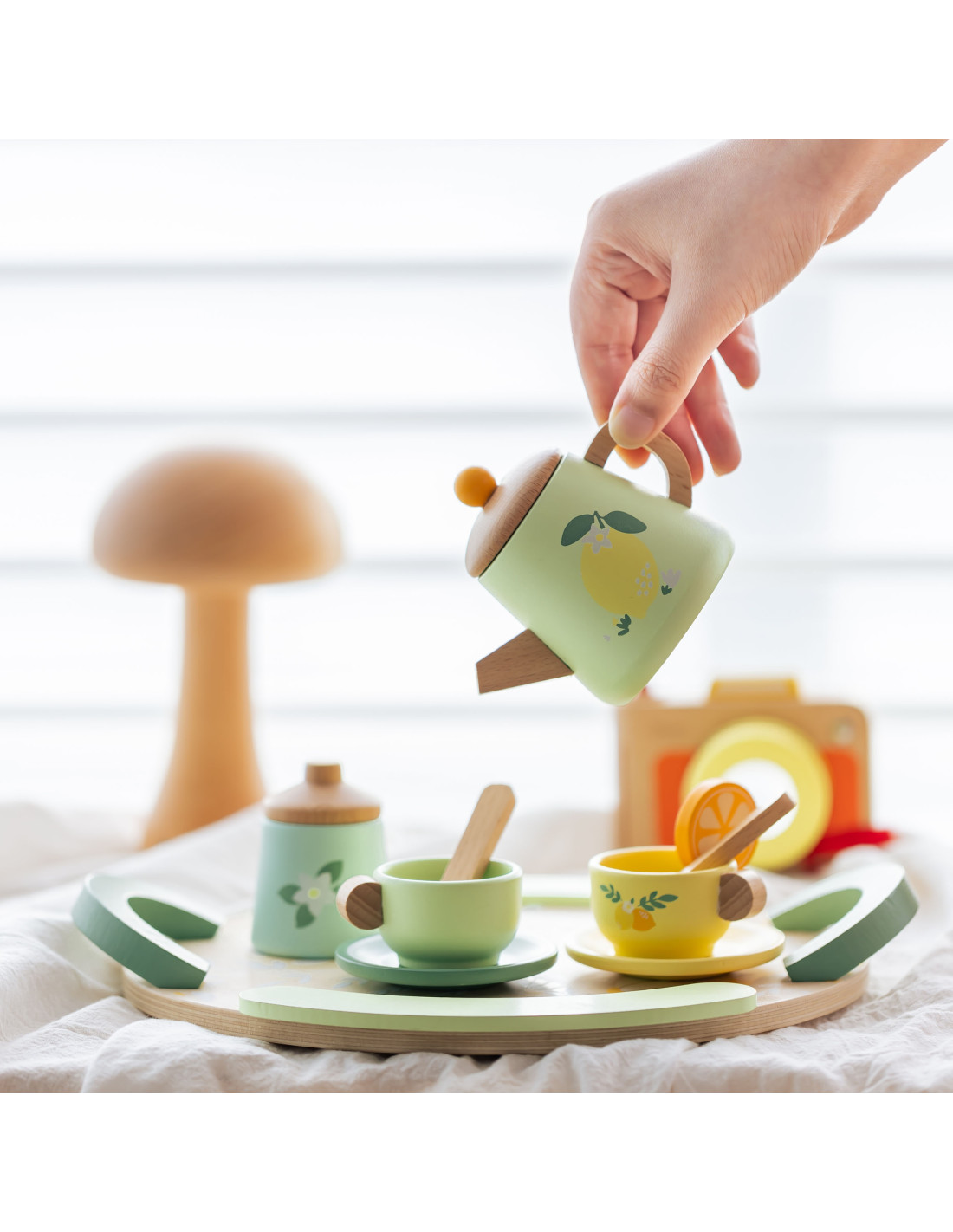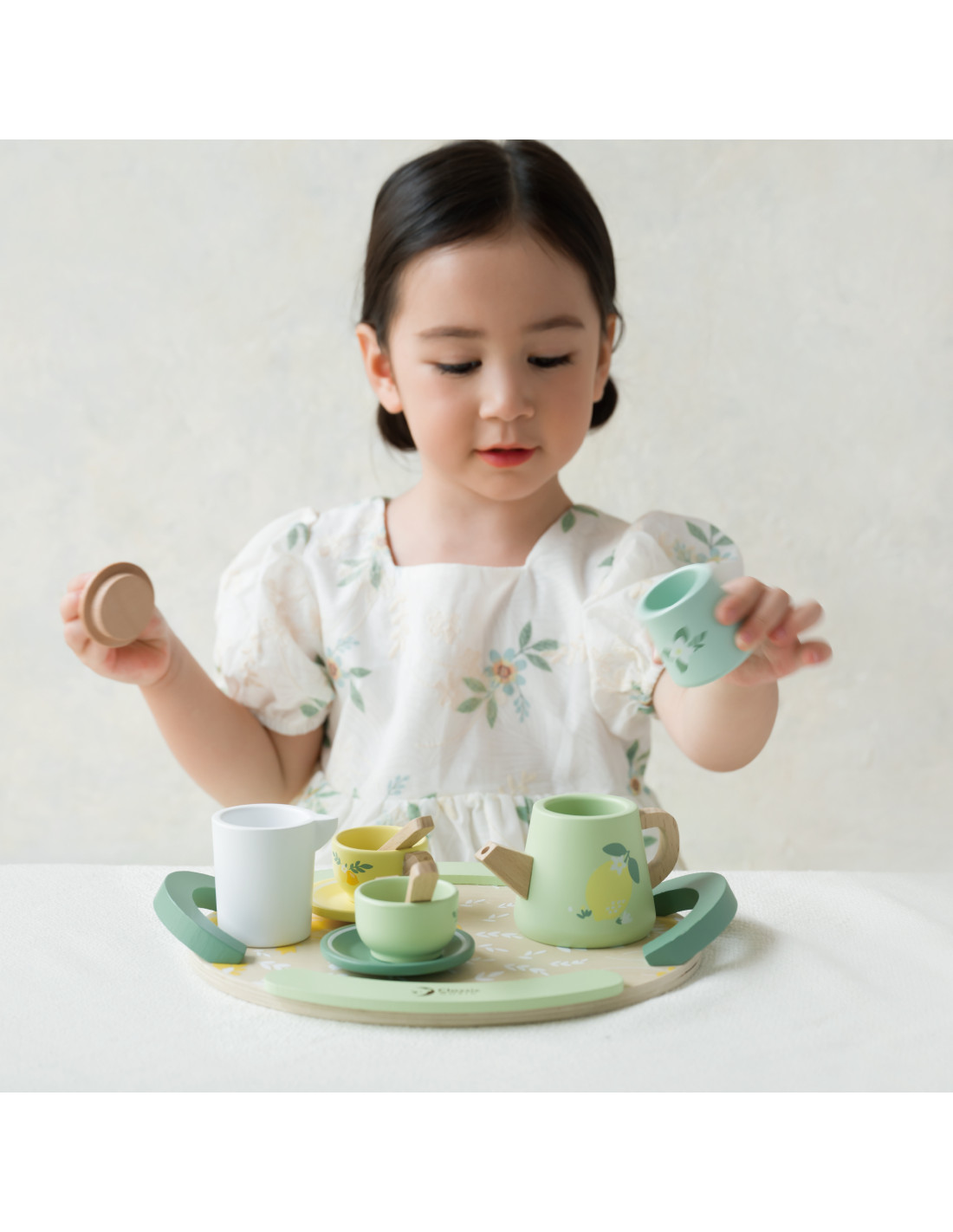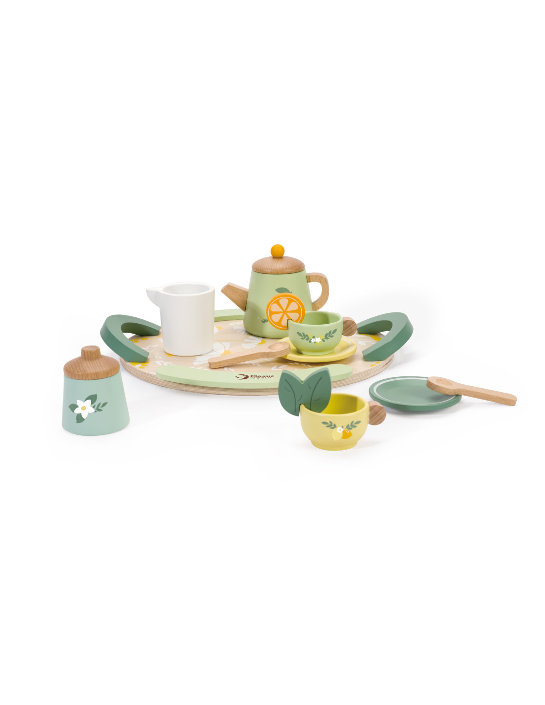 Zestaw do Herbaty od firmy Classic World to świetny pomysł na długie godziny zabawy dla twojego malucha. Twoja pociecha zaskoczy Cię nie raz, serwując pyszną herbatę. Zamień podwieczorek w piękny rytuał dzięki różnym akcesoriom, w tym: dwie filiżanki w różnych kolorach,czajniczek i tacka w kwiatki oraz różne dodatki do herbaty. Piękna pastelowa kolorystyka dodatkowo zachęci dziecko do zabawy. Zestaw został wykonany z solidnego drewna, aby Twój maluch mógł bezpiecznie oddać się serwowaniu przepysznej herbaty.