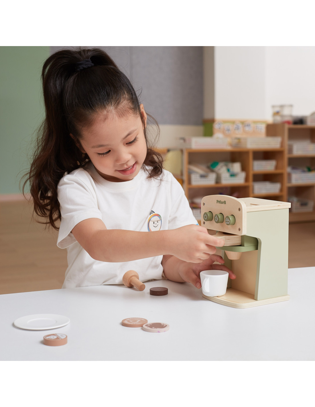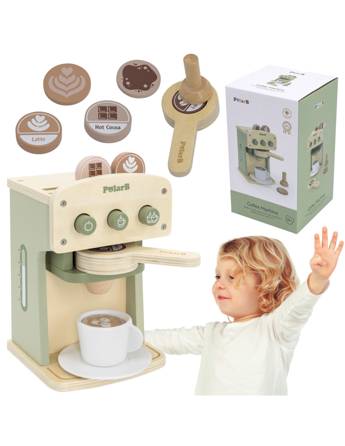 Ekspres Do Kawy drewniany zaprojektowany przez cenionego producenta zabawek dla dzieci od 3 roku życia firmę Viga Toys. Ekspres będzie doskonałym dodatkiem do kuchni lub kącika tematycznego w przedszkolu oraz pozwoli dziecku w domu na zabawę w doskonalenie umiejętności kucharskich. Drewniana zabawka pozwoli na odgrywanie ról wpłynie także pozytywnie na integrację z innymi dziećmi poprzez wspólną zabawę.