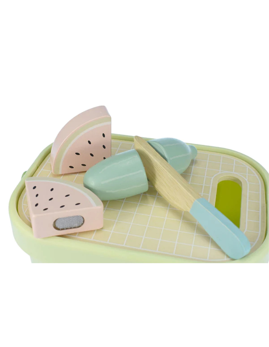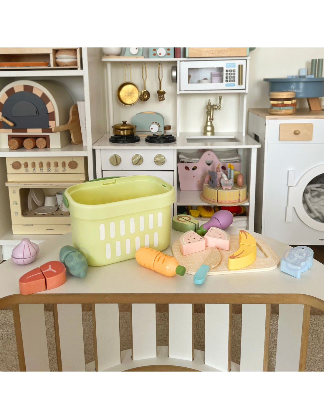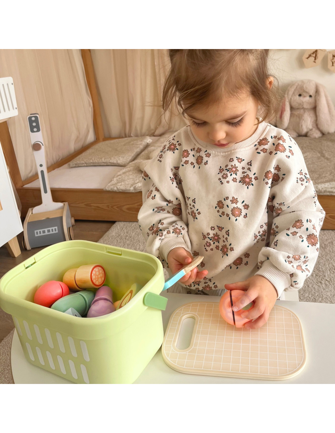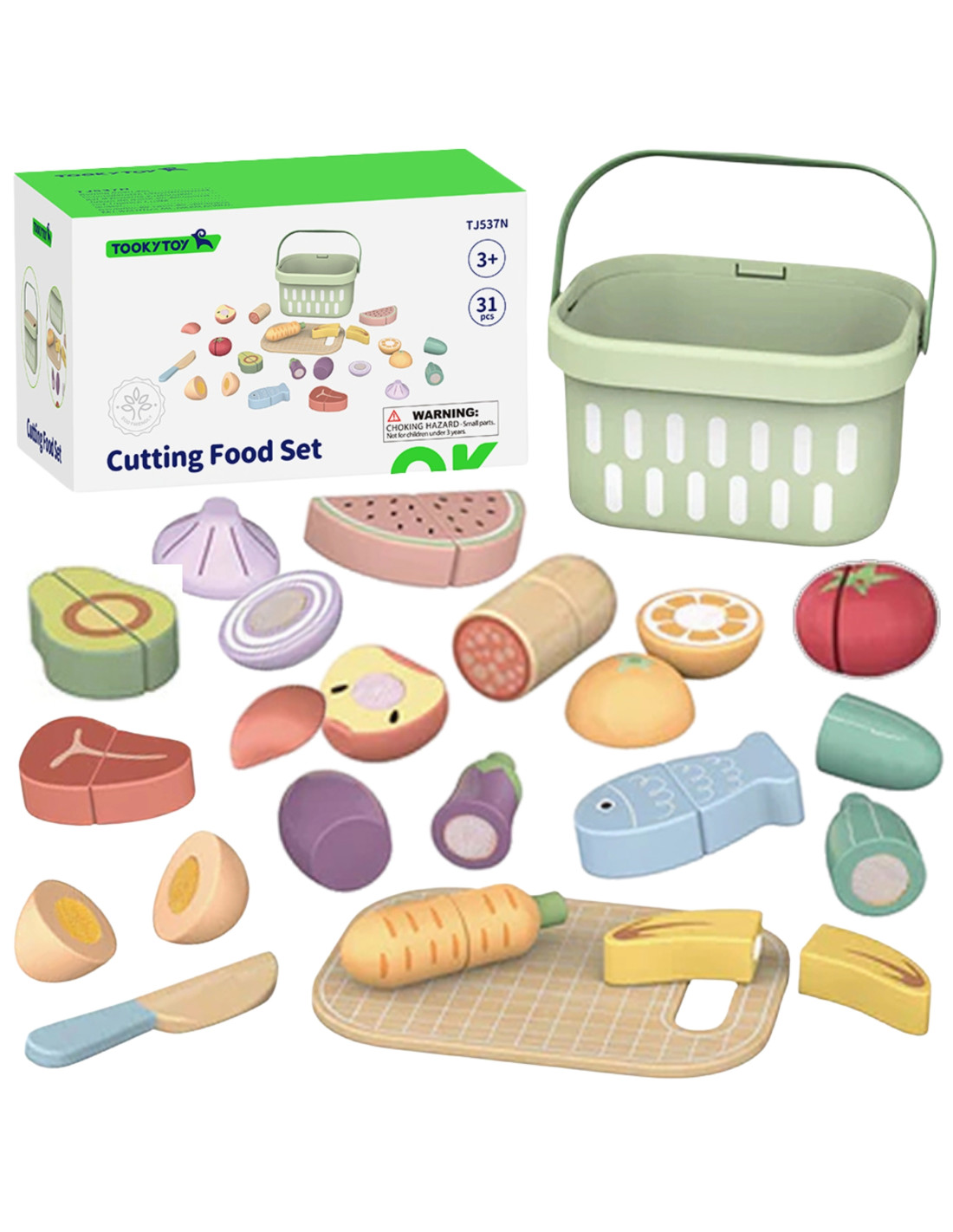 Drewniany Zestaw Żywności do krojenia od Tooky Toy, doskonały do kreatywnej zabawy w kuchni. Zawartość plastikowego pudełka zawiera 31, w tym owoce, warzywa, rybę, jajko, deskę do krojenia oraz nożyk. To kompleksowe wyposażenie pozwala na przygotowanie smacznych posiłków. Drewniany zestaw żywności do krojenia nie tylko rozwija wyobraźnię dziecka, ale także wspiera rozwój umiejętności manualnych. Używając tego zestawu, maluchy mogą wcielać się w rolę małych kucharzy, co rozwija ich kreatywność i umiejętności społeczne poprzez zabawę w udawanie różnych sytuacji kuchennych. Zabawa w krojenie i przygotowywanie posiłków pomoże dzieciom w nauce o zdrowym odżywianiu i zrozumieniu różnorodności żywności.