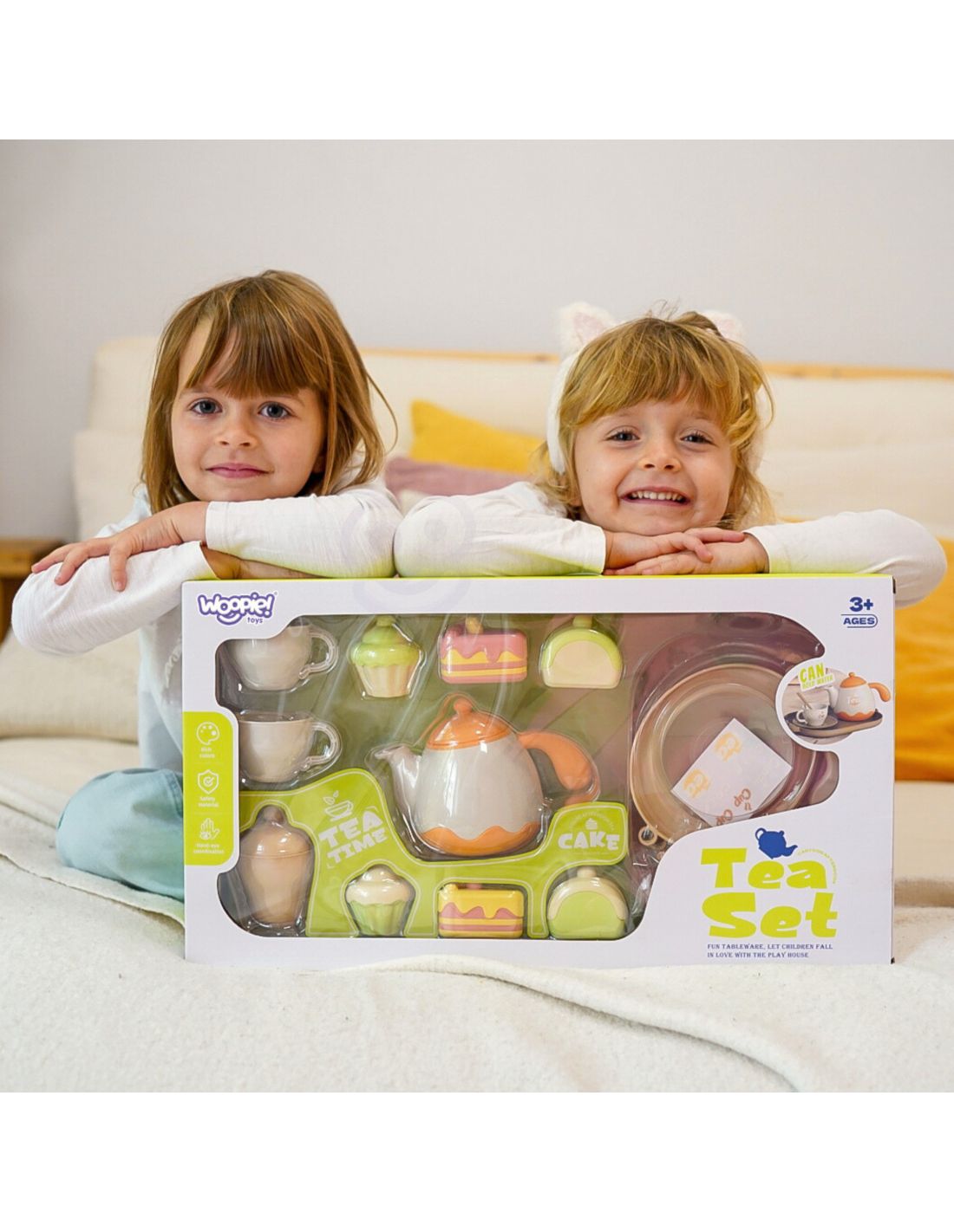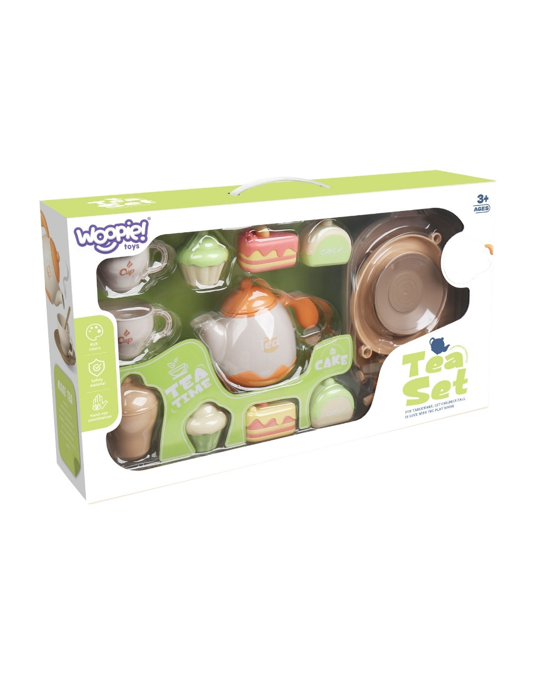 Drewniany zestaw do herbaty i deserów od marki Woopie , to świetna propozycja dla dzieci które chcą wcielać się w różne role w życiu codziennym.Urocze pastelowe kolory zachwycą Twoje dziecko a akcesoria t.j. dzbanek na herbatkę, filiżanki oraz desery pobudzą wyobraźnię i kreatywność Twojego malucha.