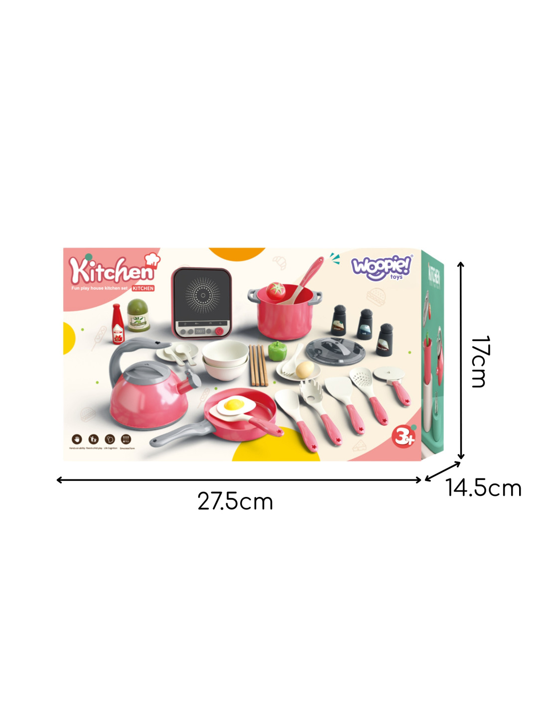 Ten obszerny zestaw do zabawy w kuchnię od marki Woopie to idealny prezent dla każdego małego kucharza! Zabawka pozwala dzieciom na naśladowanie dorosłych i odgrywanie ról, rozwijając ich kreatywność, wyobraźnię oraz zdolności manualne. Zestaw zawiera wszystko, czego potrzeba do przygotowania wymarzonego posiłku.W skład zestawu wchodzi aż 30 elementów, w tym garnki, patelnia z jajkiem sadzonym, czajnik, a nawet indukcyjna płyta grzewcza. Dodatkowe akcesoria, takie jak sztućce, warzywa, i przyprawy sprawiają, że zabawa staje się niezwykle realistyczna i wciągająca. To doskonały sposób na naukę przez zabawę, rozwijanie zdolności społecznych i spędzanie czasu z rodzicami.
