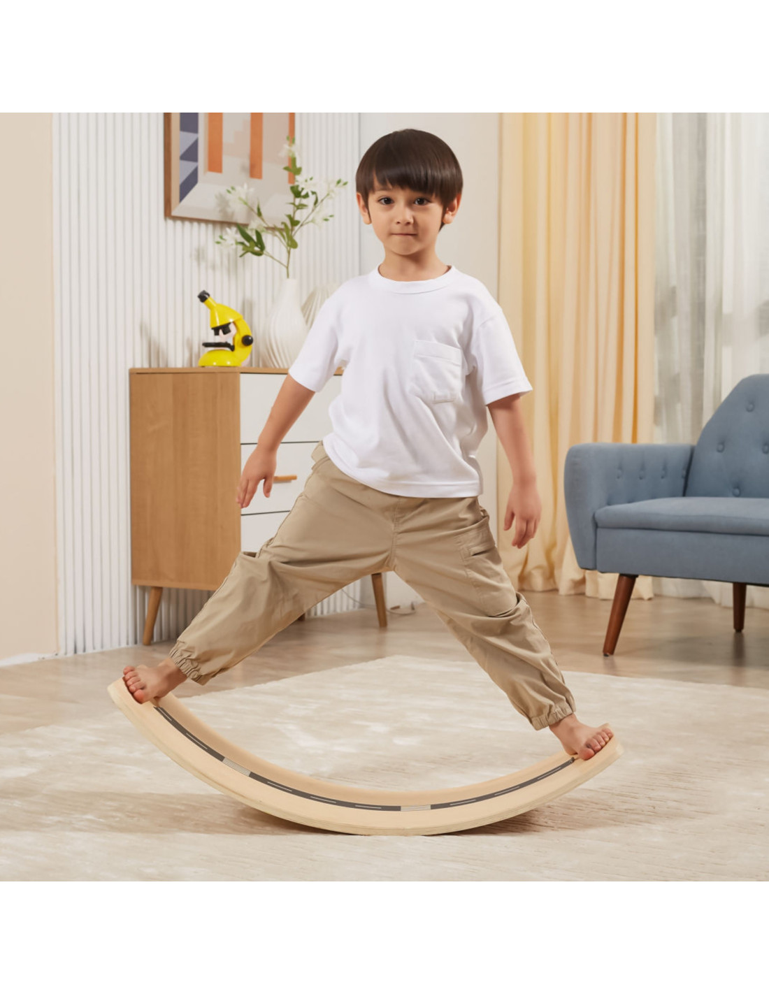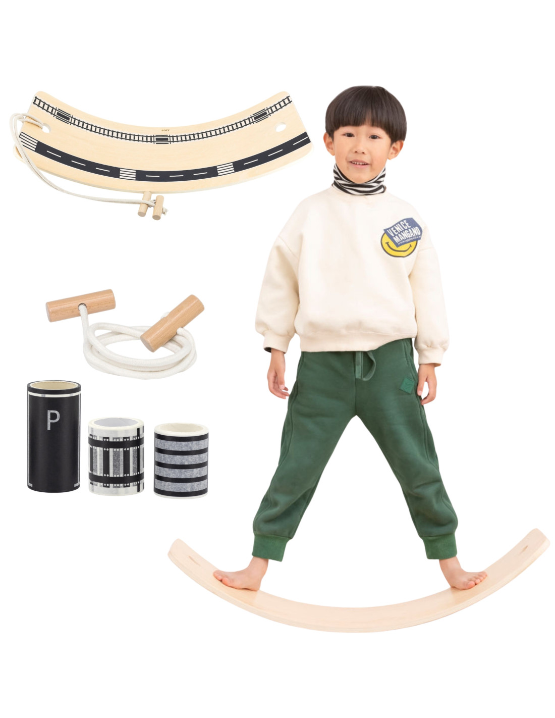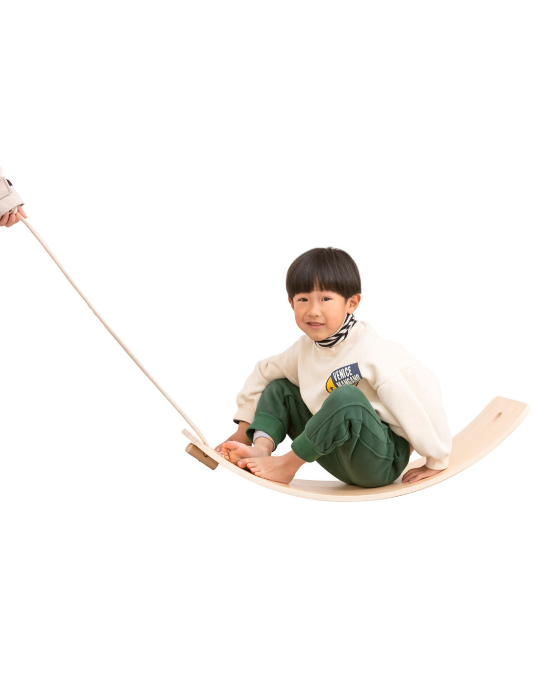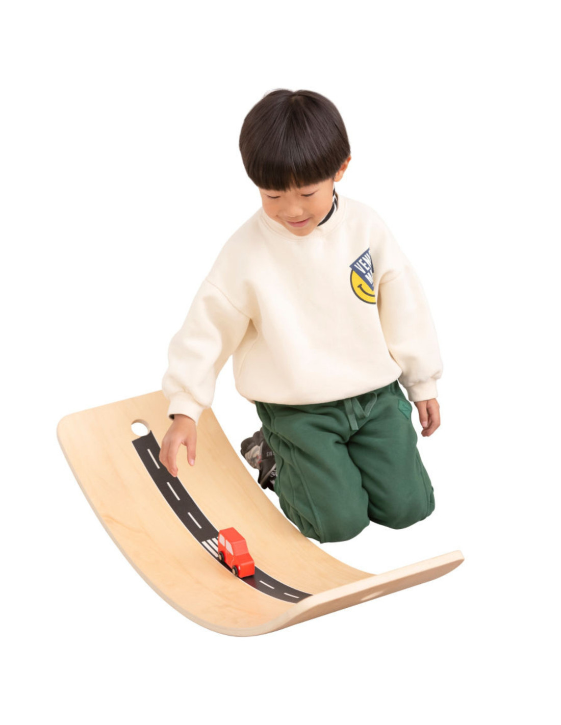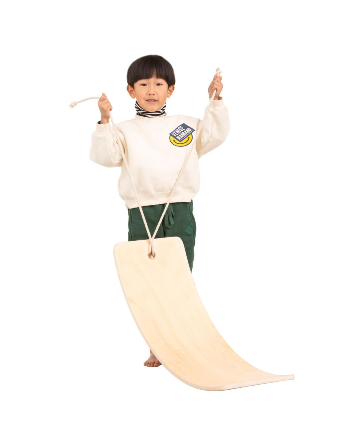✔️ Zadaniem dziecka jest balansowanie na desce, by jednocześnie zachować równowagę.
