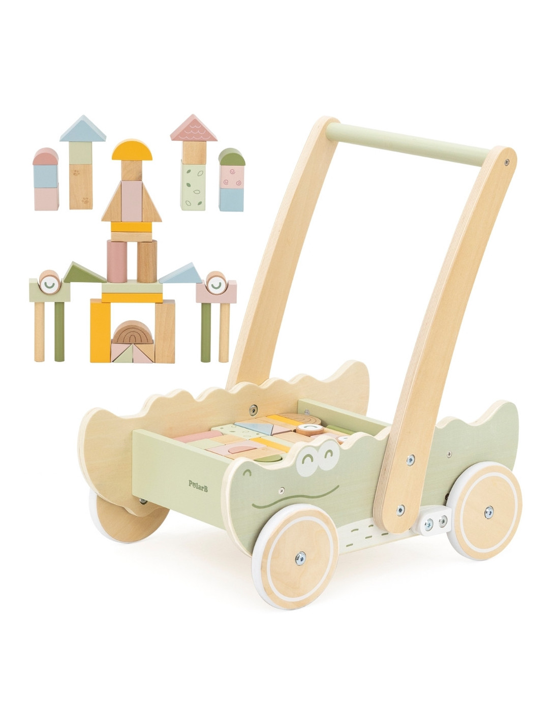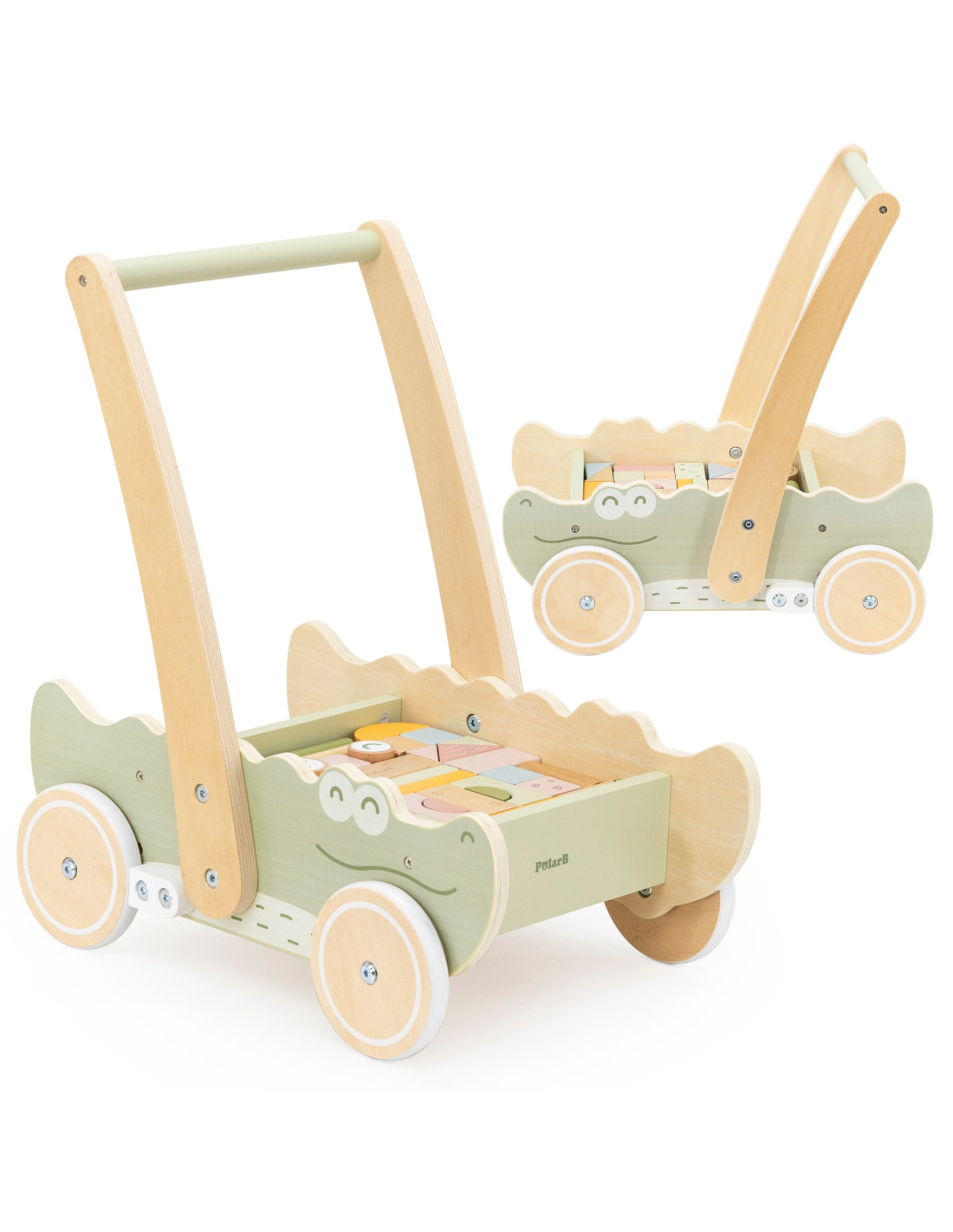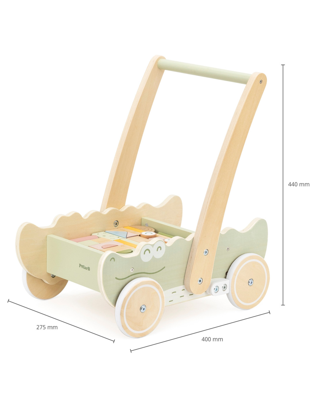 Odkryj radość pierwszych kroków z naszym uroczym chodzikiem-pchaczem w kształcie krokodyla! Ta wielofunkcyjna zabawka to idealny towarzysz rozwoju Twojego malucha. Stabilna konstrukcja i wygodny uchwyt zapewniają bezpieczne wsparcie podczas nauki chodzenia, a zestaw kolorowych klocków znajdujących się wewnątrz chodzika zachęca do kreatywnej zabawy i rozwijania motoryki.