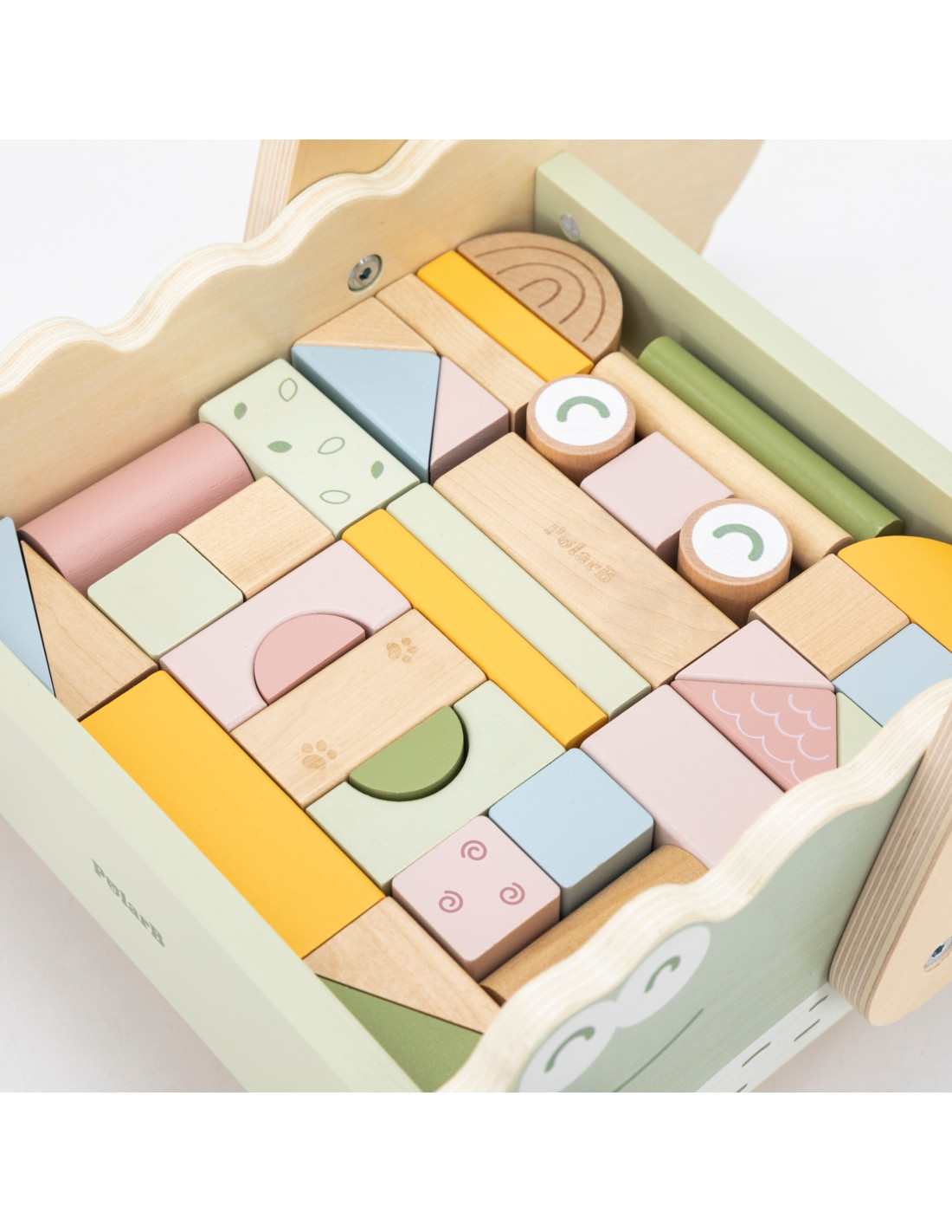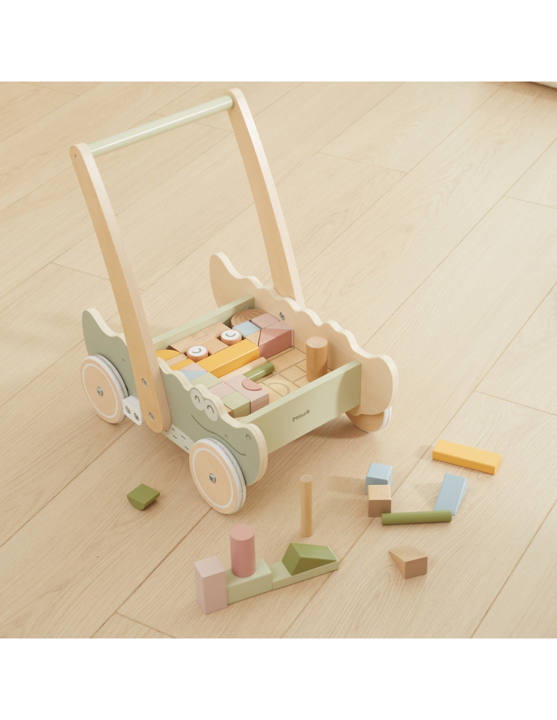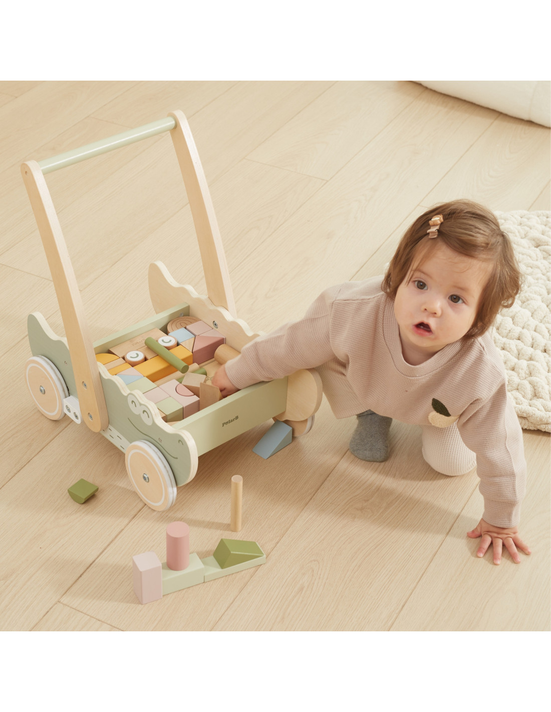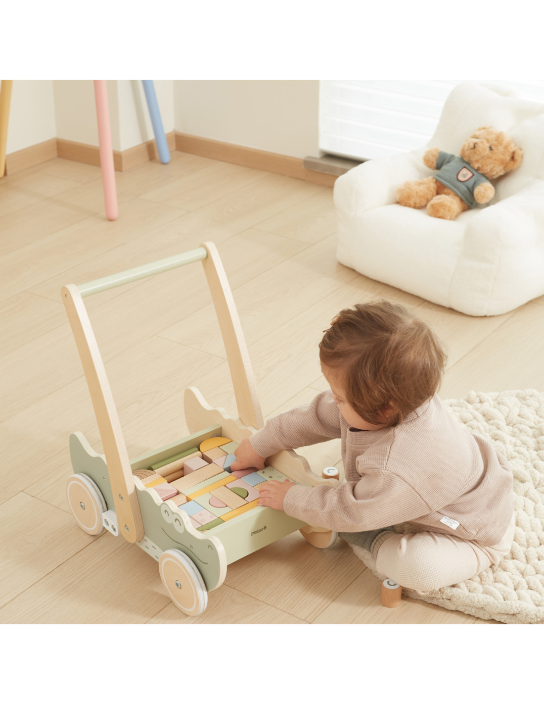 Odkryj radość pierwszych kroków z naszym uroczym chodzikiem-pchaczem w kształcie krokodyla! Ta wielofunkcyjna zabawka to idealny towarzysz rozwoju Twojego malucha. Stabilna konstrukcja i wygodny uchwyt zapewniają bezpieczne wsparcie podczas nauki chodzenia, a zestaw kolorowych klocków znajdujących się wewnątrz chodzika zachęca do kreatywnej zabawy i rozwijania motoryki.