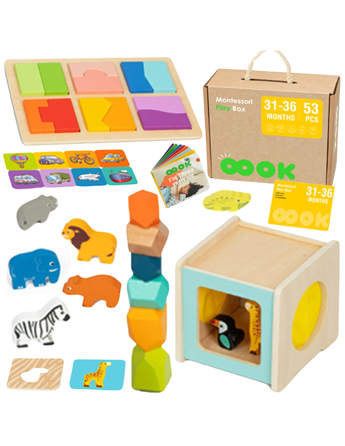 TOOKY TOY oferuje Edukacyjny Box zabawek Montessori. Ta drewniana zabawka przeznaczona jest dla dzieci od 31-36 miesiąca życia. Walizka zawiera 5 różnych rozwijających gier i zabawek, które na pewno zainteresują twojego malucha. Taki box, to świetny sposób na rozwijanie umiejętności poznawczych, emocjonalnych oraz motorycznych u maluchów! Do zestawu dołączona jest instrukcja obsługi, która zawiera informacje na temat zawartości boxa, instrukcji obsługi zabawek oraz przydatne porady.