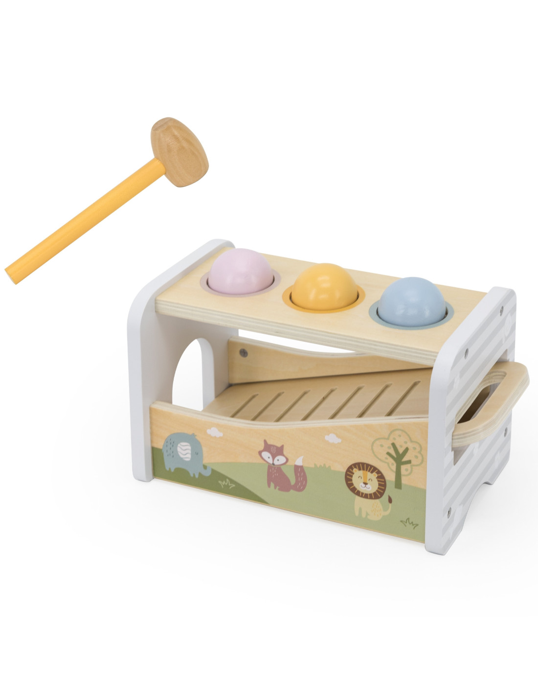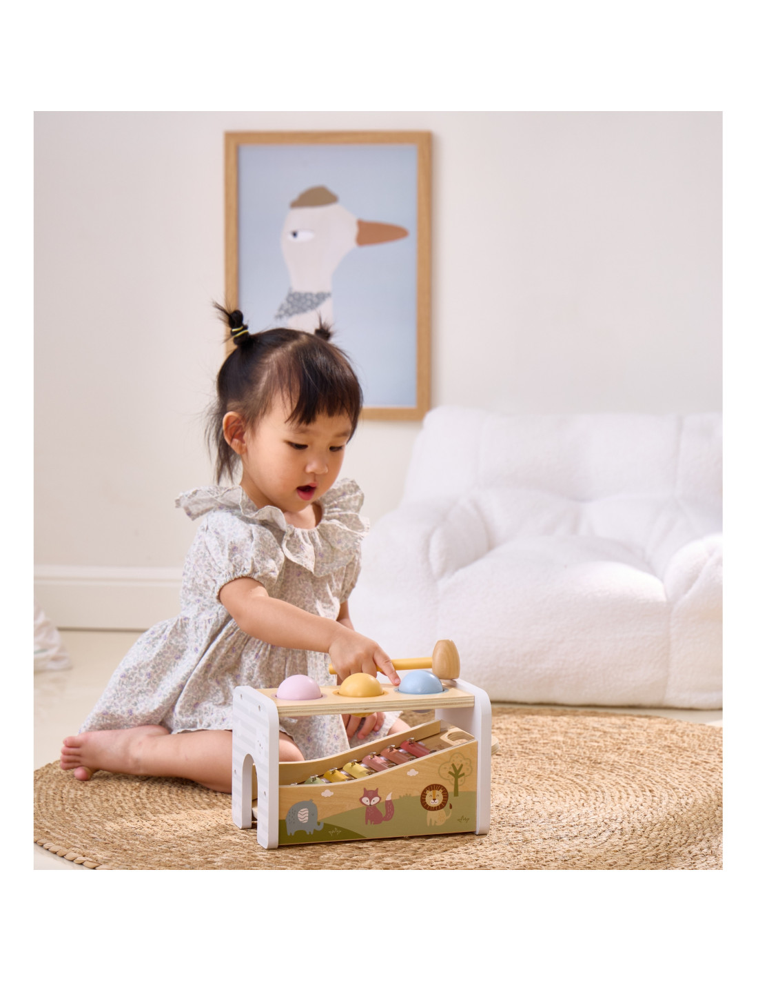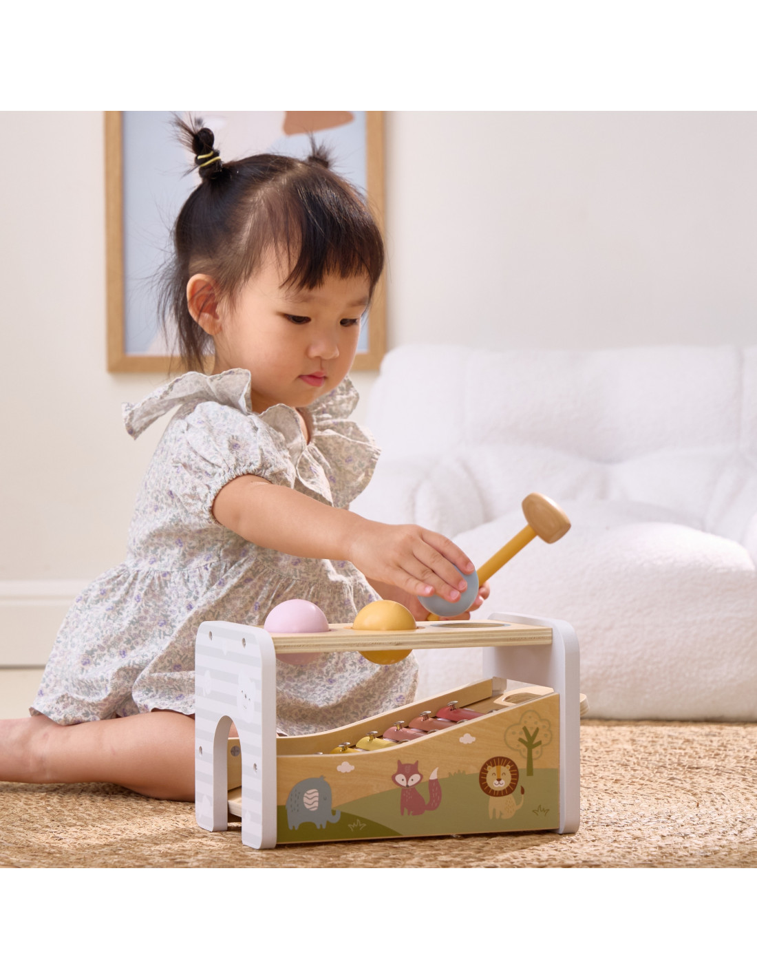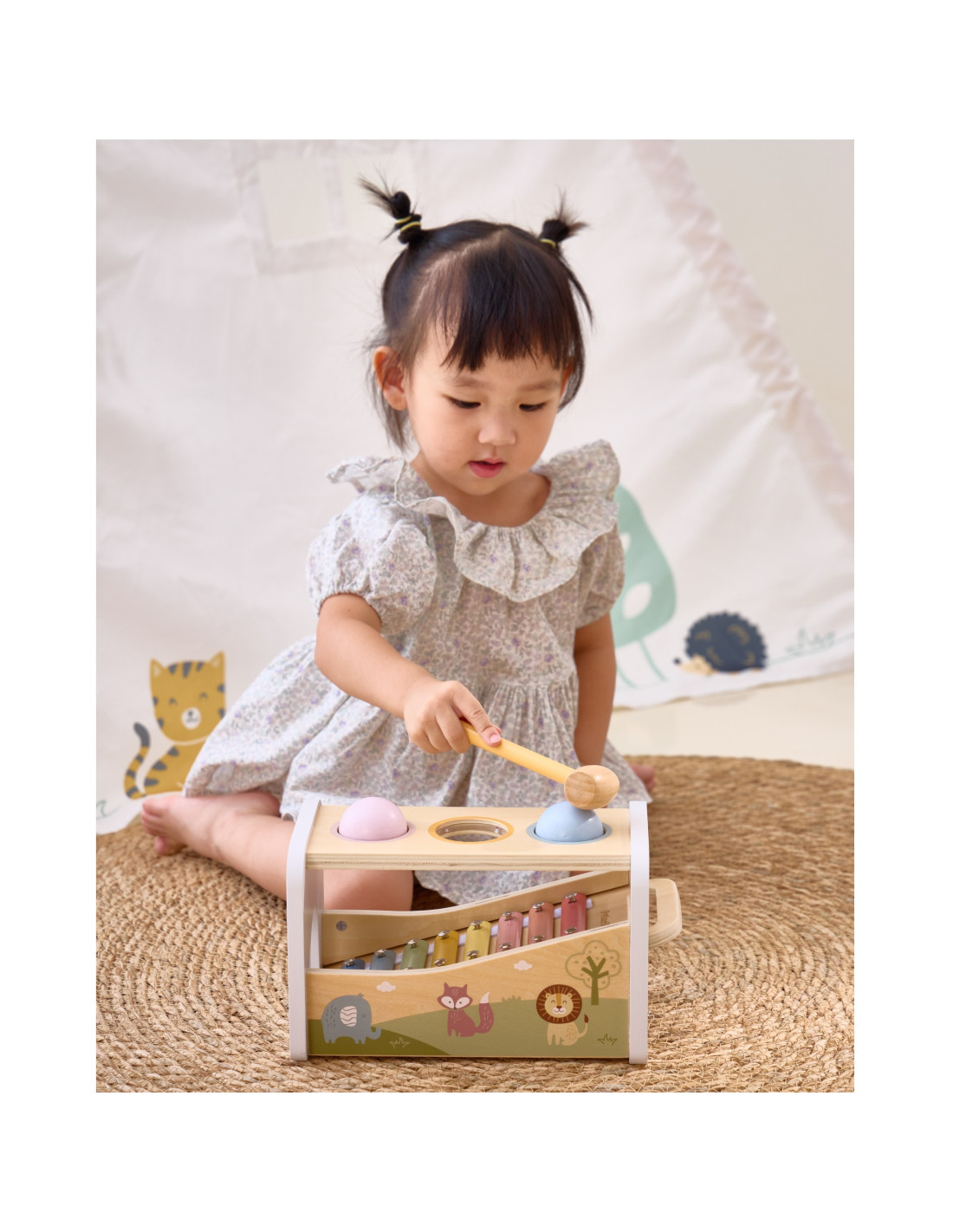 - - Dwie funkcje w jednej zabawce – Uderzaj młoteczkiem w kulki i obserwuj, jak spadają na cymbałki, wydając delikatne dźwięki. Możesz też użyć pałeczki do tworzenia własnych melodii na kolorowych klawiszach!