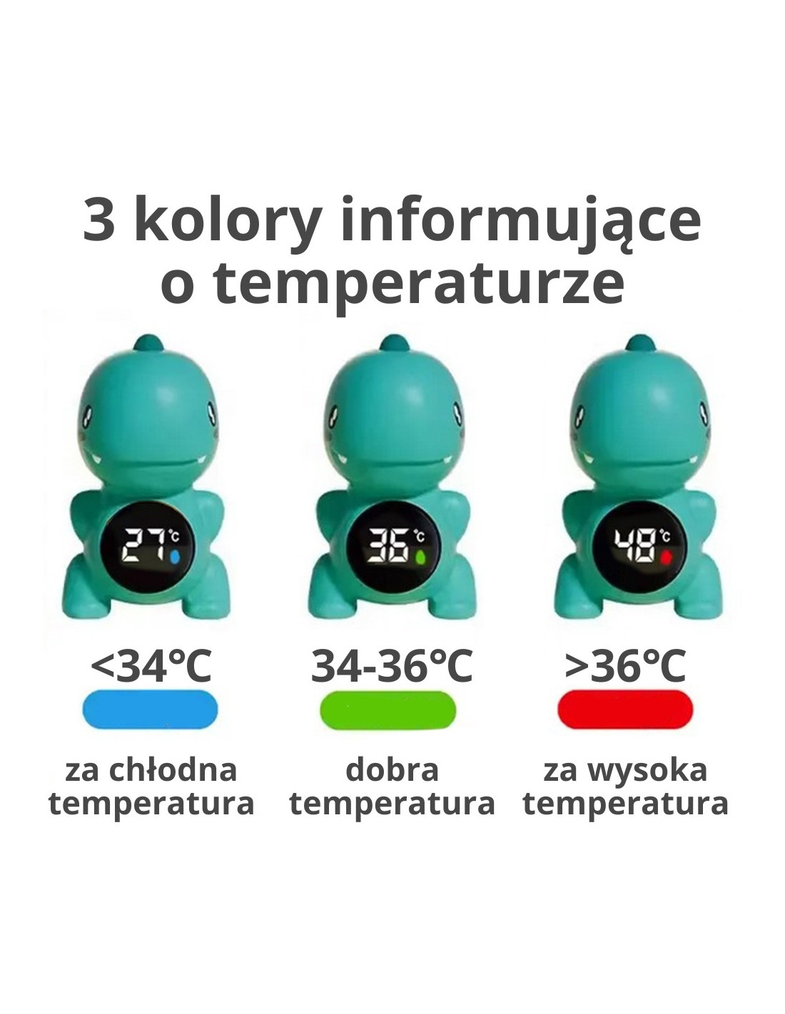 Termometr w kształcie Dinozaura od firmy WOOPIE to zabawka, która sprawia, że mierzenie temperatury wody staje się przyjemnością. Idealny do używania podczas kąpiel wannie, basenie lub do mierzenia temperatury w pokoju. Termometr jest łatwy w obsłudze i zapewnia precyzyjny pomiar. Dino jest wykonany z bezpiecznych materiałów, a jej wesoły wygląd sprawia, że będzie ulubieńcem zarówno dzieci, jak i rodziców.