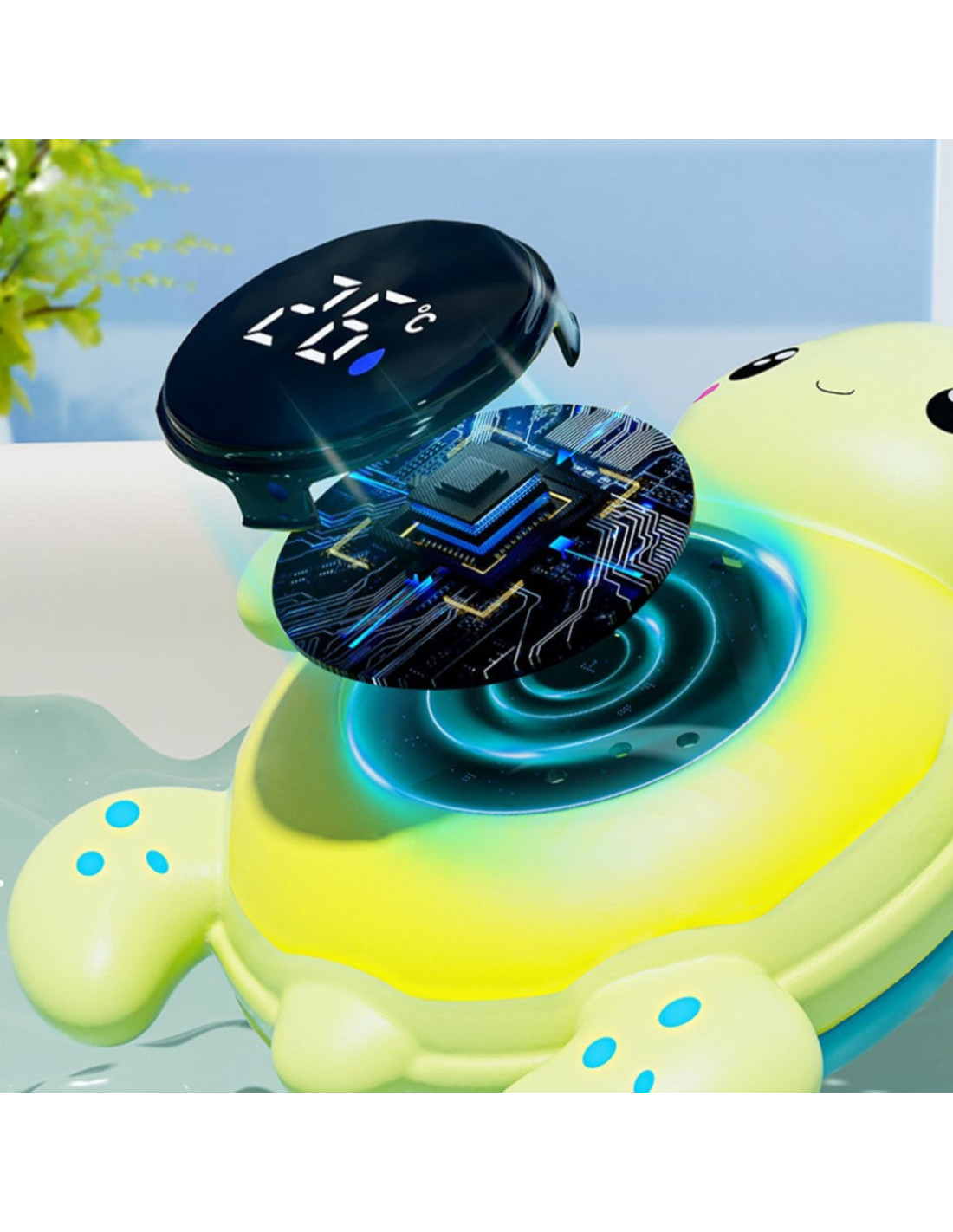 Zadbaj o bezpieczeństwo i komfort Twojego dziecka podczas każdej kąpieli! Uroczy termometr w kształcie żółwia sprawi, że pomiar temperatury stanie się zabawą. Przeznaczony do używania zarówno w wannie, basenie, jak i do mierzenia temperatury w pokoju. Wyposażony w czytelny wyświetlacz cyfrowy i funkcję kolorystycznego ostrzegania o temperaturze.