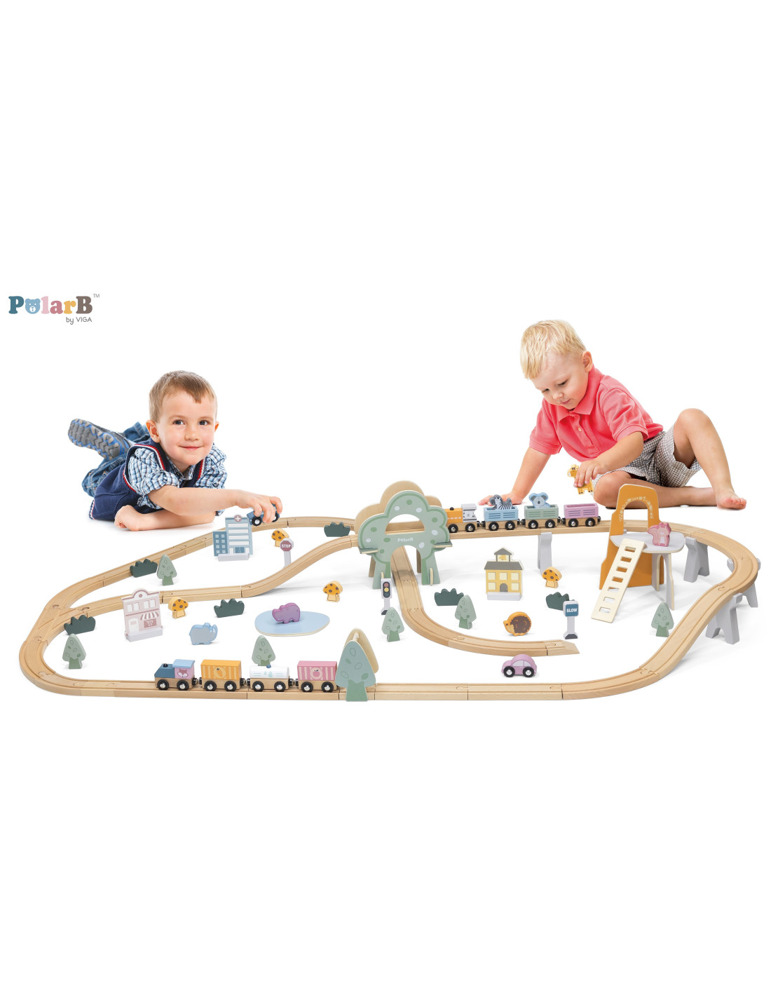 Drewniana kolejka z serii PolarB to zabawka, która będzie służyła Twojemu dziecku bardzo długo i zapewni wiele godzin kreatywnej i ciekawej zabawy. Dzięki kolejce dziecko może tworzyć własne scenariusze zabaw i przygód. Kolorowa kolejka z akcesoriami cieszy oko i zachęca do zabawy.