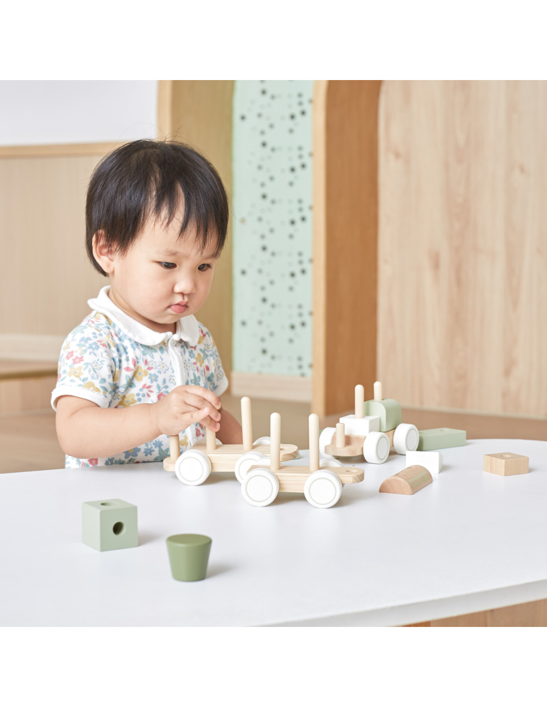 Zielona kolejka marki Viga z kolekcji PolarB to ciekawa zabawka która przynosi wiele frajdy. Składa się z 3 wagonów i 14 klocków o różnych kształtach. Dzięki swojej wyobraźni dzieci mogą tworzyć najróżniejsze kombinacje kształtów i kolorów. Wagoniki można łączyć lub bawić się nimi niezależnie. Układanie klocków rozwija u dzieci umiejętności motoryczne, koordynację ręka- ok oraz zręczność palców.