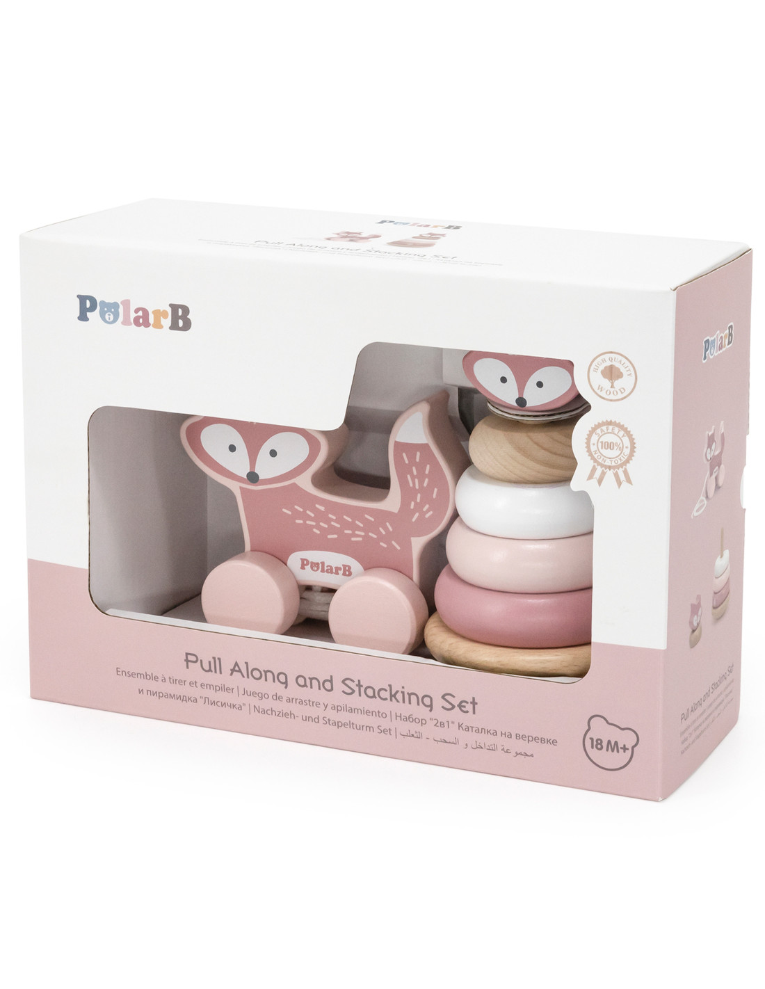W tym zestawie od marki Viga z kolekcji PolarB znajdziemy dwie pastelowe, drewniane zabawki: Liska piramidkę edukacyjną oraz Liska do ciągnięcia. Obie zabawki nie tylko wypełnią czas dziecka świetną zabawą, ale przyczynią się do rozwoju zdolności motorycznych, logicznego myślenia oraz nauki kolorów.