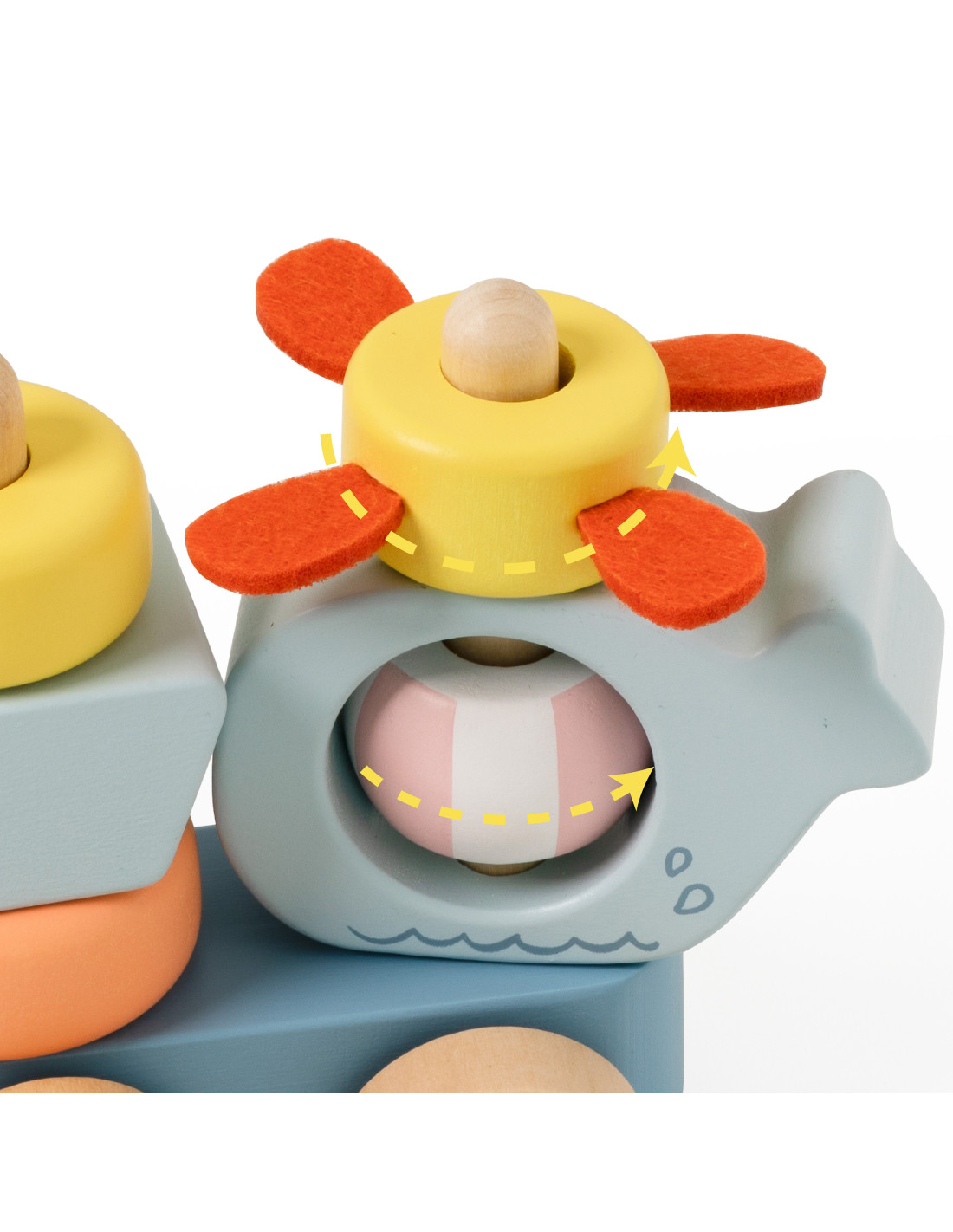 Drewniana Kolejka Ocean od Classic World to zabawka w pięknych pastelowych kolorach,która nie tylko cieszy oko naszych pociech, ale także rozwija wyobraźnię, koordynację i zdolności manualne.Ta zabawka łączy w sobie zabawę i naukę, pozwalając dzieciom odkrywać życie morskie, świadomość przestrzenną podczas składania i rozkładania klocków. Zestaw Ocean Pull zawiera łodzie, życie morskie, latarnie morskie, helikopter i inne klocki, dzięki którym możesz stworzyć morski świat. Funkcja ciągnięcia dodaje emocji raczkowaniu i chodzeniu, umożliwiając dzieciom zabranie oceanicznej przygody w dowolne miejsce.