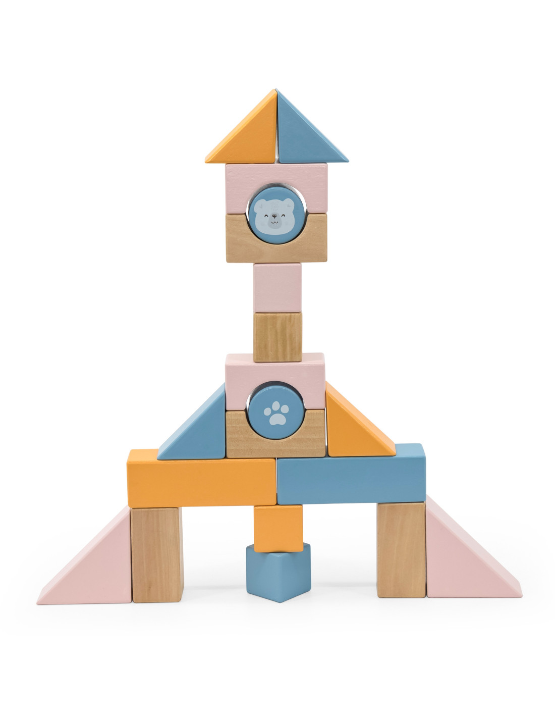 - - Zestaw zawiera 21 elementów w tym 20 klocków i wózeczek ze sznureczkiem