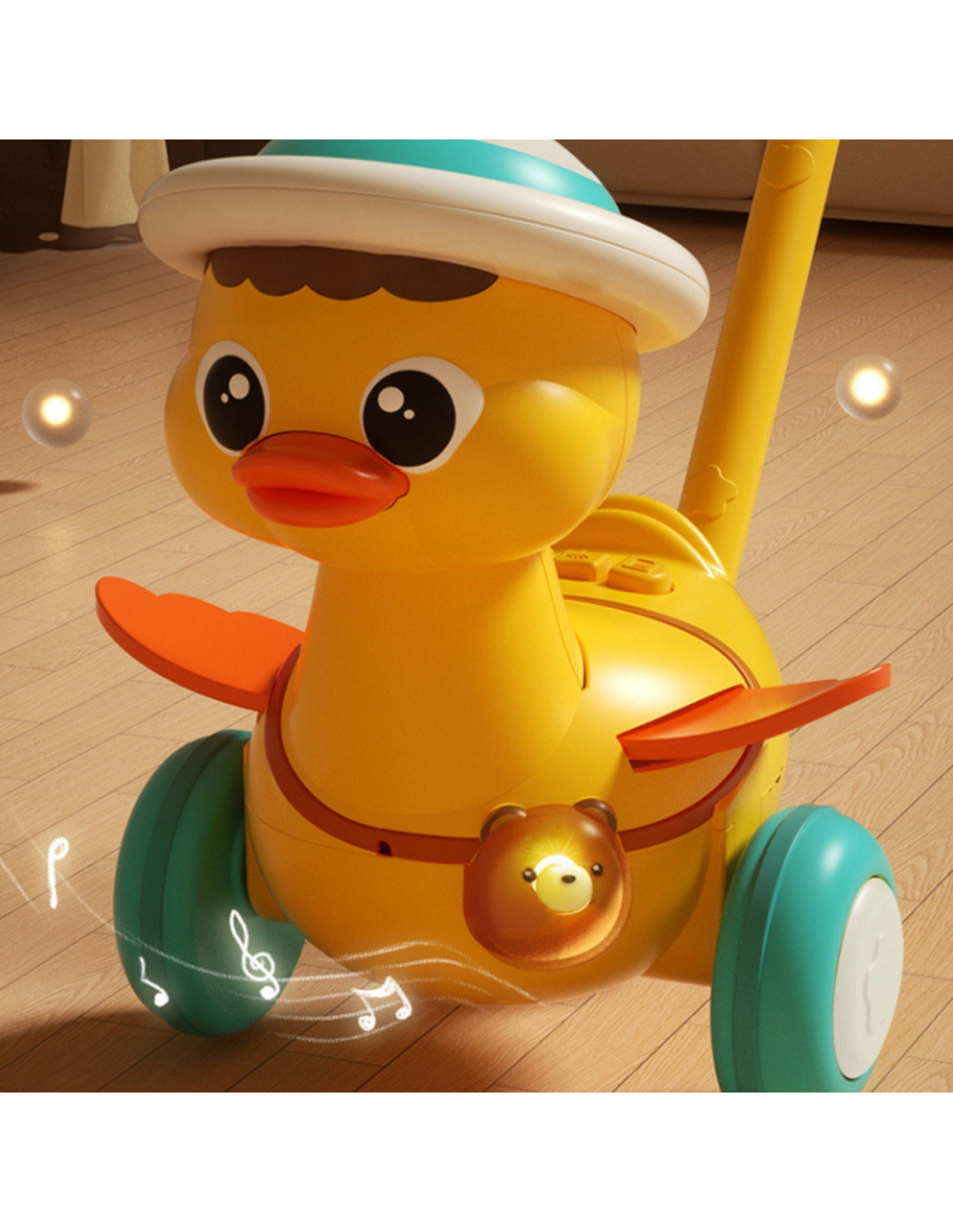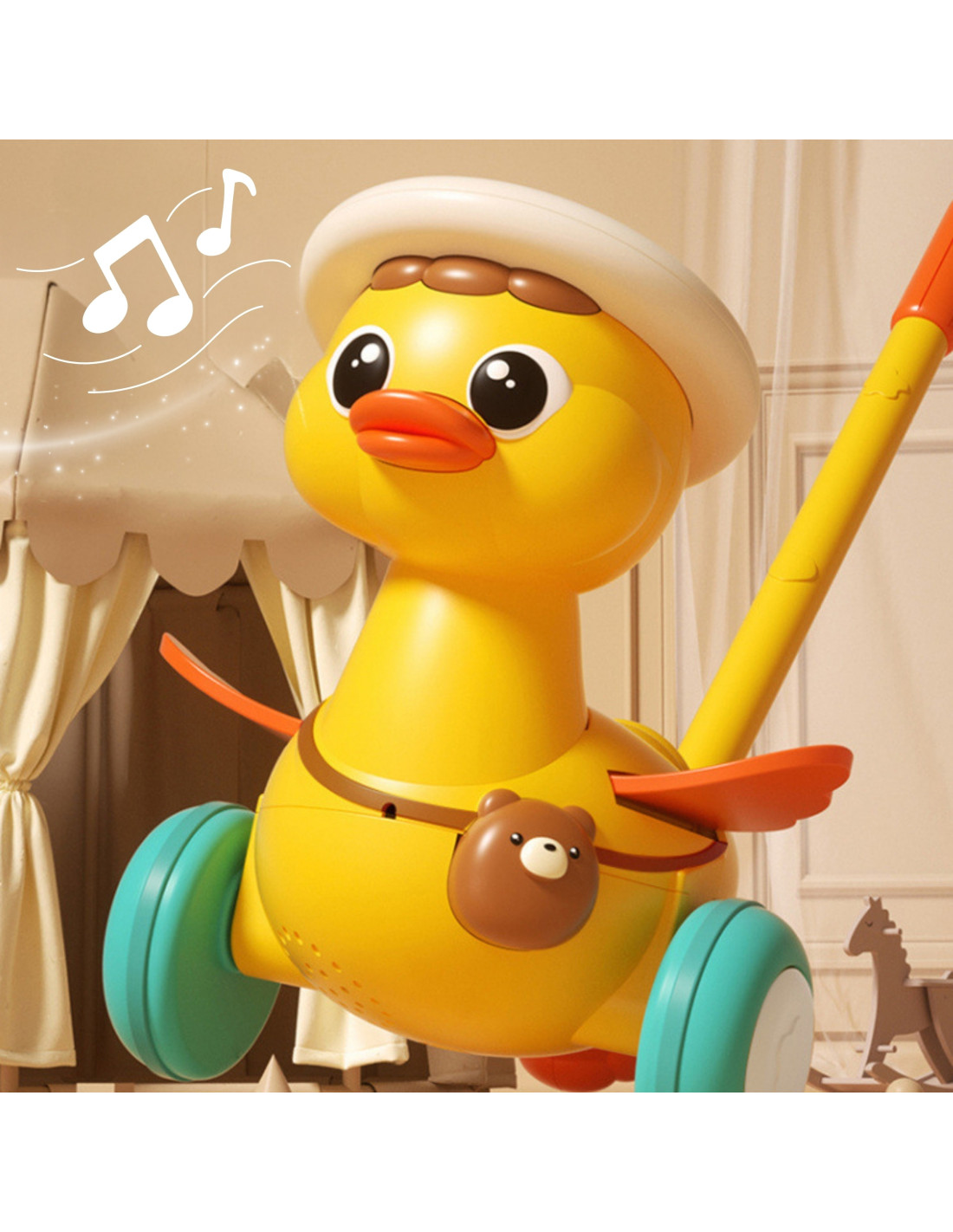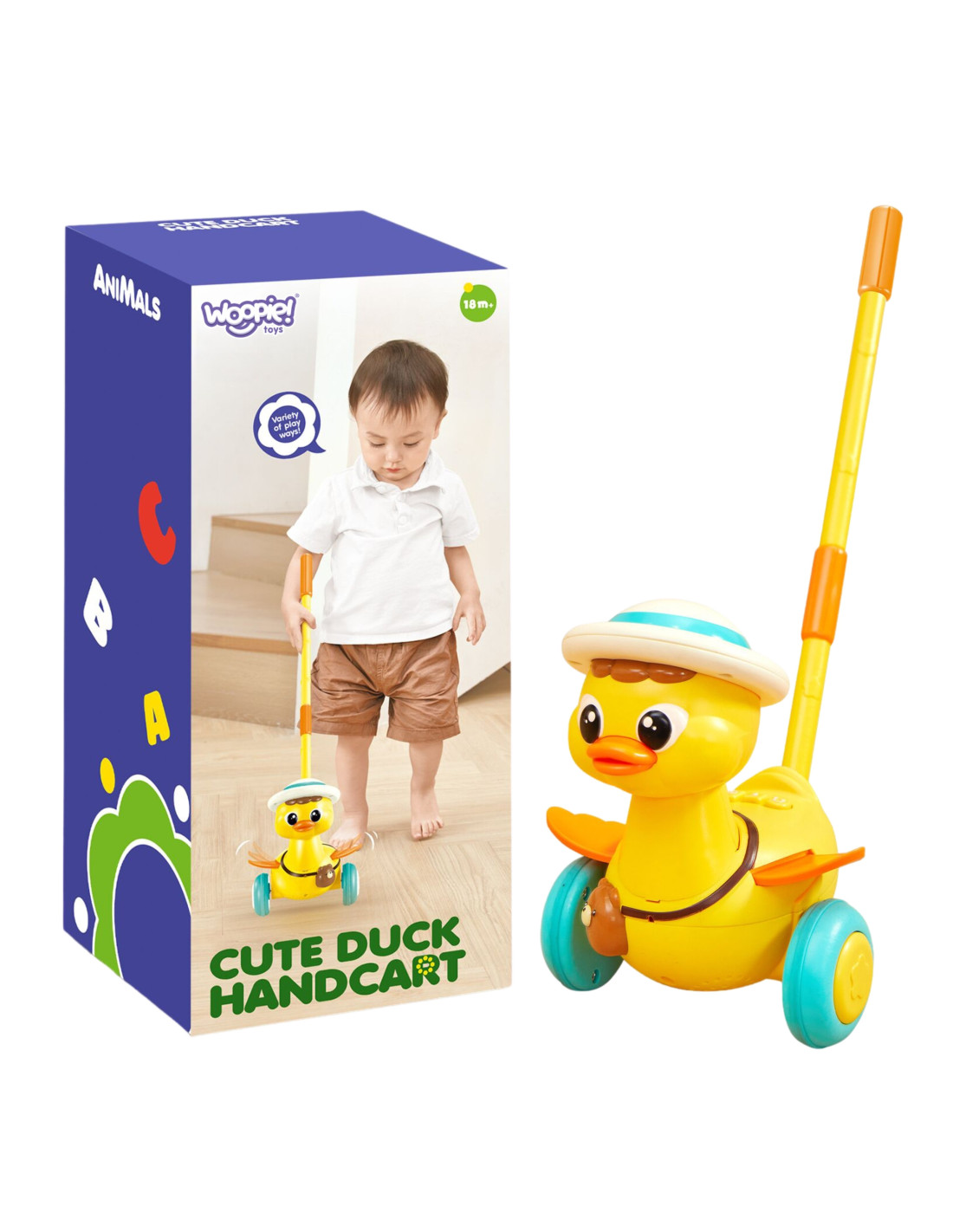 Radosna kaczuszka na kiju marki Woopie zaprasza do pierwszych spacerów. Macha skrzydełkami, świeci i gra wesołe melodie, zamieniając każdy krok w małą przygodę pełną ruchu i śmiechu. Dzięki lekkiej konstrukcji i stabilnym kółkom maluch chętnie pcha ją po domu, a intuicyjne przyciski zachęcają do samodzielnej zabawy i odkrywania dźwięków.