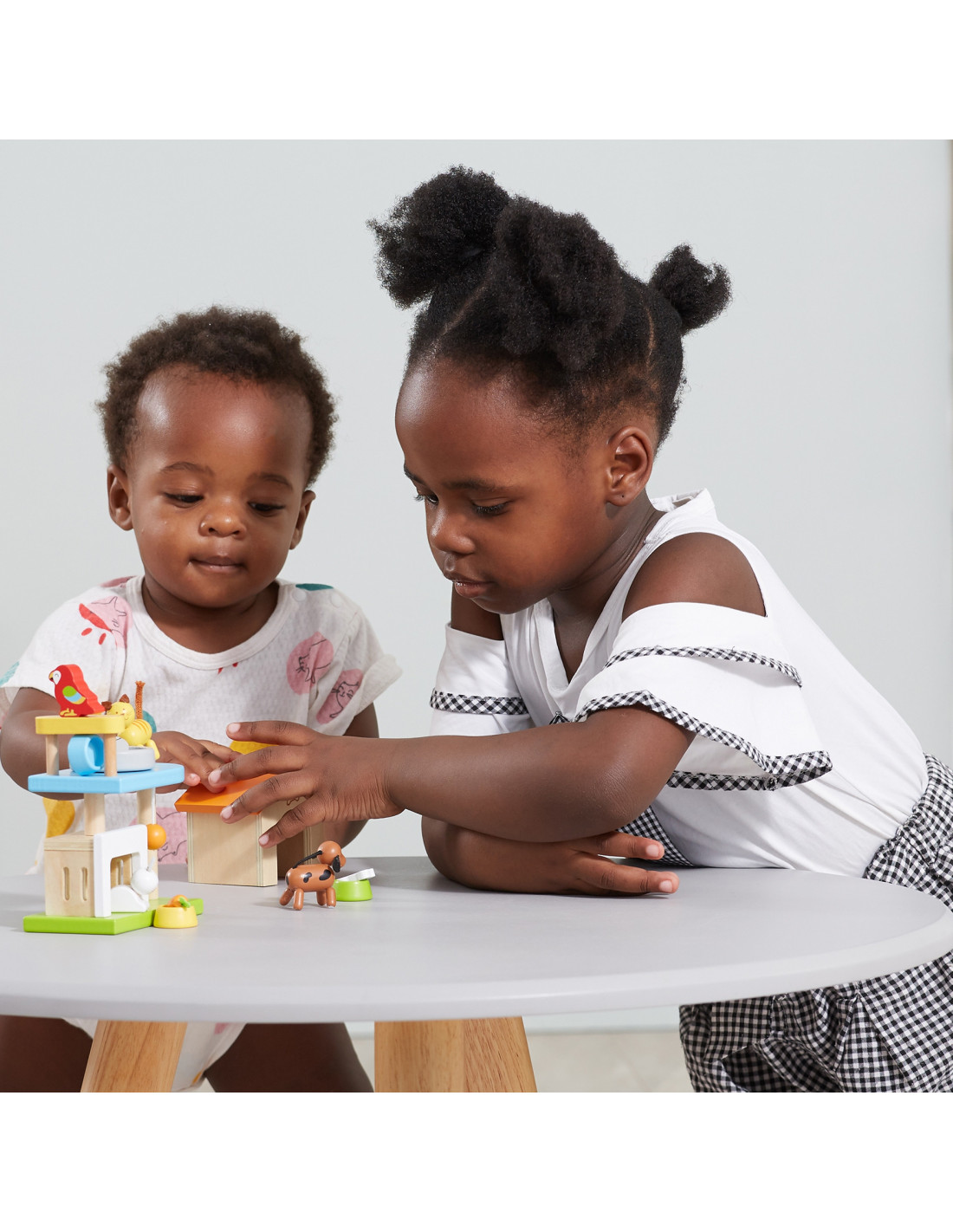 Drewniany zestaw zwierzątek to idealny dodatek do każdego domku dla lalek. W zestawie znajdziemy różne zwierzątka - uroczego szczeniaka, kotka, zajączka, papugę oraz ich domki i mini plac zabaw. Dzieci uwielbiają wymyślać historie, a ten zestaw to doskonały sposób na poruszenie u dzieci wyobraźni.