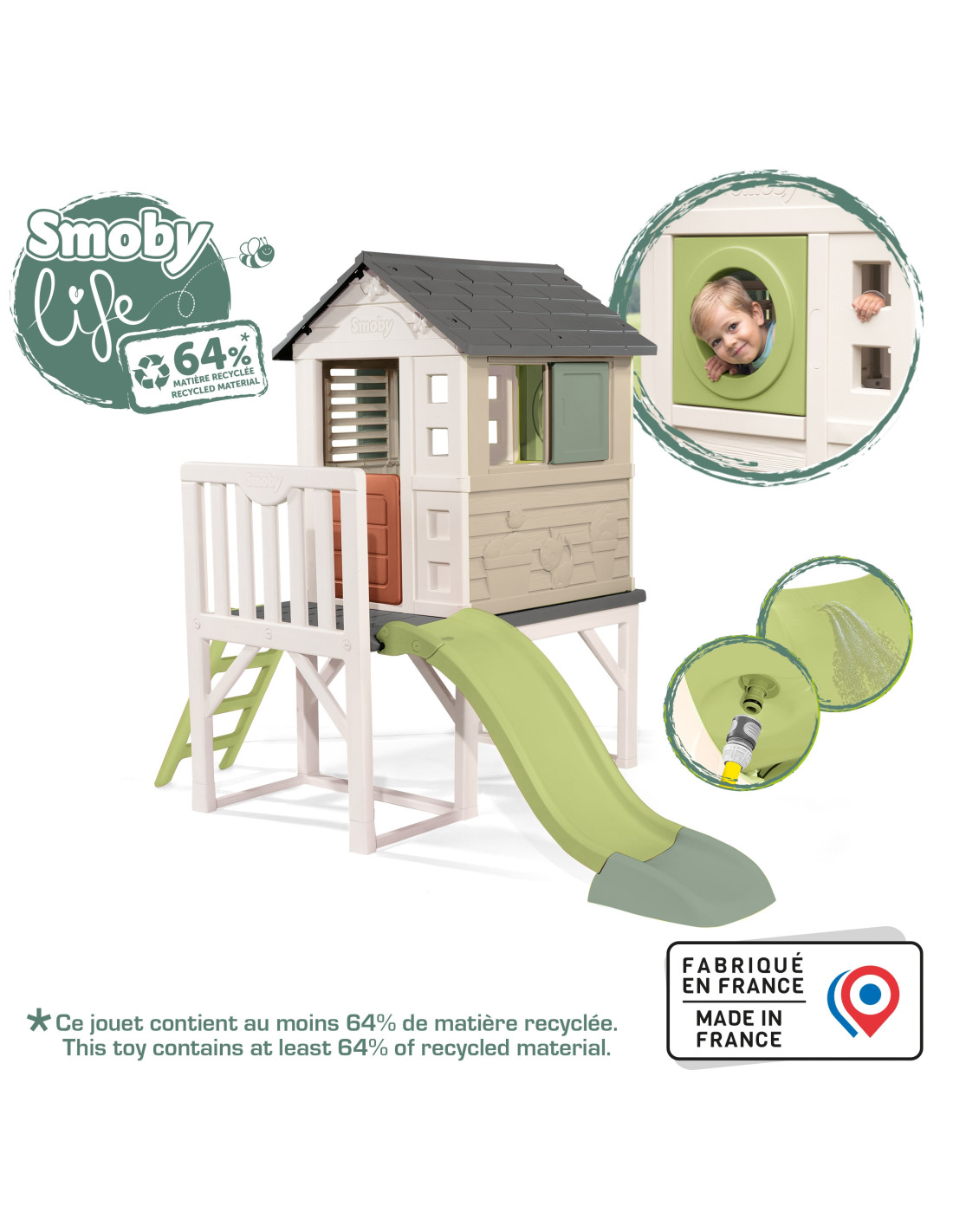 Smoby Life Domek ogrodowy na palach ze zjeżdżalnią to wymarzone miejsce do zabawy dla maluchów od 2. roku życia. Dzięki podwyższonej konstrukcji, zjeżdżalni i stylowym okiennicom, dzieci mogą aktywnie spędzać czas, rozwijać wyobraźnię i cieszyć się zabawą na świeżym powietrzu. To doskonały wybór na wspólne zabawy z rodzeństwem i przyjaciółmi. Domek ten to wyjątkowa przestrzeń do zabawy, która łączy ekologiczną produkcję, estetyczny wygląd i mnóstwo radości dla dzieci!
