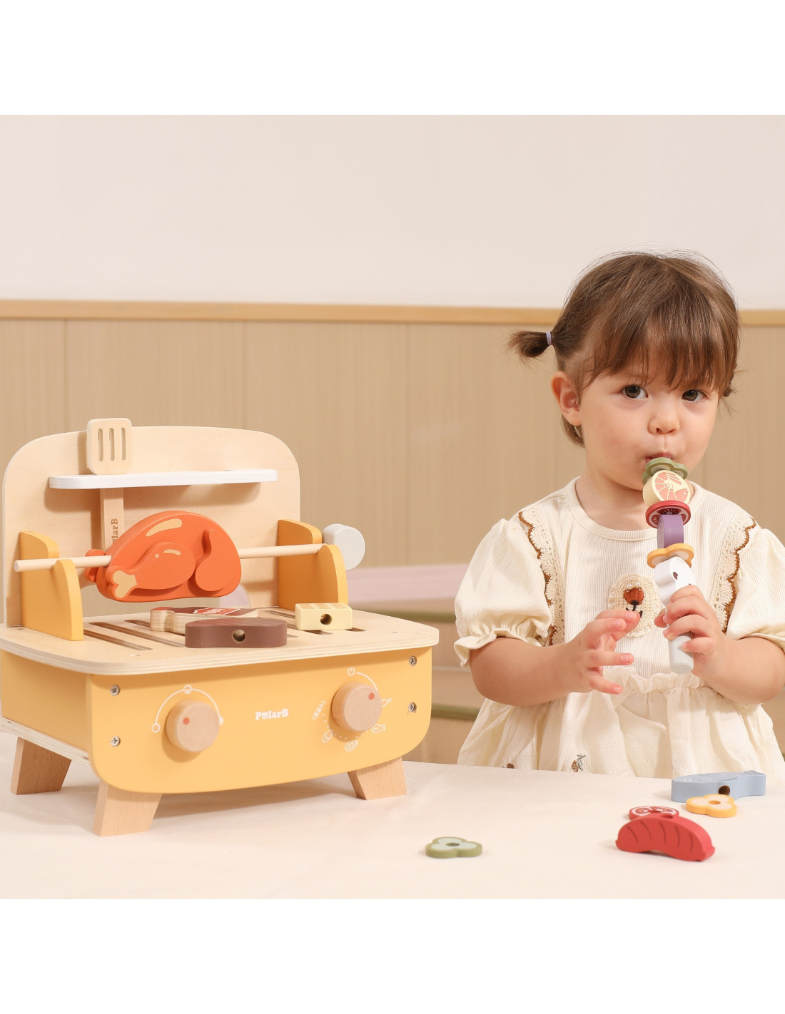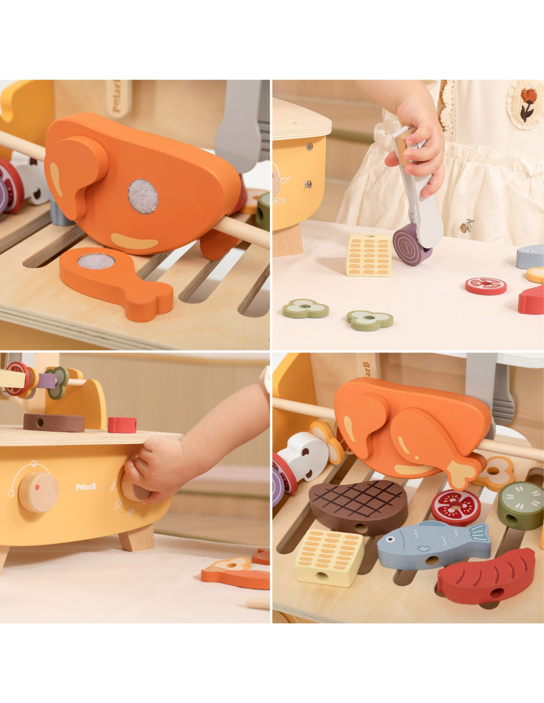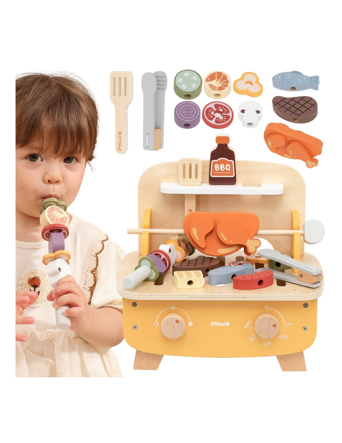 Rozpal wyobraźnię swojego malucha dzięki wyjątkowemu zestawowi do grillowania od marki VIGA ! Dzieci już od 18 miesiąca życia mogą wcielić się w rolę małych kucharzy i bawić się w grillowanie niczym dorośli. Szaszłyki do obracania, przyprawy do posypywania i realistyczne akcesoria sprawiają, że zabawa staje się niezwykle autentyczna. 22 elementy pozwalają na niekończone kombinacje smaków – od kurczaka, przez rybę, aż po kolorowe warzywa. To idealny sposób na rozwój kreatywności, zdolności manualnych i naukę rozpoznawania jedzenia w formie bezpiecznej, drewnianej zabawy.