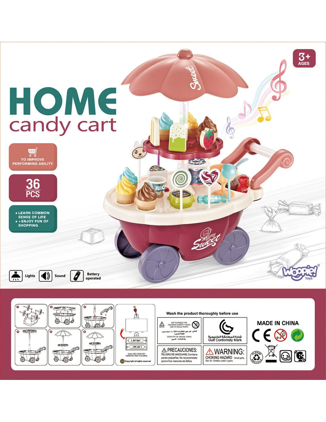 Wózek z Lodami marki Woopie będzie idealna zabawką dla Twojego maluszka i jego przyjaciół - nie tylko w upalne dni! Zabawka zapewnia kreatywną zabawę, odgrywanie ról, rozwija wyobraźnie i inne zdolności do prawidłowego rozwoju dziecka. Zabawa w "sprzedawcę" i "kupującego" pomoże rozwinąć świadomość i zdolności społeczne. Posiada wiele akcesoriów z najwyższej jakości dodatkami/naklejkami do zabawy/"sprzedaży" ze szczegółowymi modelami rożków do lodów, patyczków do lodów, lizaków lodowych, słodkich lizaków z rysunkowymi twarzami oraz innymi elementami, jak kanapki, pudełka na słodycze i przekąski, pucharki na lody, pudełko popcornów i butelka na sok. Dodatkowo niezbędnymi elementami zestawu są monety, które zachęcą dzieci do nauki podstawowych umiejętności matematycznych i finansowych podczas dokonywania zakupów. Oprócz bogatych dodatków posiada liczne specjalne funkcje: dźwiękowe (melodie włączane za pomocą guzika na blacie wózka), świetlne (kolorowy świecący trzon parasolki), w pełni obracająca się o 360 stopni parasolkę z półką, a samo stoisko po złożeniu parasolki i akcesoriów może przechowywać elementy wewnątrz wózka.