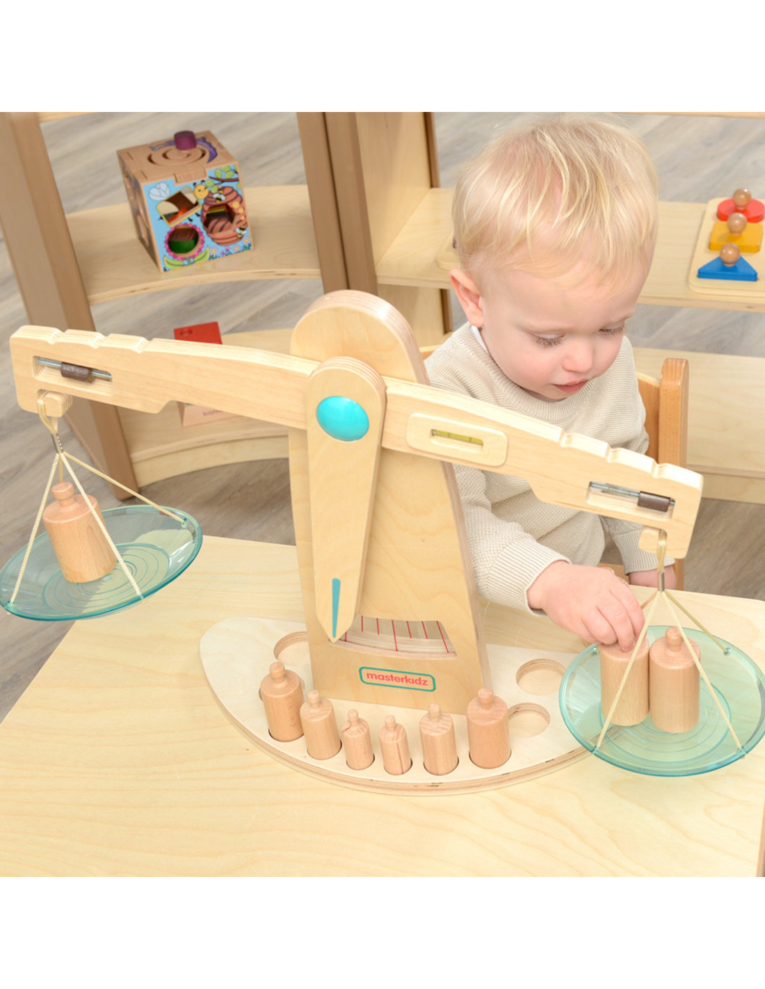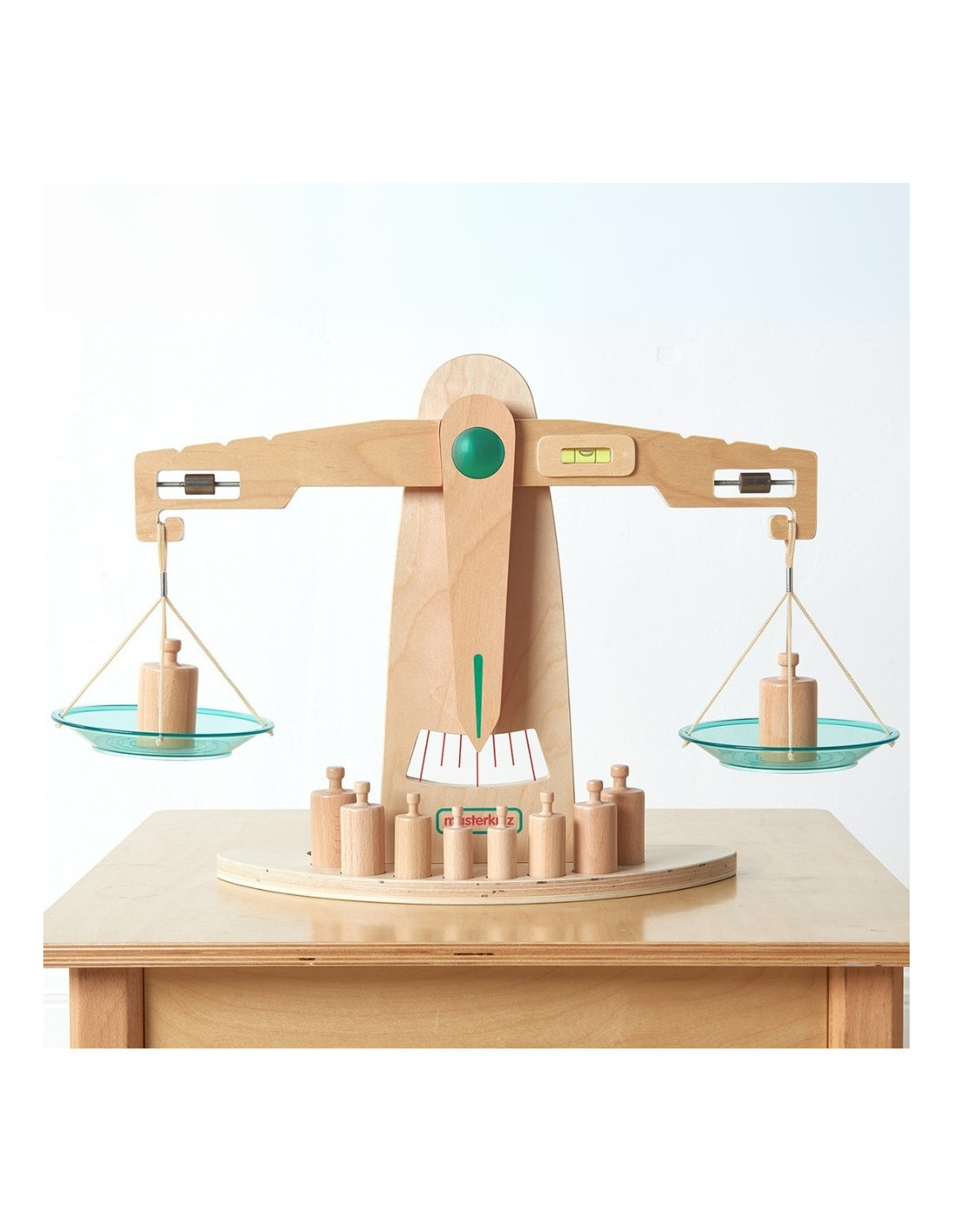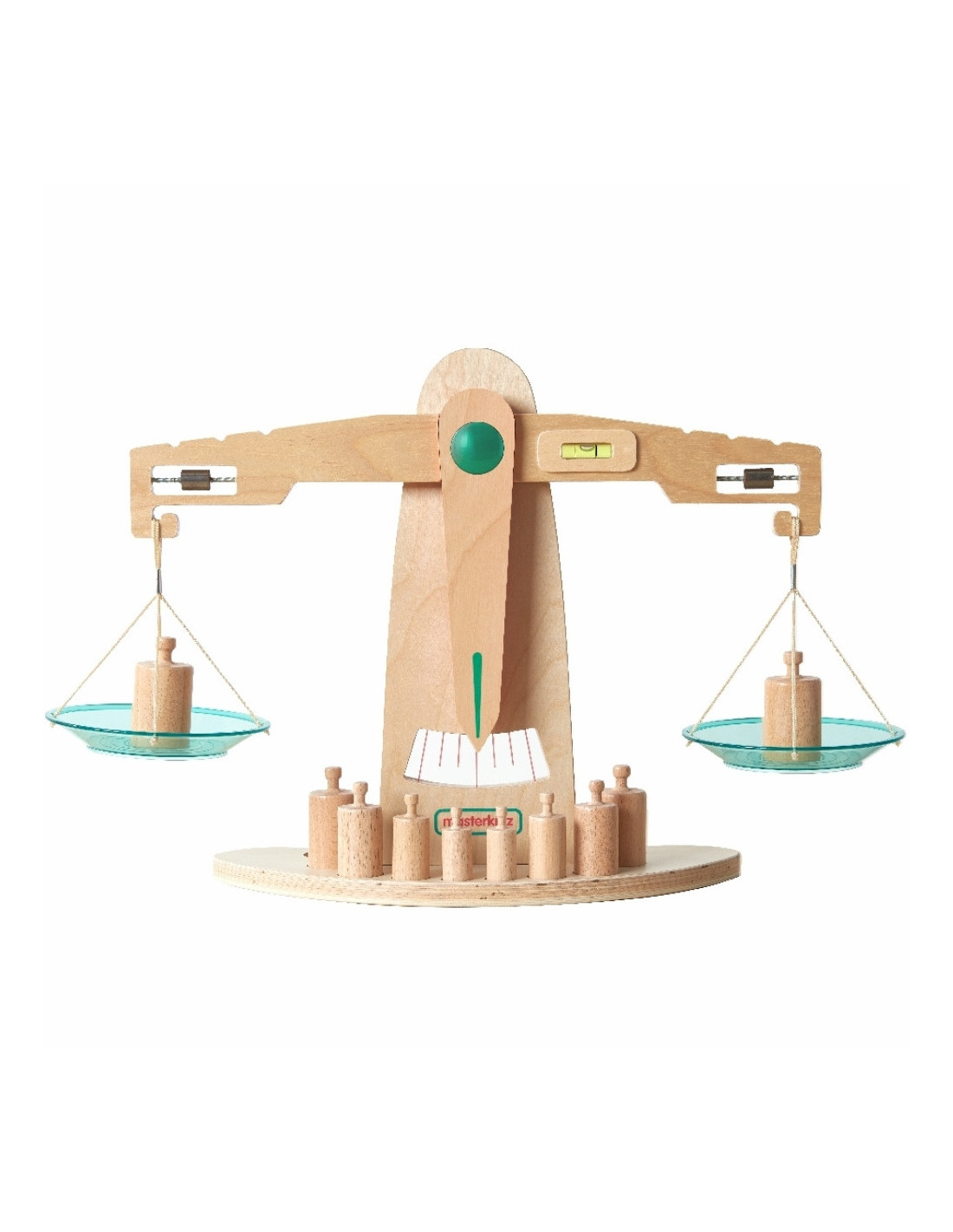 Drewniana waga szalkowa marki Masterkidz to doskonały sposób na wprowadzenie dzieci w świat pomiarów i eksperymentów. Wykonana z trwałego drewna, wyposażona w realistyczny pionowy wskaźnik oraz poziomicę, zapewnia precyzyjne ważenie i długotrwałą zabawę. Dzięki 10 drewnianym odważnikom oraz możliwości regulacji balansu, dzieci mogą samodzielnie badać zasady równowagi, porównywać masę przedmiotów i rozwijać umiejętności logicznego myślenia. Solidna konstrukcja i bezpieczne materiały sprawiają, że waga idealnie nadaje się zarówno do domu, jak i przedszkola czy szkoły.