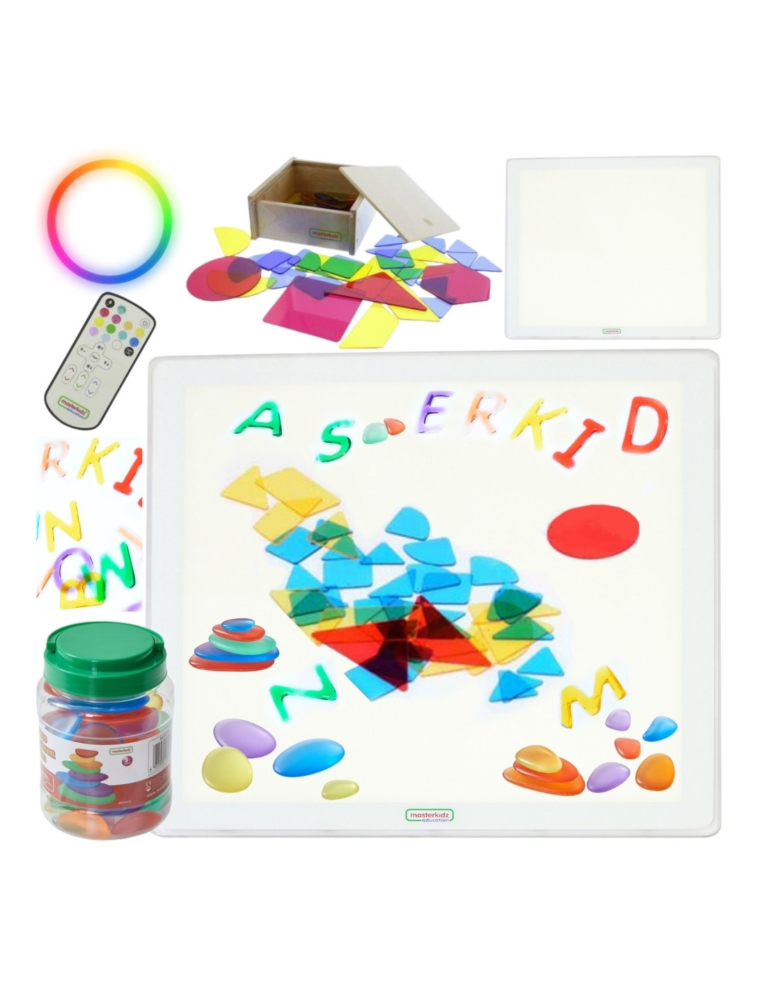 Kwadratowy panel świetlny to wszechstronne narzędzie edukacyjne, które doskonale sprawdzi się w każdej sali lekcyjnej. Dzięki lekkiej konstrukcji i dużej powierzchni umożliwia wygodne przenoszenie oraz zapewnia odpowiednią przestrzeń do obserwacji i zabawy dla dzieci w różnym wieku. Panel emituje kolorowe światło z możliwością dowolnej konfiguracji dzięki dołączonemu pilotowi, użytkownik może ustawić panel na jeden z 11 zaprogramowanych kolorów, lub ręcznie zmienić emitowany kolor bazując na podstawowych barwach światła: czerwonej, zielonej i niebieskiej. Urządzenie pozwala także na płynne przechodzenie pomiędzy kolorami oraz zapamiętywanie wybranych barw do ponownego użycia Panel można umieścić zarówno na stole, jak i na podłodze – jego rozmiar pozwala na jednoczesną pracę jednego dziecka lub grupy. Panel doskonale współpracuje z dołączonymi do zestawu kolorowymi akcesoriami które wzbogacają możliwości zabawy i nauki, umożliwiając tworzenie różnorodnych wzorów i kompozycji w świetle.