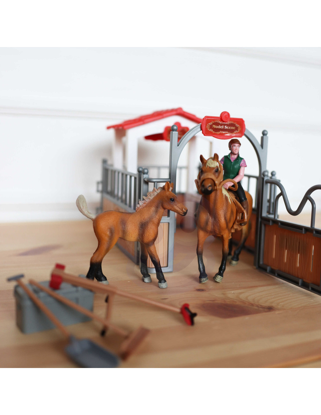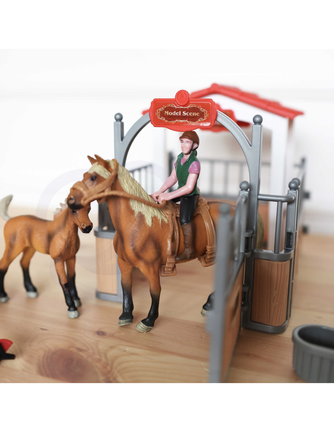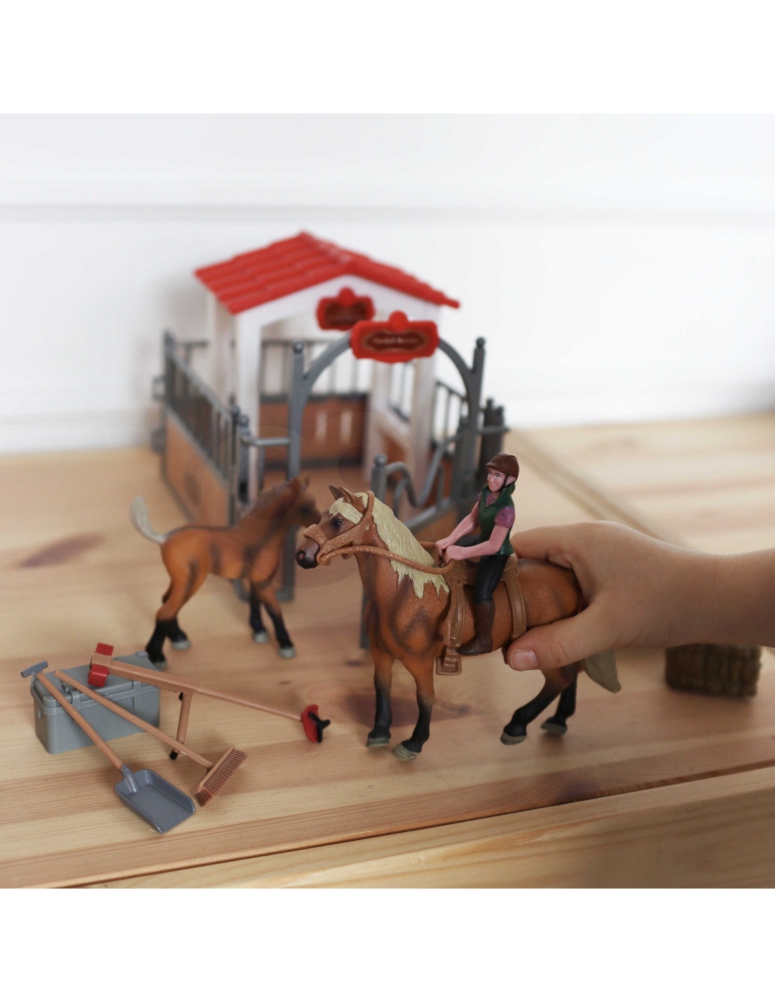 - - w zestawie figurki 2 koni, dżokejka i akcesoria do stajni,