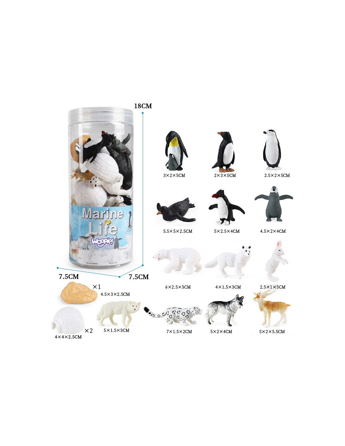 Zestaw Figurek od marki WOOPIE to idealny zestaw dla każdego fana zwierząt arktycznych. W zestawie znajduje się 13 zwierząt arktycznych oraz 2 szt. iglo i skała. Realistycznie wyglądające figurki powiększą zbiory małego kolekcjonera, spełnią funkcję edukacyjną oraz zapewnią dobrą zabawę dzięki której maluch poszerzy zakres swojej wyobraźni i kreatywności.