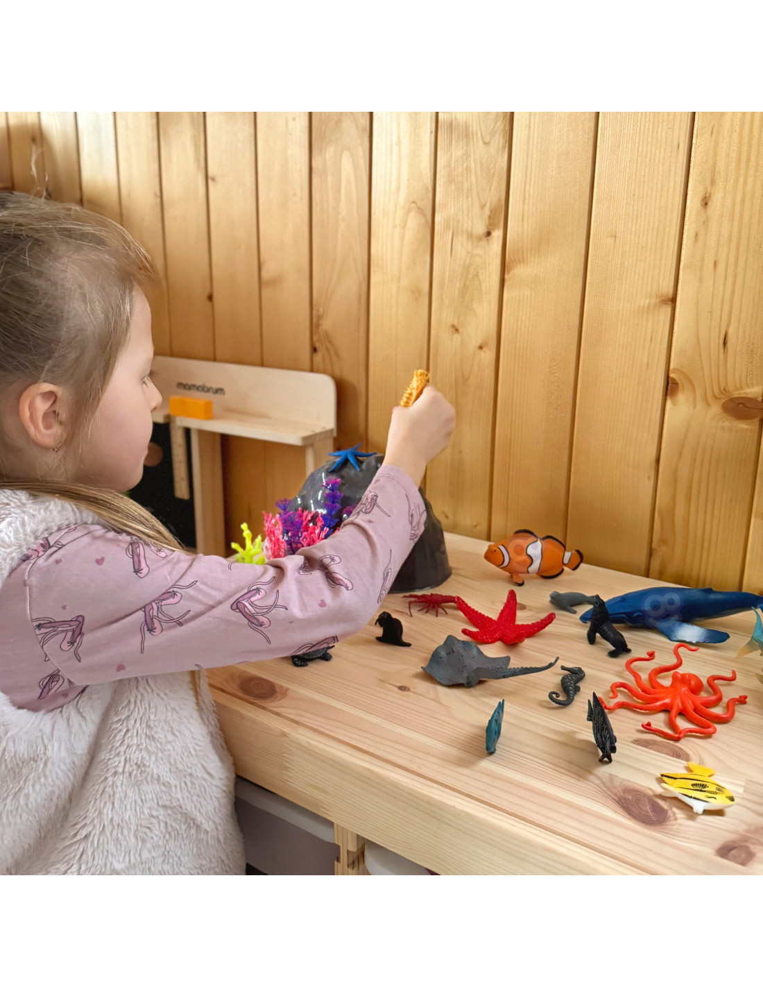 Zestaw Figurek od marki WOOPIE to idealny zestaw dla każdego fana zwierząt morskich. W zestawie znajduje się 21 zwierząt morskich, 10 rośliny, matę oraz skałę. Realistycznie wyglądające figurki powiększą zbiory małego kolekcjonera, spełnią funkcję edukacyjną oraz zapewnią dobrą zabawę dzięki której maluch poszerzy zakres swojej wyobraźni i kreatywności.