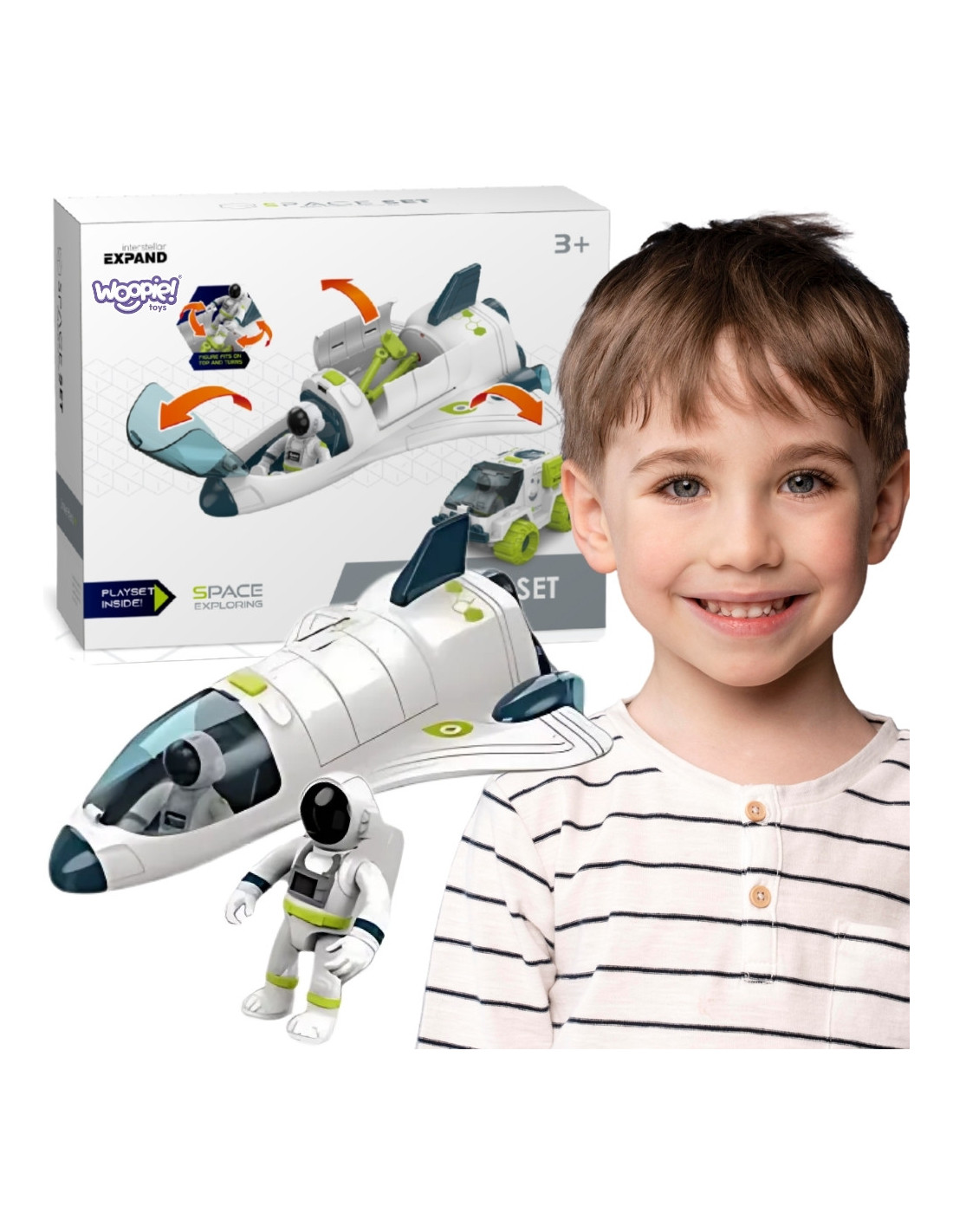 Wejdź do świata fascynującej eksploracji kosmosu z Kosmicznym zestawem z Promem i Łazikiem od Woopie! To idealna propozycja dla małych odkrywców, którzy marzą o podboju obcych planet. Dzięki przemyślanej konstrukcji i interaktywnym funkcjom, dziecko nie tylko świetnie się bawi, ale również rozwija swoje zdolności poznawcze, motoryczne i wyobraźnię. Boczne drzwi promu otwierają się, ukazując przestrzeń do załadunku, a ruchome ramię robotyczne, do którego można doczepić figurkę astronauty obraca się i symuluje pracę w przestrzeni kosmicznej. Na dachu łazika znajduje się interaktywny radar – po naciśnięciu przycisku, antena automatycznie się podnosi, co daje dodatkowy element zabawy i zaskoczenia. To nie wszystko! Po zakończeniu misji wystarczy nacisnąć przedni zderzak, a radar samoczynnie się chowa – to jak prawdziwa technologia kosmiczna w miniaturowym wydaniu! Zestaw oferuje świetlne i dźwiękowe efekty, ruchome elementy, oraz funkcje edukacyjne, które wspierają rozwój dziecka na wielu poziomach. To nie tylko zabawka – to początek prawdziwej przygody międzygwiezdnej, która rozpoczyna się w Twoim domu!