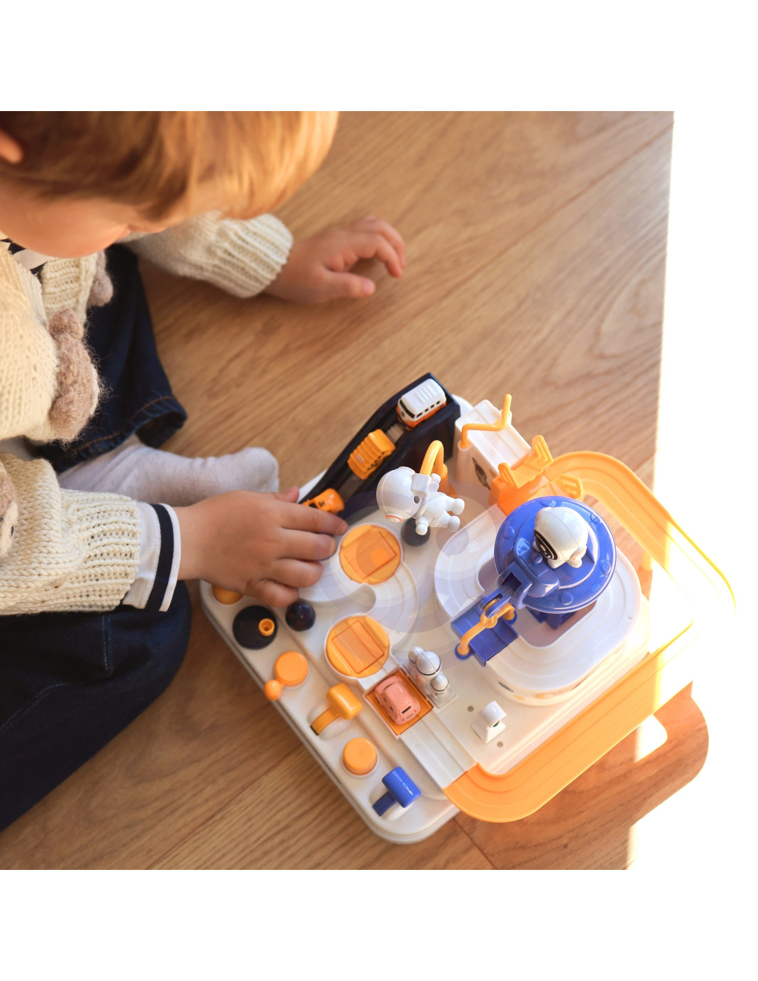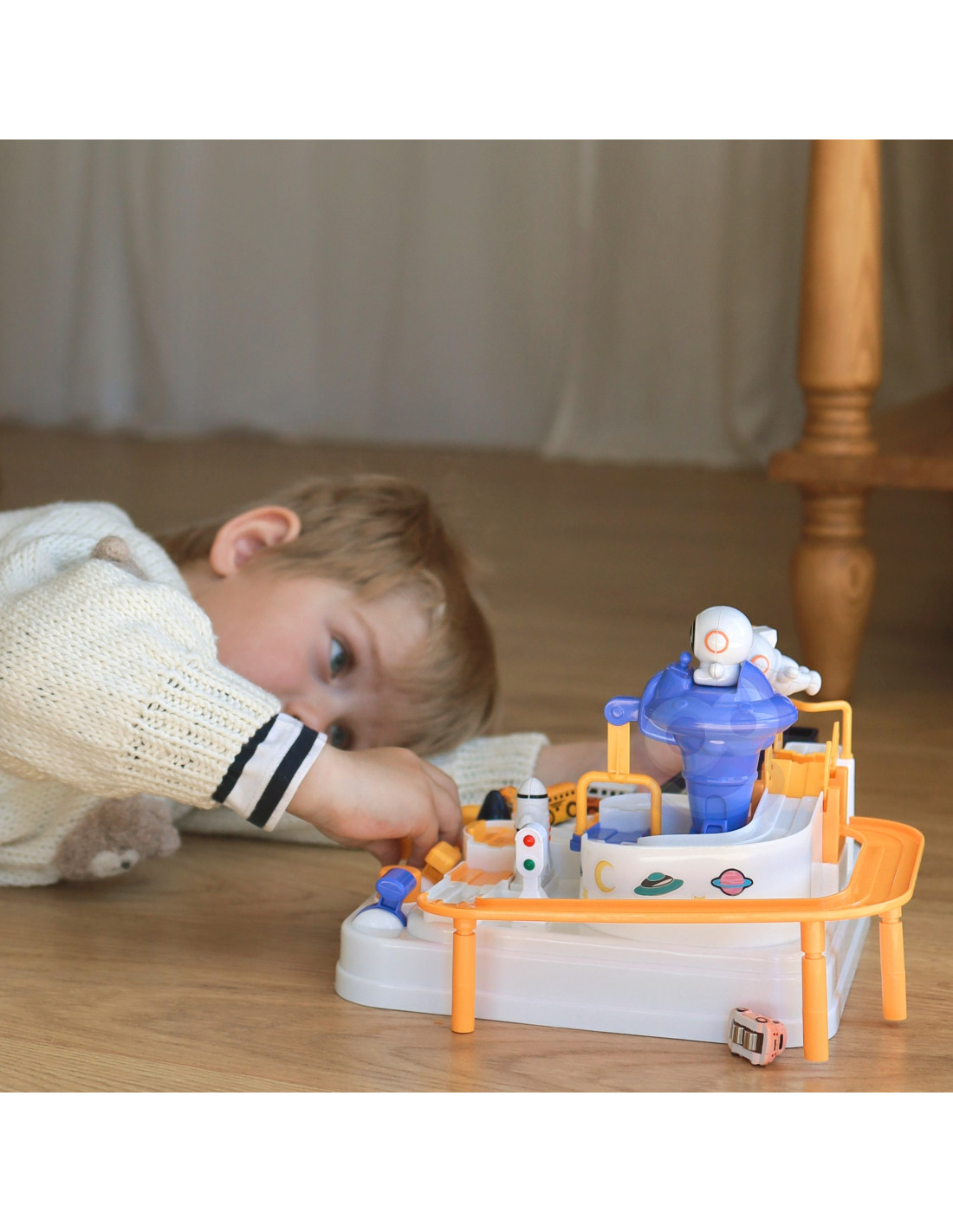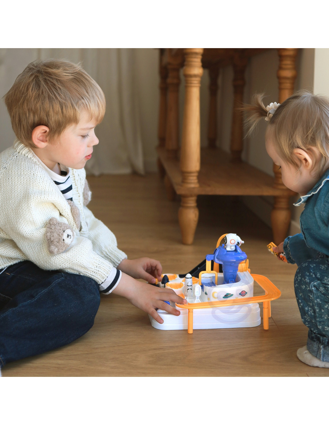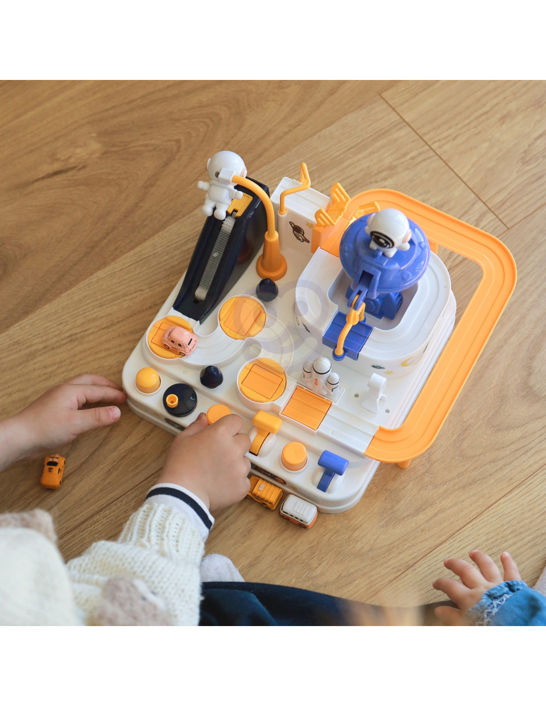 Interaktywny tor przeszkód "Przygoda Astronauty" to niezwykły prezent dla małych odkrywców, którzy pragną ekscytujących przygód i niezapomnianych wyzwań. To więcej niż tylko zabawka - to prawdziwa arena, gdzie dzieci mogą wcielić się w role kierowców i pokonywać różne przeszkody. Dzięki przemyślanej konstrukcji i różnorodnym elementom, zabawka oferuje niezapomniane chwile pełne ekscytacji i wyzwań. To idealne narzędzie do rozwijania wyobraźni i umiejętności manualnych, które jednocześnie dostarcza mnóstwo frajdy. Tor samochodowy zapewnia nie tylko możliwość przejażdżek, ale także dynamiczne, interaktywne elementy, którymi operuje się przyciskami i gałkami. To ekscytująca gra, która wymaga skupienia i zręczności. W zestawie znajdują się trzy samochodziki, które dowolnie mogą eksplorować tor, zależnie od wyobraźni malucha. Pojazdy urozmaicą zabawę lub umożliwią dzieciom rywalizację na trasie. Przejazd przez tor wydaje się łatwy, ale liczne elementy, takie jak przekładnie lub zwodzone mosty sprawią, że podróż stanie się pełna adrenaliny.