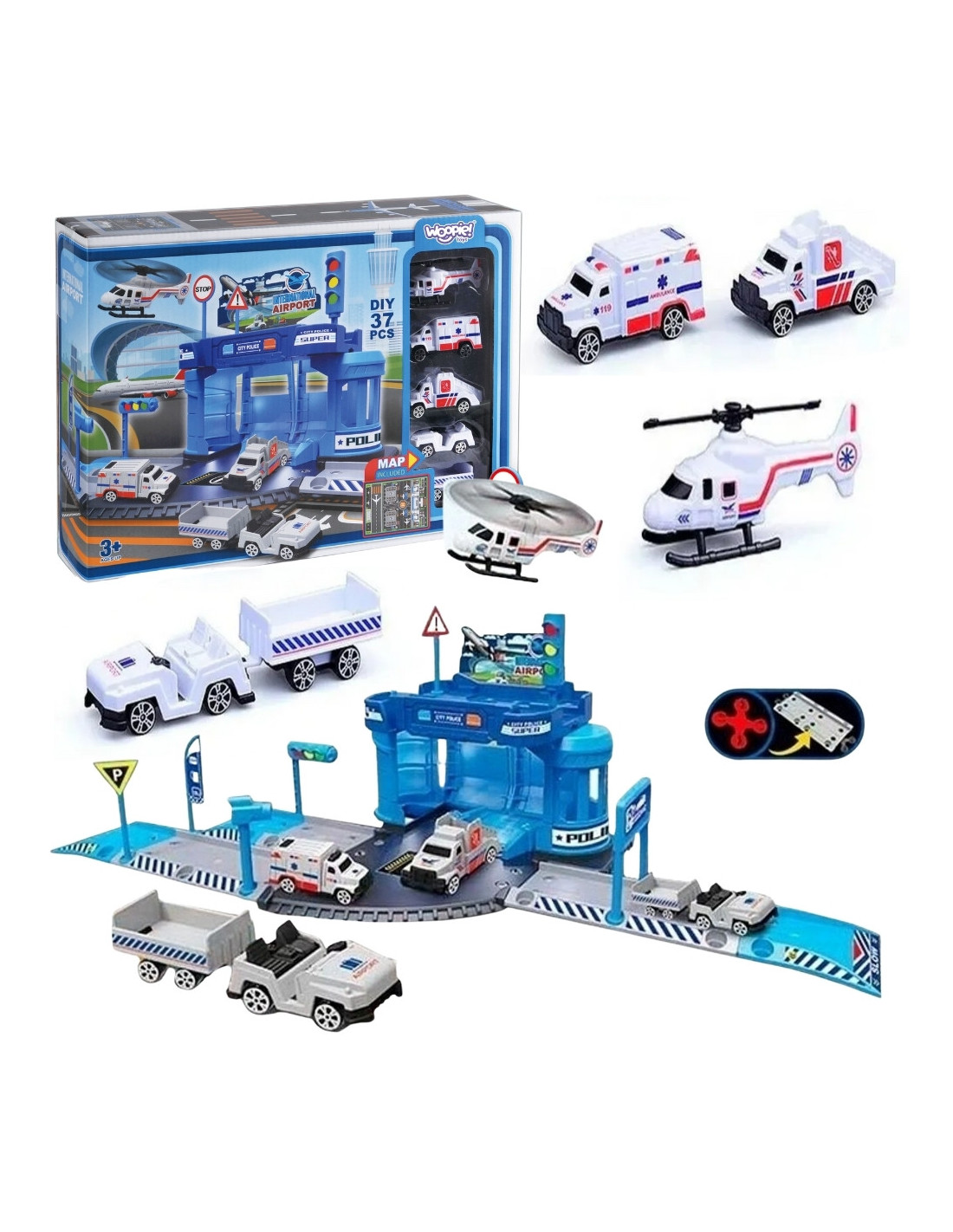 WOOPIE Zestaw Tematyczny Posterunek Policji na Lotnisku z Autami i Helikopterem 37el.
