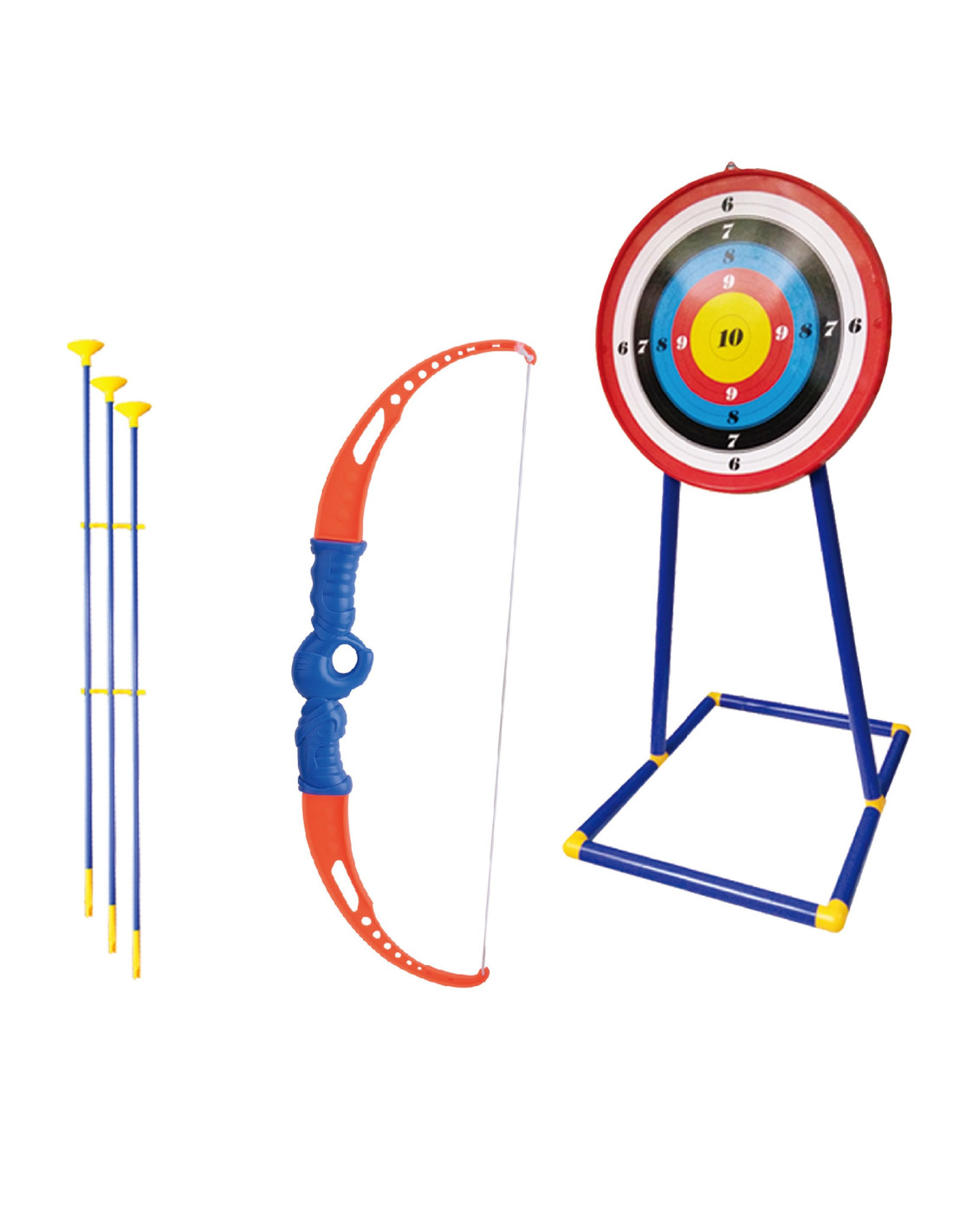 - - zestaw zawiera łuk odwzorowany na prawdziwej wersji, 3 strzały z przyssawką na końcu oraz tarczę która urozmaica zabawę w celowaniu w jak największa liczbę punktów,