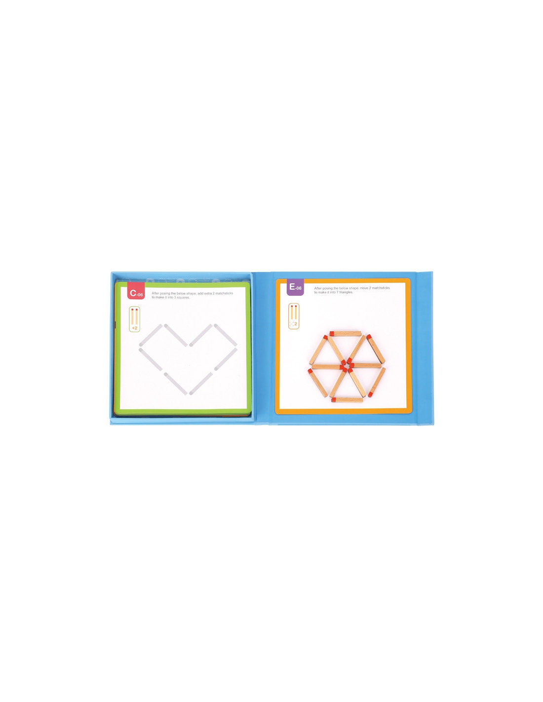 - - W zestawie 58 elementów: książeczka z różnymi wzorami, pudełko oraz zapałki magnetyczne,
