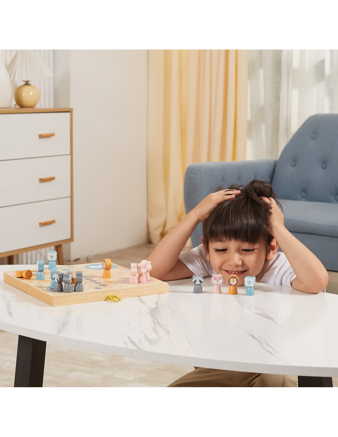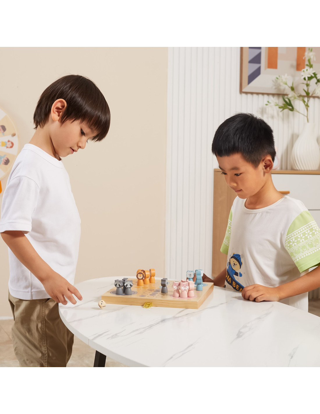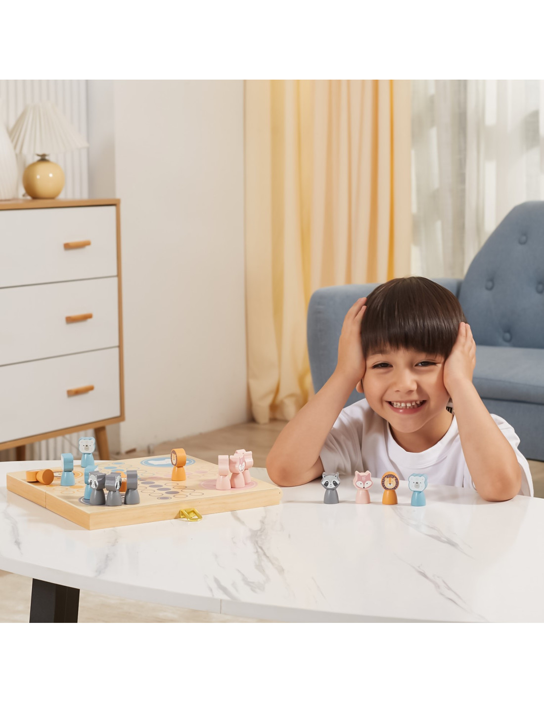 Gra planszowa Chińczyk jest dobrze znana dzieciom i dorosłym na całym świecie. Firma Viga PolarB przygotowała jej zupełnie nową odsłonę, która oczaruje malców. Zestaw zawiera cztery kostki, planszę-pudełko oraz szesnaście pięknie wykonanych, pastelowych figurek.