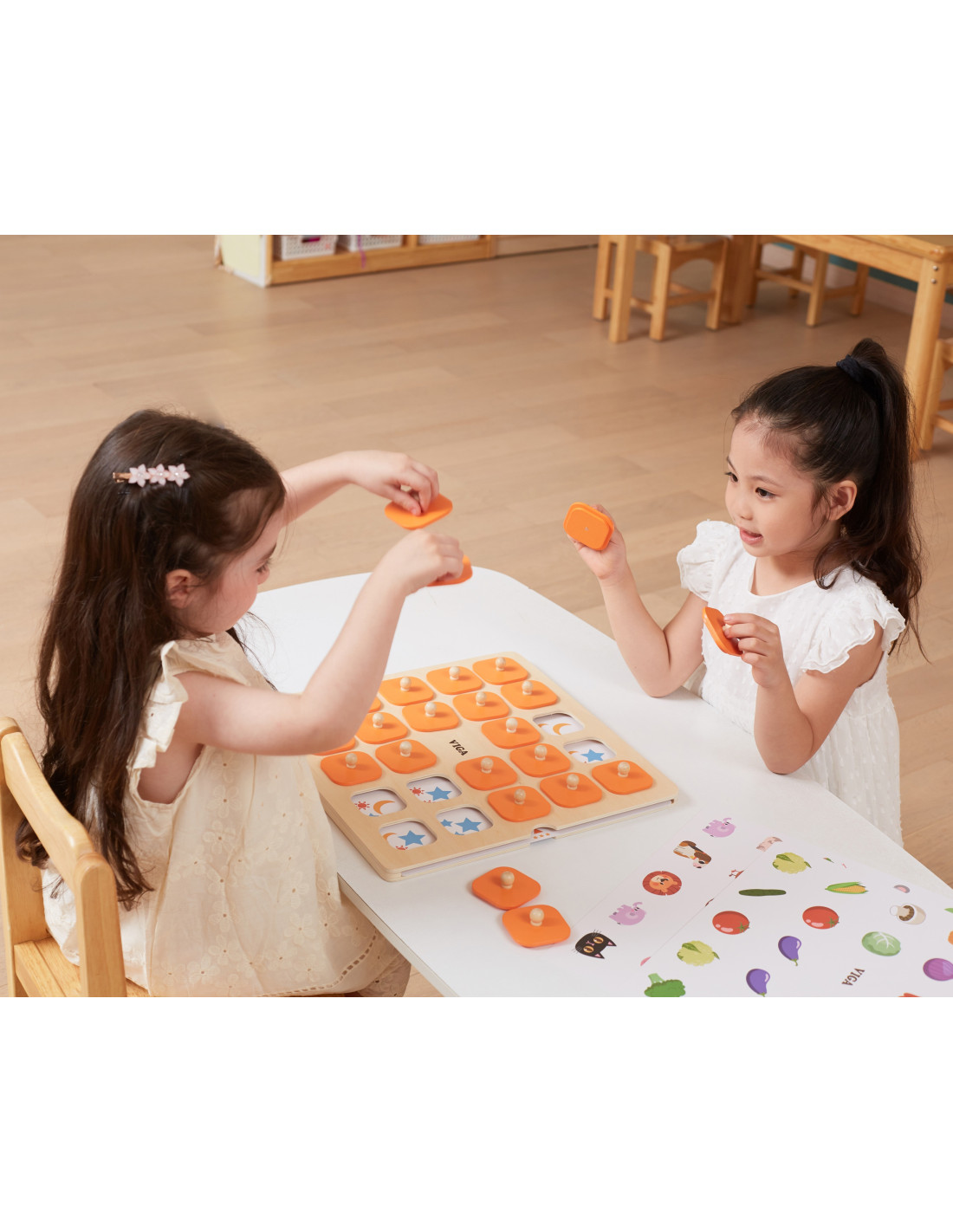 Gra Memory marki Viga to wspaniały pomysł na wspólne spędzenie czasu. Dziecko poprzez zabawę ćwiczy pamięć i koncentrację. Zestaw zawiera aż 10 kart z różnymi motywami o różnym stopniu trudności. Produkt wykonany z najwyższej jakości materiałów bezpiecznych dla dzieci i środowiska. Podnieś kółeczko za uchwyt, zapamiętaj obrazek znajdujący się pod nim i znajdź drugi taki sam! Wygrywa osoba, która znajdzie najwięcej par. Dobrej zabawy!