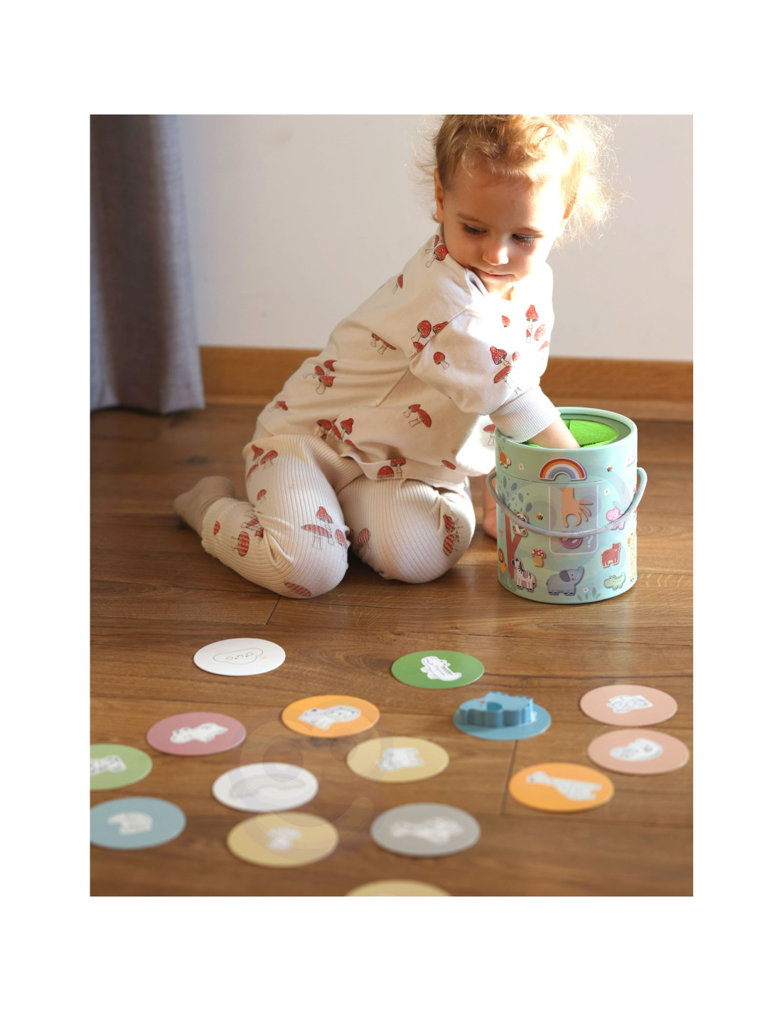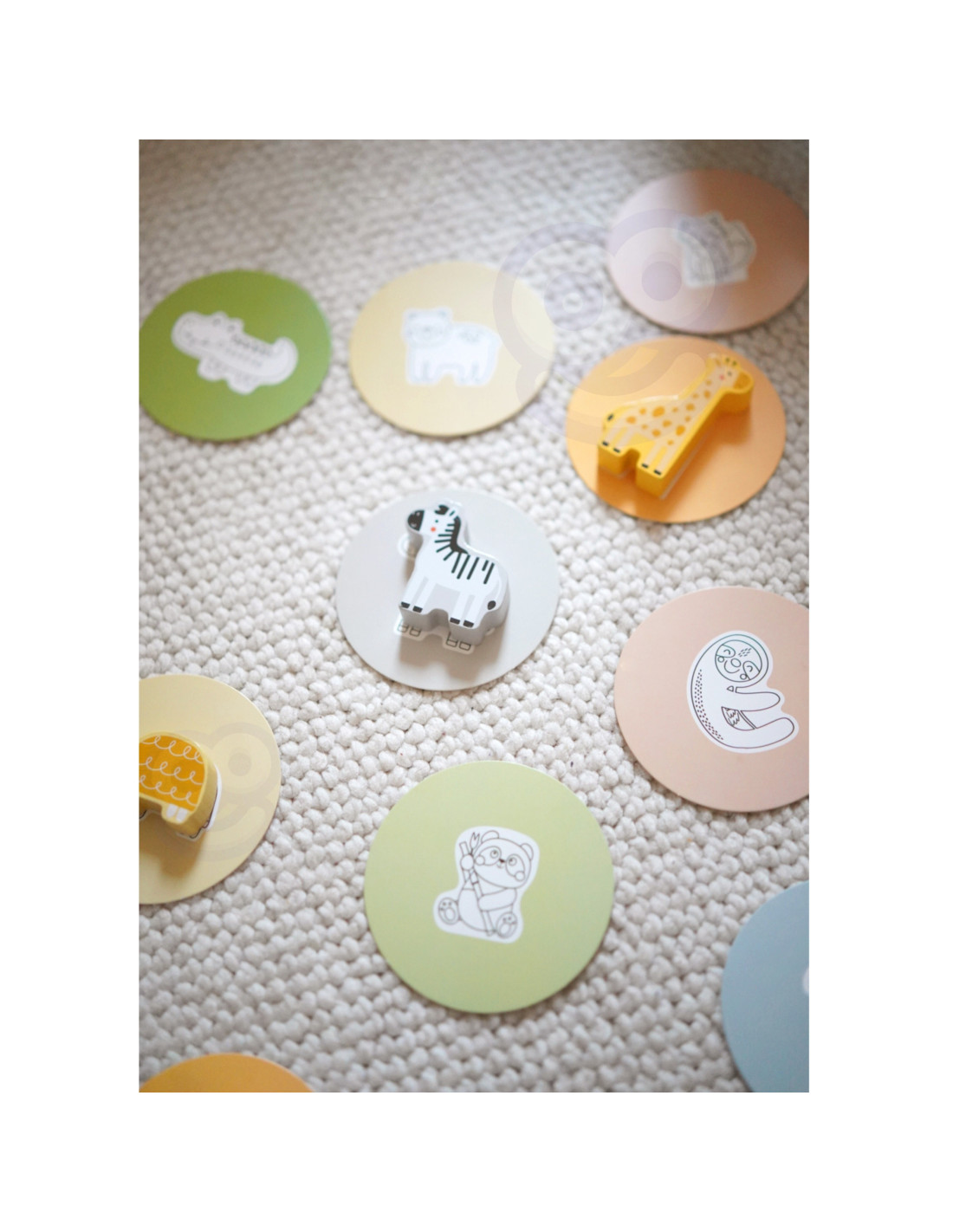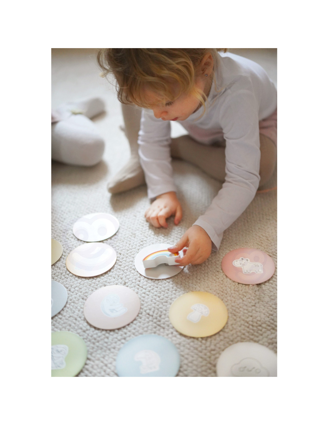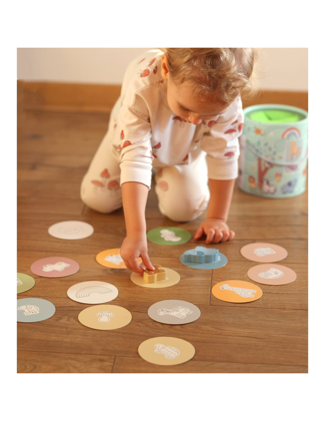 - - Koordynację wzrokowo-ruchową – dopasowywanie kart do ukrytych przedmiotów rozwija koordynację
