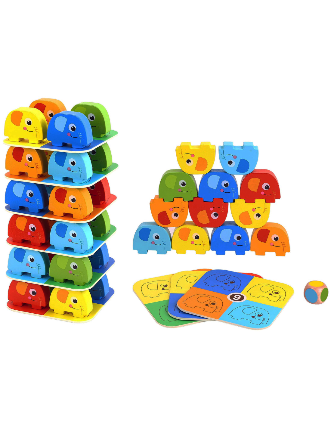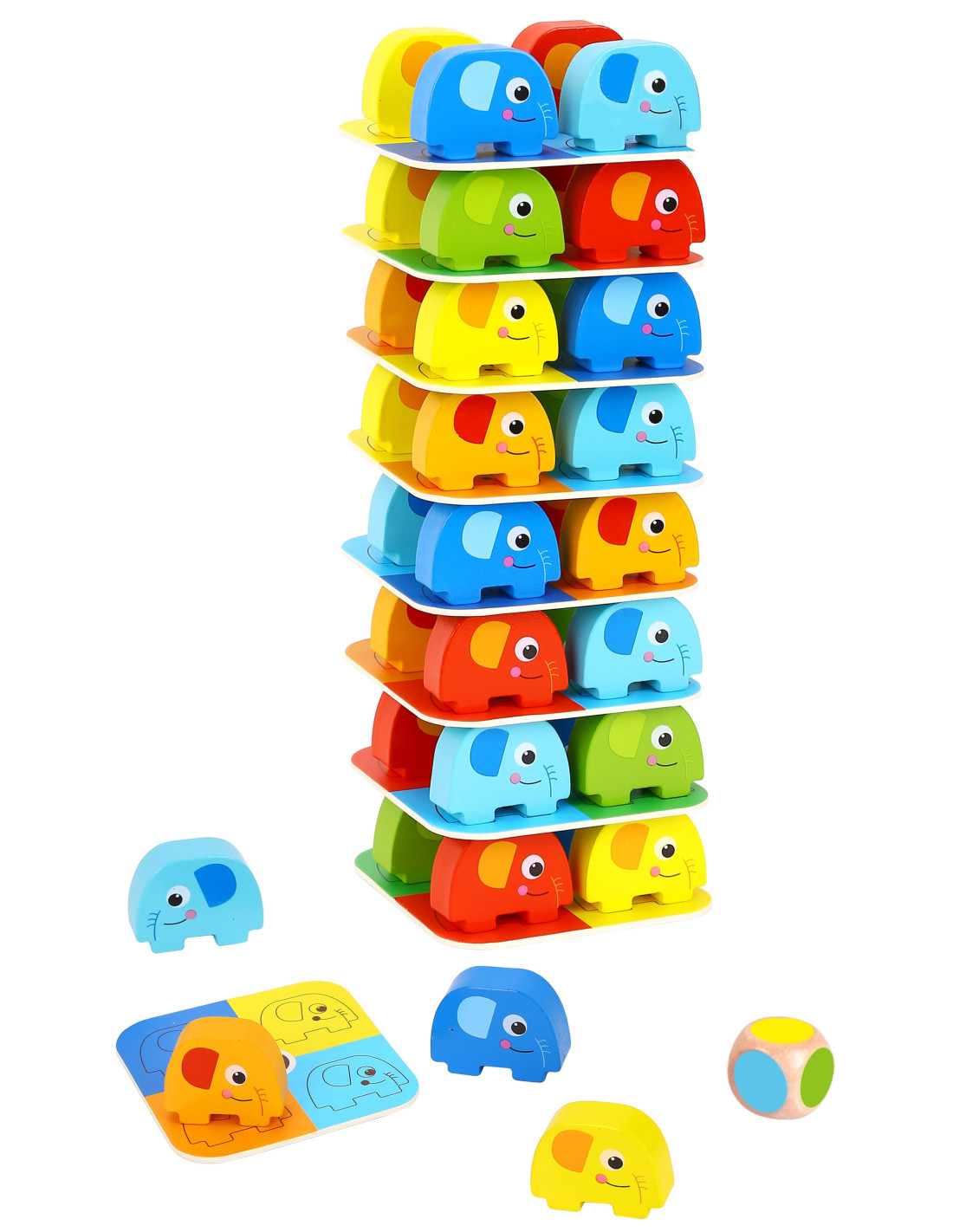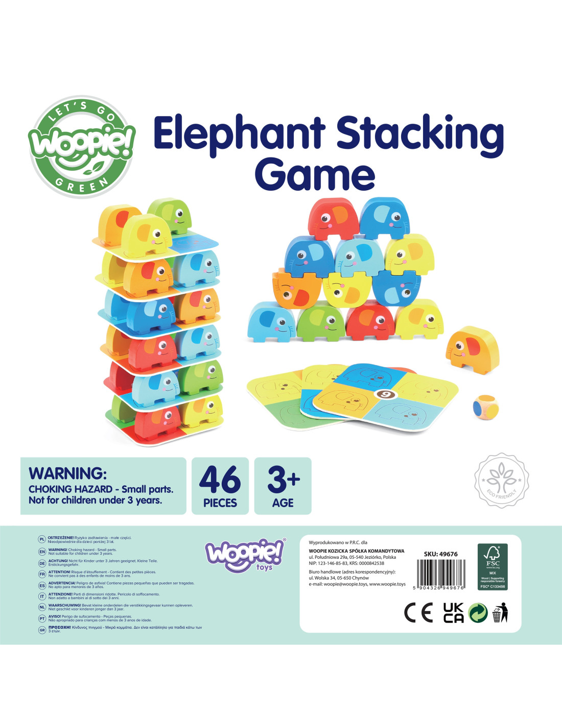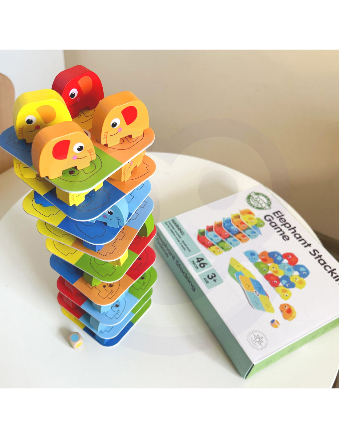 Słonik na Słoniku od marki WOOPIE GREEN to wyjątkowa gra zręcznościowa, która zapewni mnóstwo śmiechu i emocji! Zestaw składa się z 46 kolorowych, drewnianych elementów – w tym kostki i kart – dzięki czemu można bawić się na różne sposoby: układać słonie w wieżę lub rozegrać emocjonującą rundę w stylu Jenga. Wyraziste kolory i uroczy design przyciągają uwagę dzieci, a zaokrąglone kształty sprawiają, że zabawa jest w 100% bezpieczna już od 3 roku życia.
