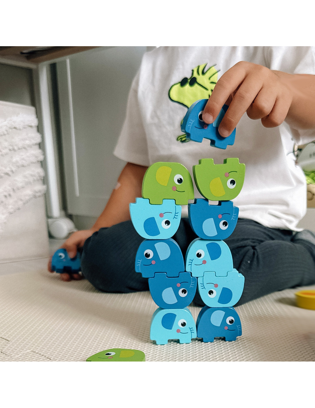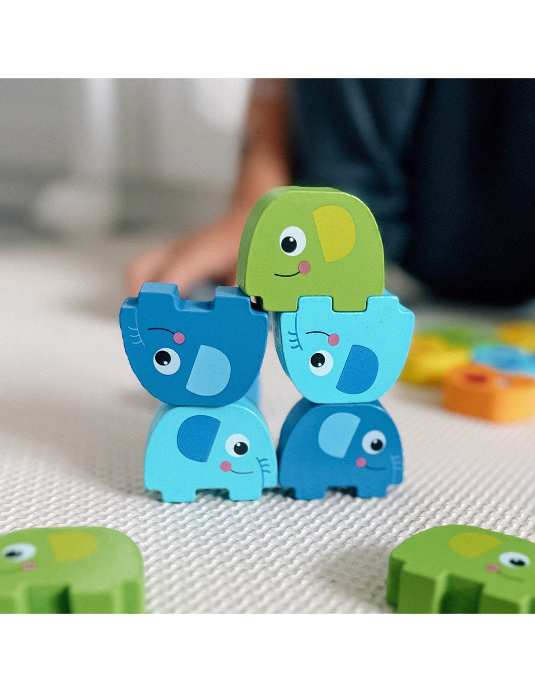 - - Zręczność i motorykę małą – układanie słoni to świetne ćwiczenie dla paluszków i dłoni dziecka