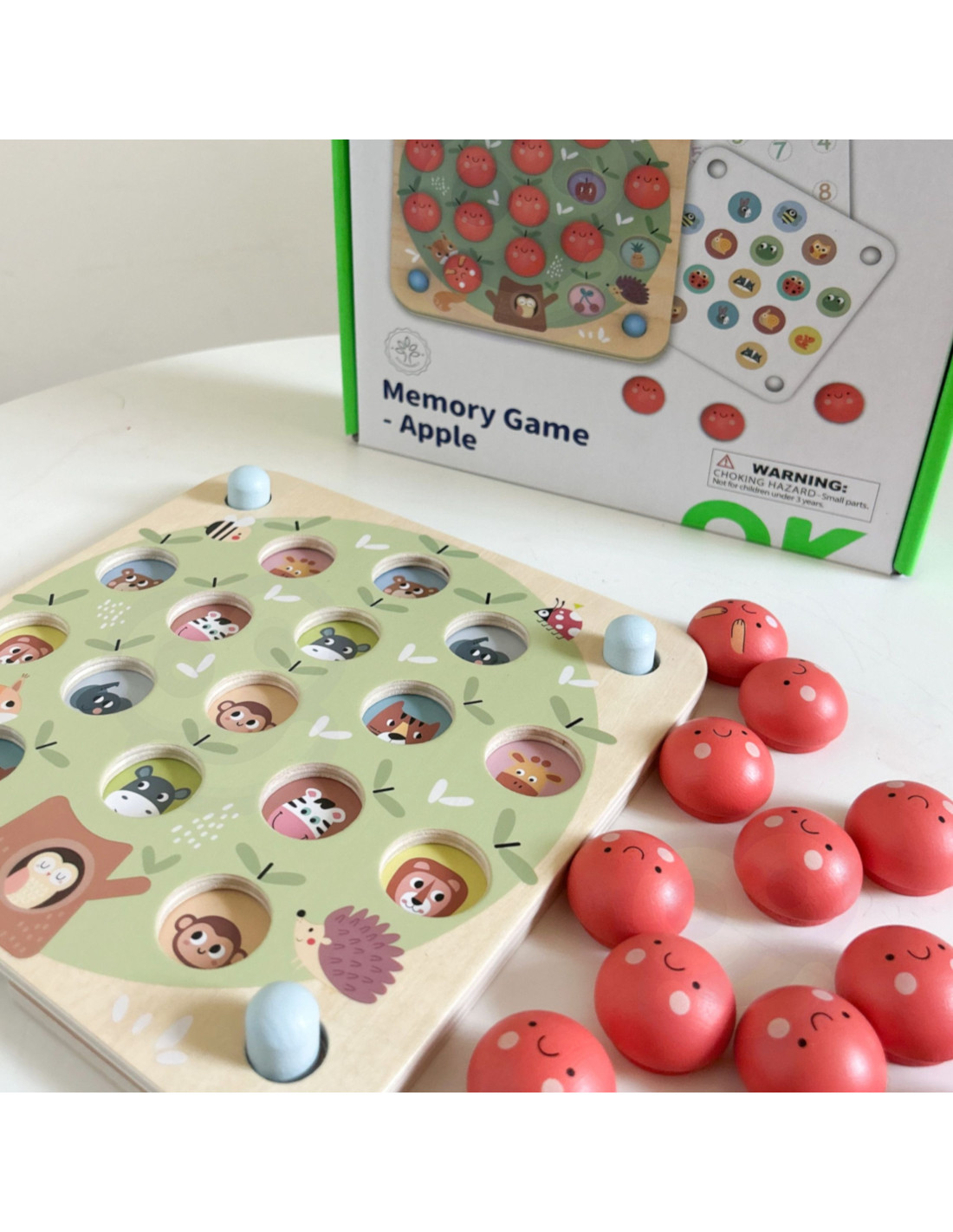 Gra pamięciowa to ciekawa wersja znanej gry Memory od renomowanego producenta zabawek marki Tooky Toy. To wspaniały pomysł na wspólne spędzenie czasu. Dziecko poprzez zabawę ćwiczy pamięć i koncentrację. Zestaw zawiera aż 10 kart z różnymi motywami o różnym stopniu trudności. Produkt wykonany z najwyższej jakości materiałów bezpiecznych dla dzieci i środowiska. Podnieś jabłuszko, zapamiętaj obrazek znajdujący się pod nim i znajdź drugi taki sam! Wygrywa osoba, która znajdzie najwięcej par. Dobrej zabawy!