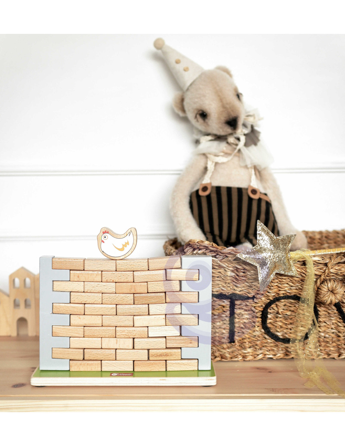 Świetna drewniana gra dla całej rodziny renomowanej marki Classic World, proste zasady, logiczne myślenie i zabawa dla osób w każdym wieku to podstawowe cechy tej gry. Zbuduj ścianę w specjalnie przygotowanych blokach. Na górze ustaw kurę, a następnie wyciągajcie po kolei cegły ze ściany. Kiedy ściana runie gra się kończy. Podczas zabawy maluch nauczy się koncentracji, strategii i rozwiązywania problemów, a także poprawi koordynację ręka-oko.