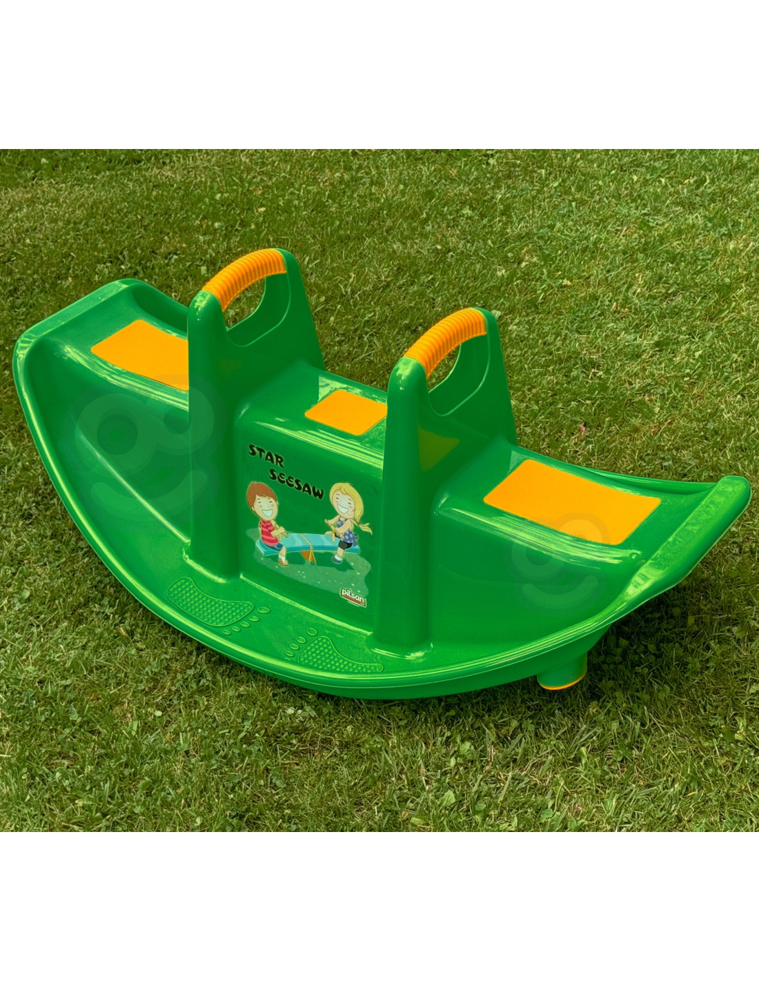 Dwumiejscowy zielony bujak marki Woopie zapewnia nie tylko mnóstwo radości, ale i wspiera rozwój fizyczny maluchów. Przeznaczony dla 1–2 dzieci, idealnie sprawdzi się zarówno w domu, jak i w ogrodzie. Jego ergonomiczny kształt, wygodne siedziska oraz uchwyty do trzymania gwarantują bezpieczną i komfortową zabawę przez długi czas. Produkt wykonano z trwałego, odpornego na warunki atmosferyczne tworzywa, które doskonale znosi intensywną eksploatację. To świetna alternatywa dla klasycznych huśtawek i bujaków – dziecko może się bawić samodzielnie lub w parze, ucząc się przy tym współpracy i równowagi. Lekka konstrukcja umożliwia łatwe przenoszenie produktu w dowolne miejsce. Intensywny zielony kolor w połączeniu z żółtymi akcentami oraz wesołym nadrukiem na froncie przyciągają uwagę dzieci i zachęcają do aktywnej zabawy! Bujanie się na tej huśtawce to nie tylko świetna rozrywka, ale i forma naturalnej gimnastyki, która pozytywnie wpływa na rozwój motoryki dużej, równowagi oraz koordynacji ruchowej.