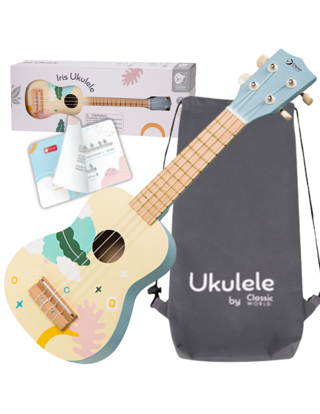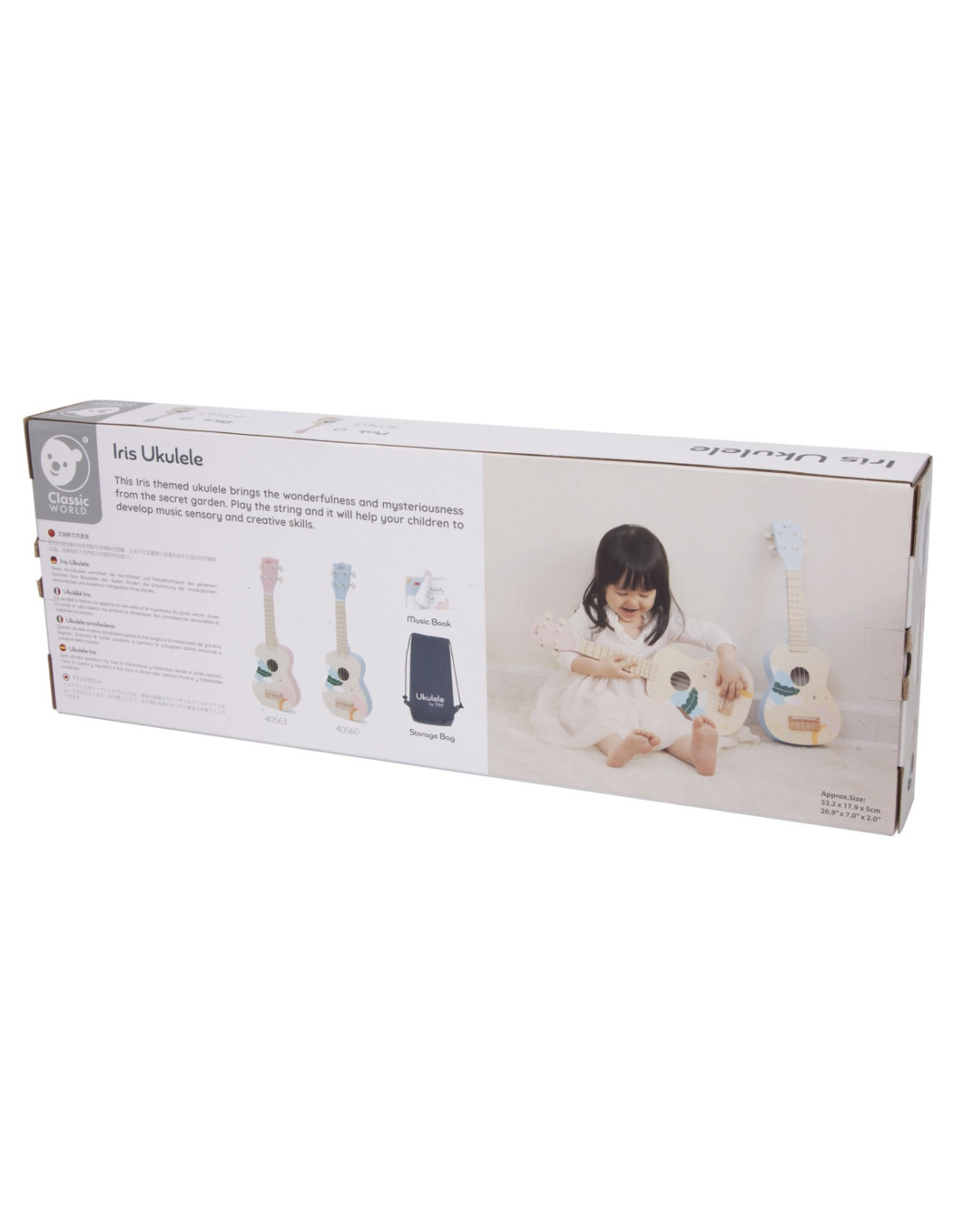 - - Niebieskie drewniane ukulele od renomowanej marki Classic World dla młodych muzyków.