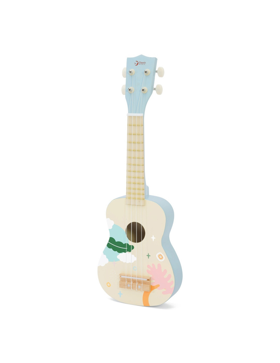 Niebieskie Drewniane Ukulele renomowanej firmy Classic World, instrument muzyczny dla dzieci. Doskonały produkt do przetestowania pierwszych, dziecięcych fascynacji światem muzyki. Małe paluszki ćwiczą się w bieganiu po gryfie, co znacznie poprawia sprawność manualną, uczy koncentracji i wytrwałości. Świetnie imituje prawdziwy instrument. Prawdziwy hit w kategorii zabawa poprzez naukę. Doskonały produkt do przetestowania pierwszych, dziecięcych fascynacji światem muzyki.