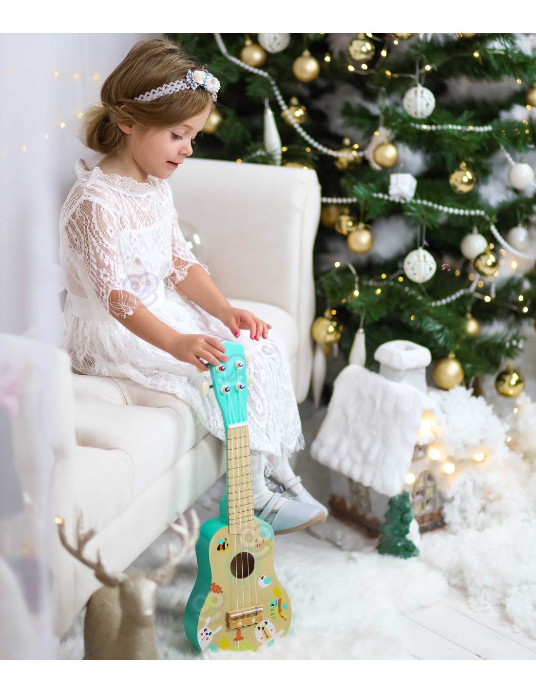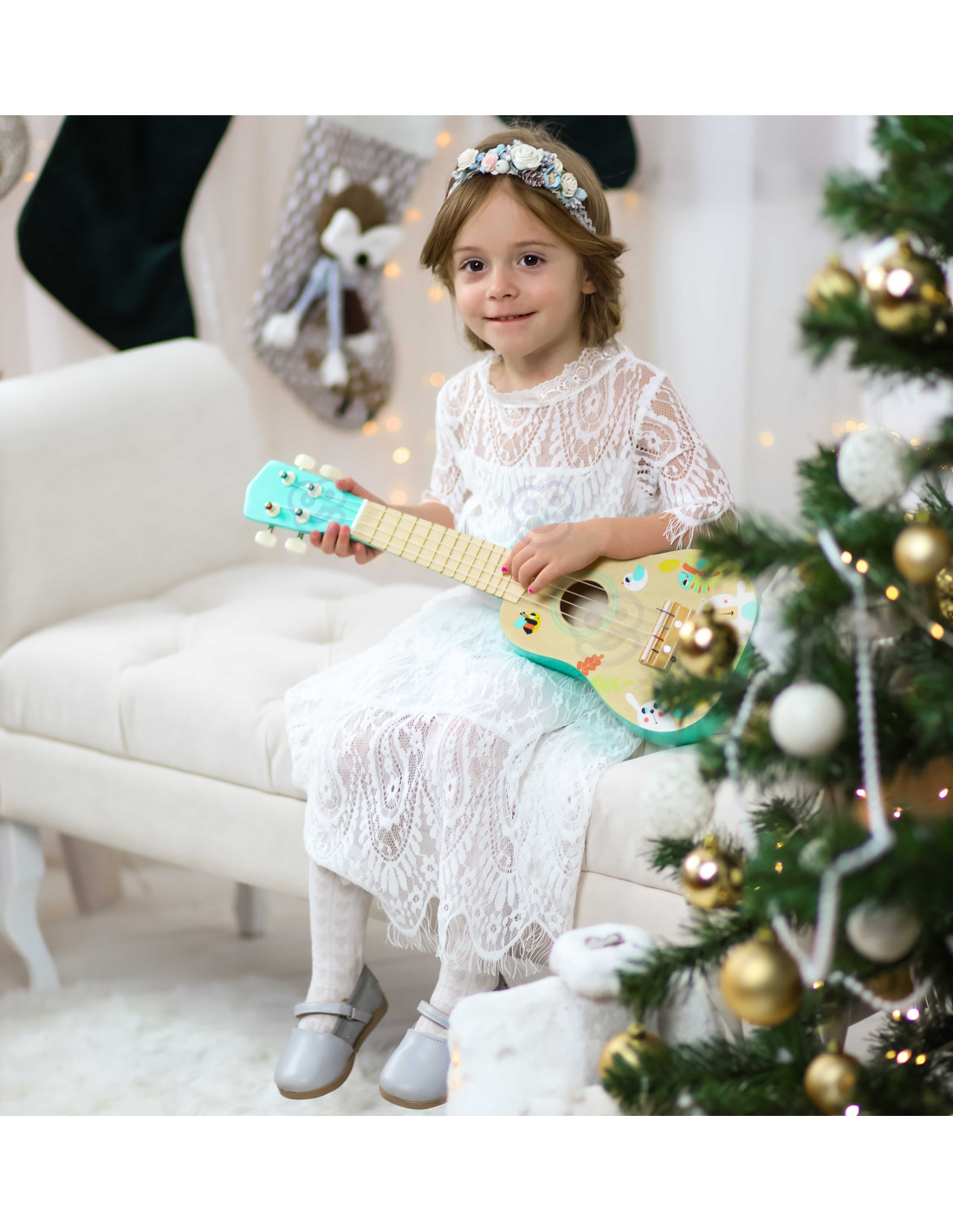 - - drewniane ukulele od renomowanej marki Tooky Toy dla młodych muzyków,