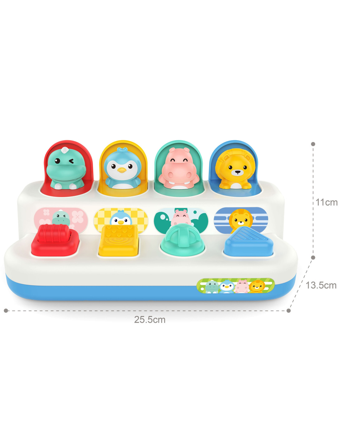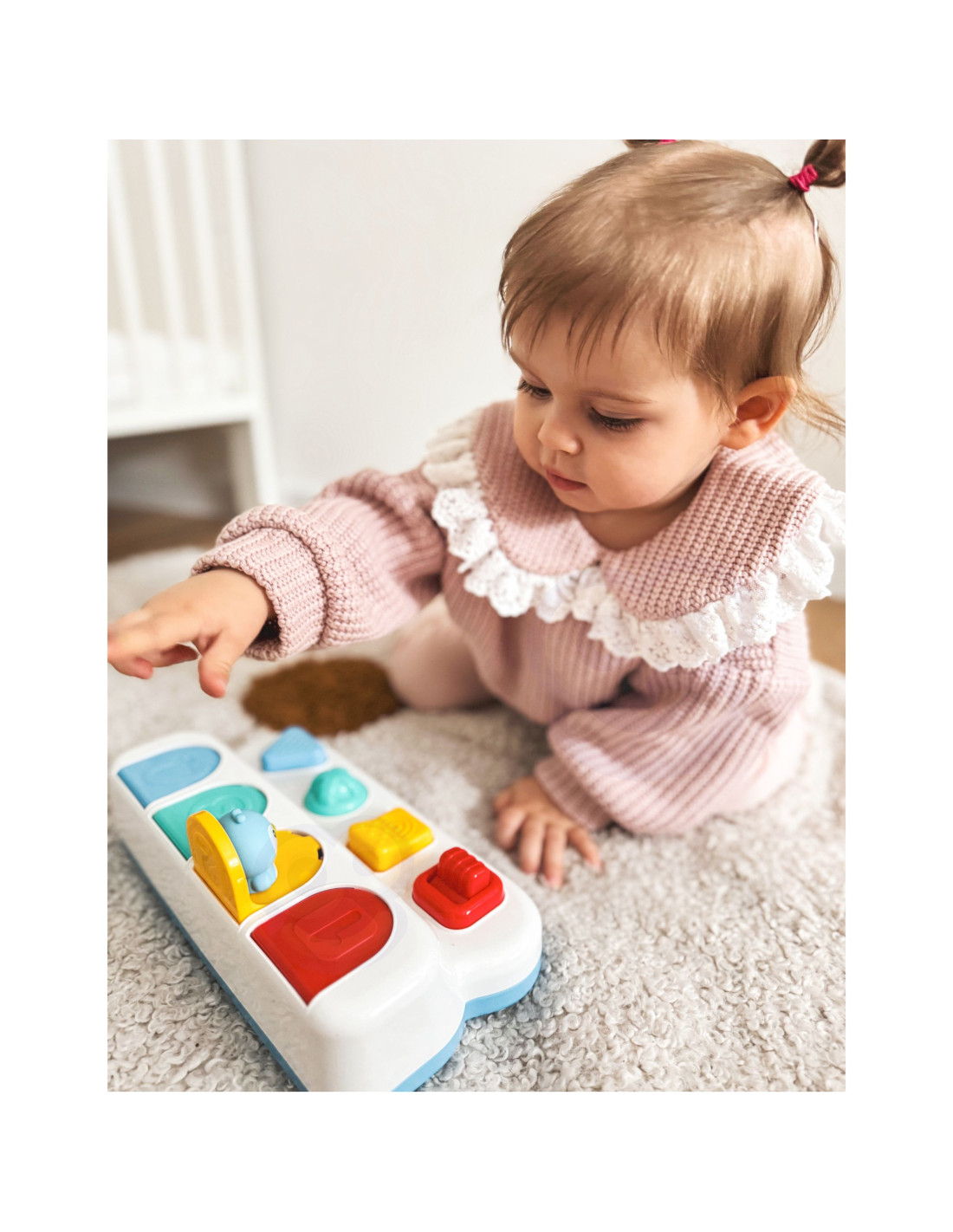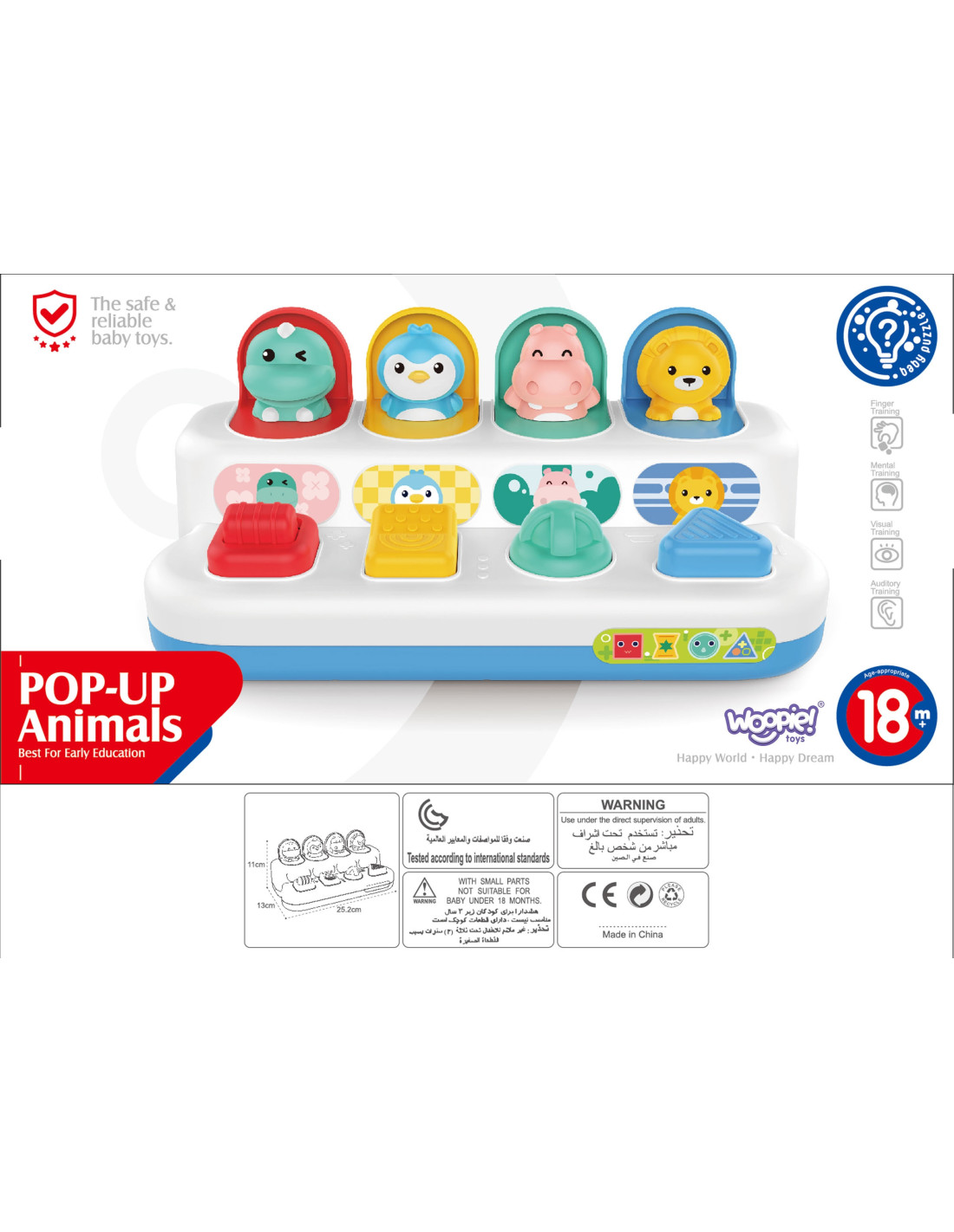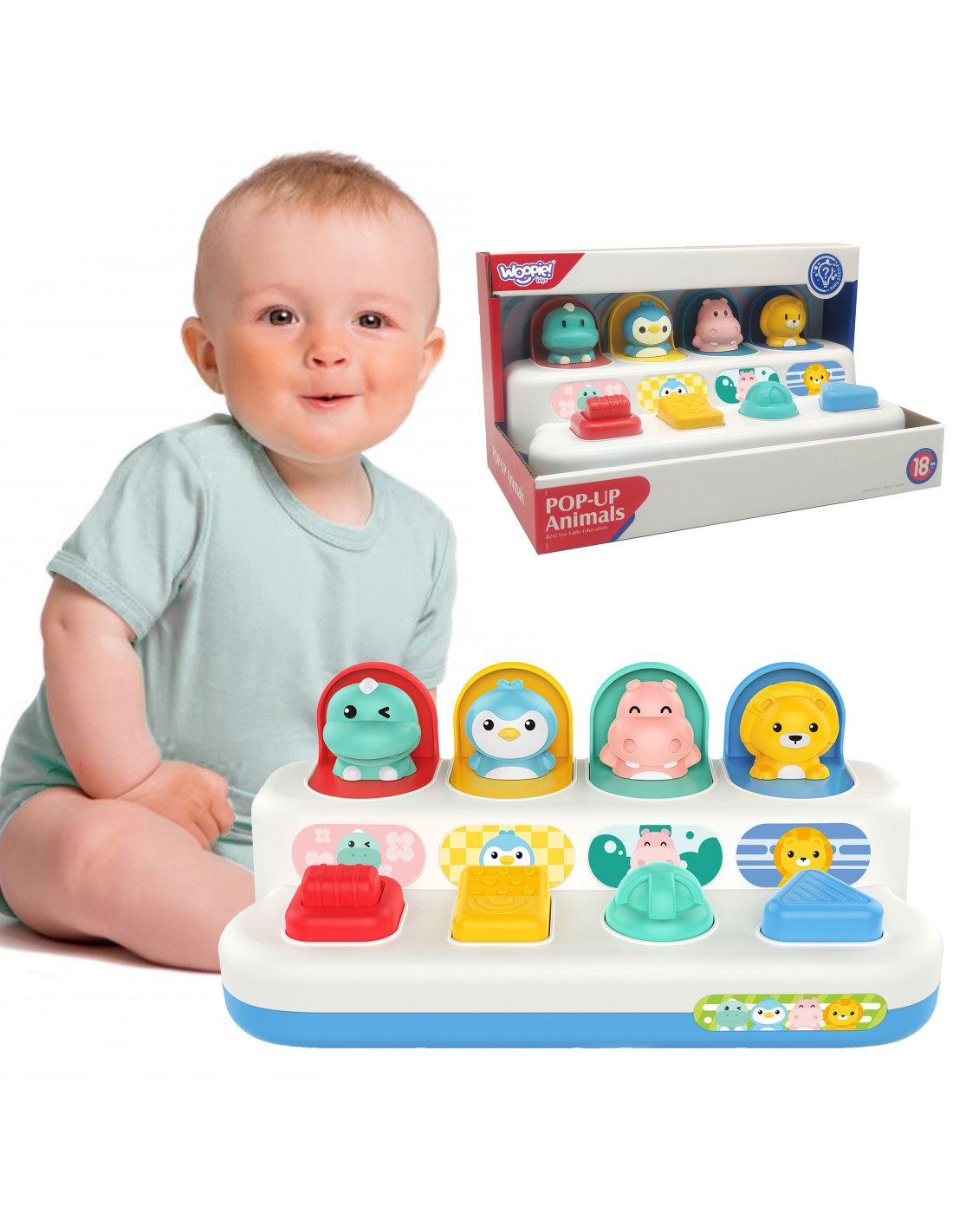 Zabawka edukacyjna Wyskakujące Zwierzątka Pop-Up od marki WOOPIE Baby, to interaktywna, edukacyjna zabawka, która łączy zabawę z nauką i stymulacją zmysłów dla najmłodszych. Po naciśnięciu przycisków, poruszeniu pokręteł lub przesunięciu elementów kolorowe zwierzątka wyskakują, co pobudza ciekawość i angażuje dziecko do zabawy. Mechanizm pop up wciąga malucha, a różne sposoby interakcji rozwijają sprawność małych rączek i koordynację ruchową. Kolorowe elementy zachęcają do poznawania przyczyn i skutków oraz wspierają rozwój sensoryczny. Świetna zabawka zarówno do codziennej zabawy, jak i jako kreatywny prezent dla dziecka od ok. 18 miesięcy.