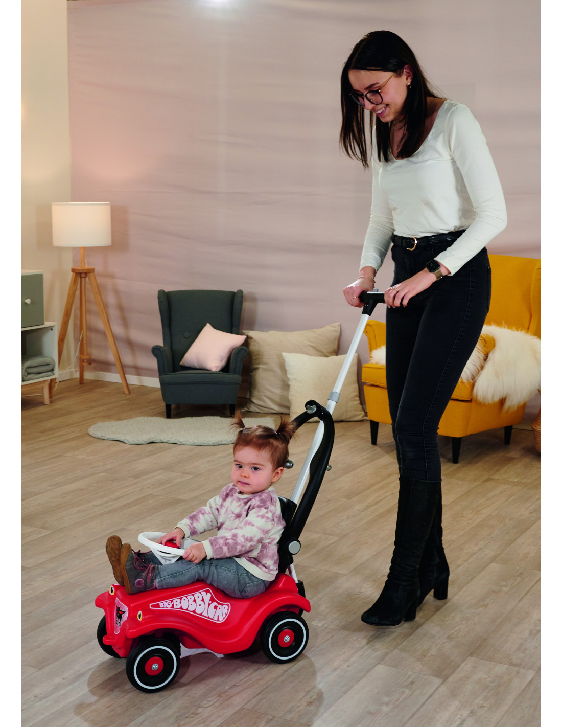 Rewelacyjny drążek z oparciem i zabezpieczeniem do jeździków Bobby Car od renomowanego producenta zabawek marki BIG. Będzie stanowił idealne i praktyczne uzupełnienie jeździka Twojego Dziecka. Montaż i demontaż jest prosty i szybki.
